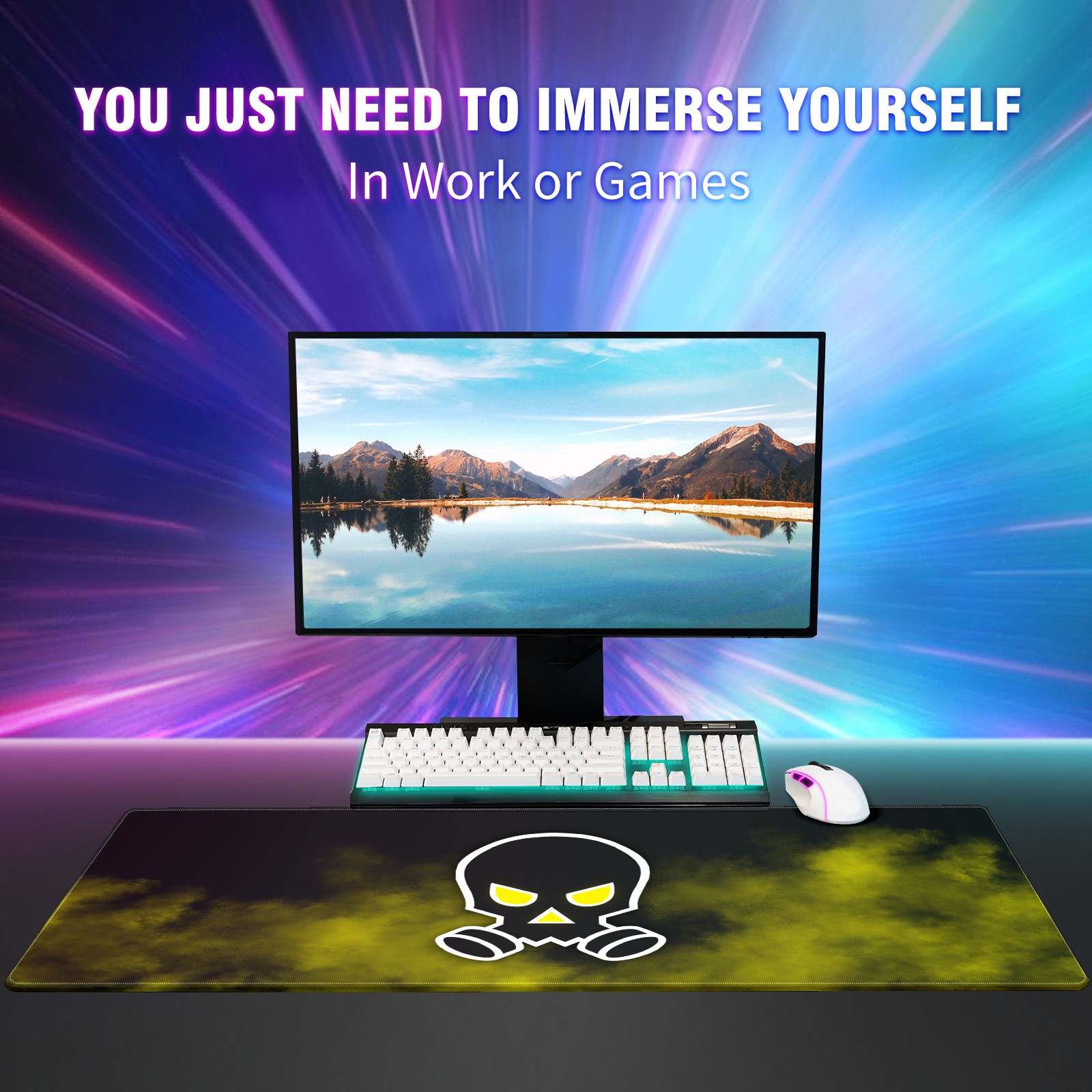 Large Mouse Pad for Desktop, Cute Desk Mat Pad Protector for Work & Gaming, Aesthetic Pretty Anti-Slip Laptop Blotter Cover for Office School Home Supplies, Skull Logo , 35.4inx15.7in