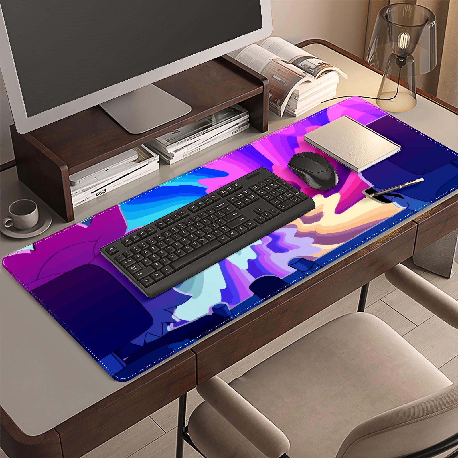 <p>This 35.4” × 15.7” extended desk mat offers ample space for your keyboard, mouse and essentials, working as a smooth work/writing pad while protecting your desktop from scratches.</p><p>With stylish artistic patterns, it adds personality to your home office, study or gaming setup. The high-density woven surface ensures precise, smooth mouse tracking for work and gaming.</p><p>Featuring an anti-slip natural rubber base for firm grip and stability, the mat is soft, elastic and odorless. Reinforced stitched edges prevent fraying and curling for long-lasting durability.</p>