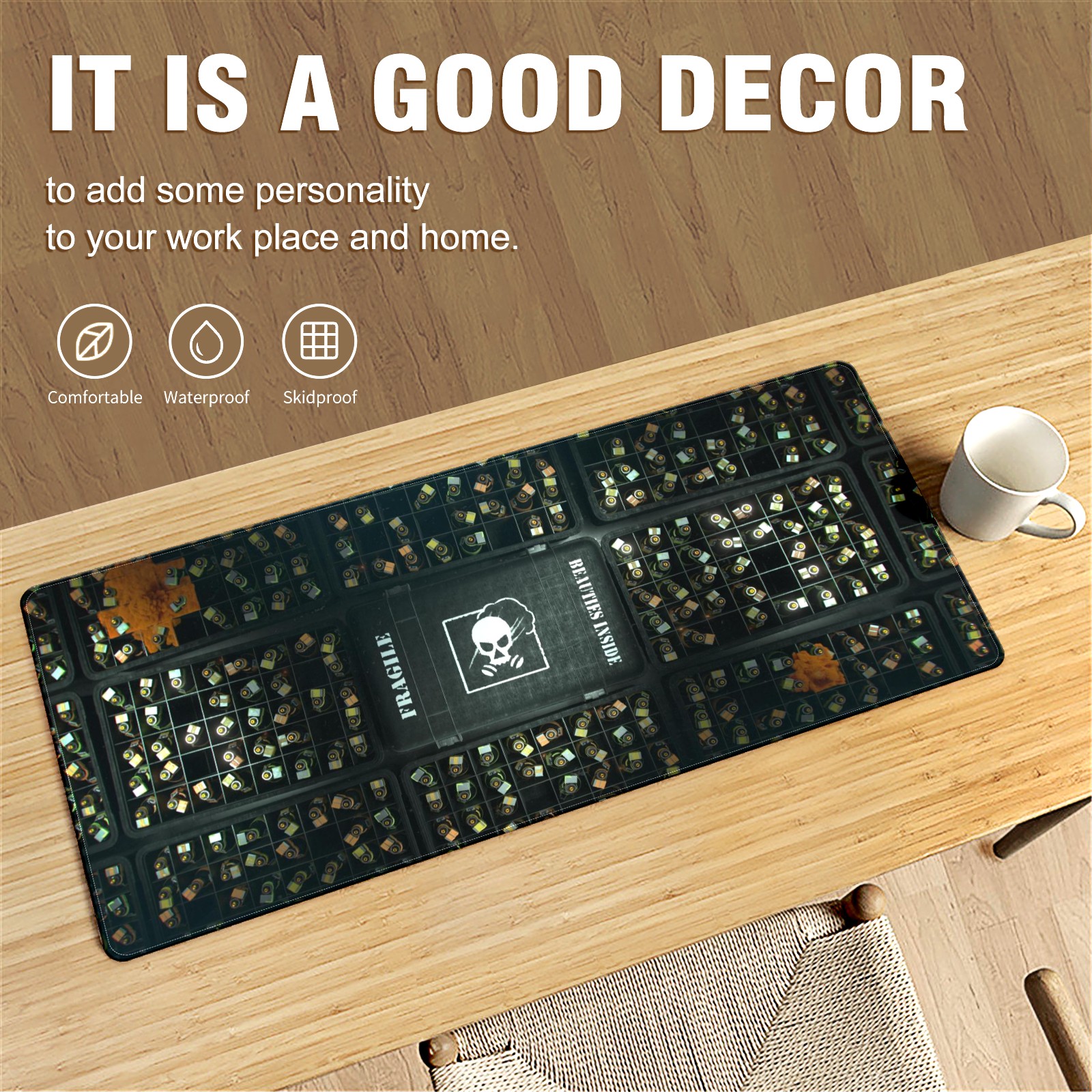 • <p>This 35.4” × 15.7” extended desk mat offers ample space for your keyboard, mouse and essentials, working as a smooth work/writing pad while protecting your desktop from scratches.</p><p>With stylish artistic patterns, it adds personality to your home office, study or gaming setup. The high-density woven surface ensures precise, smooth mouse tracking for work and gaming.</p><p>Featuring an anti-slip natural rubber base for firm grip and stability, the mat is soft, elastic and odorless. Reinforced stitched edges prevent fraying and curling for long-lasting durability.</p>