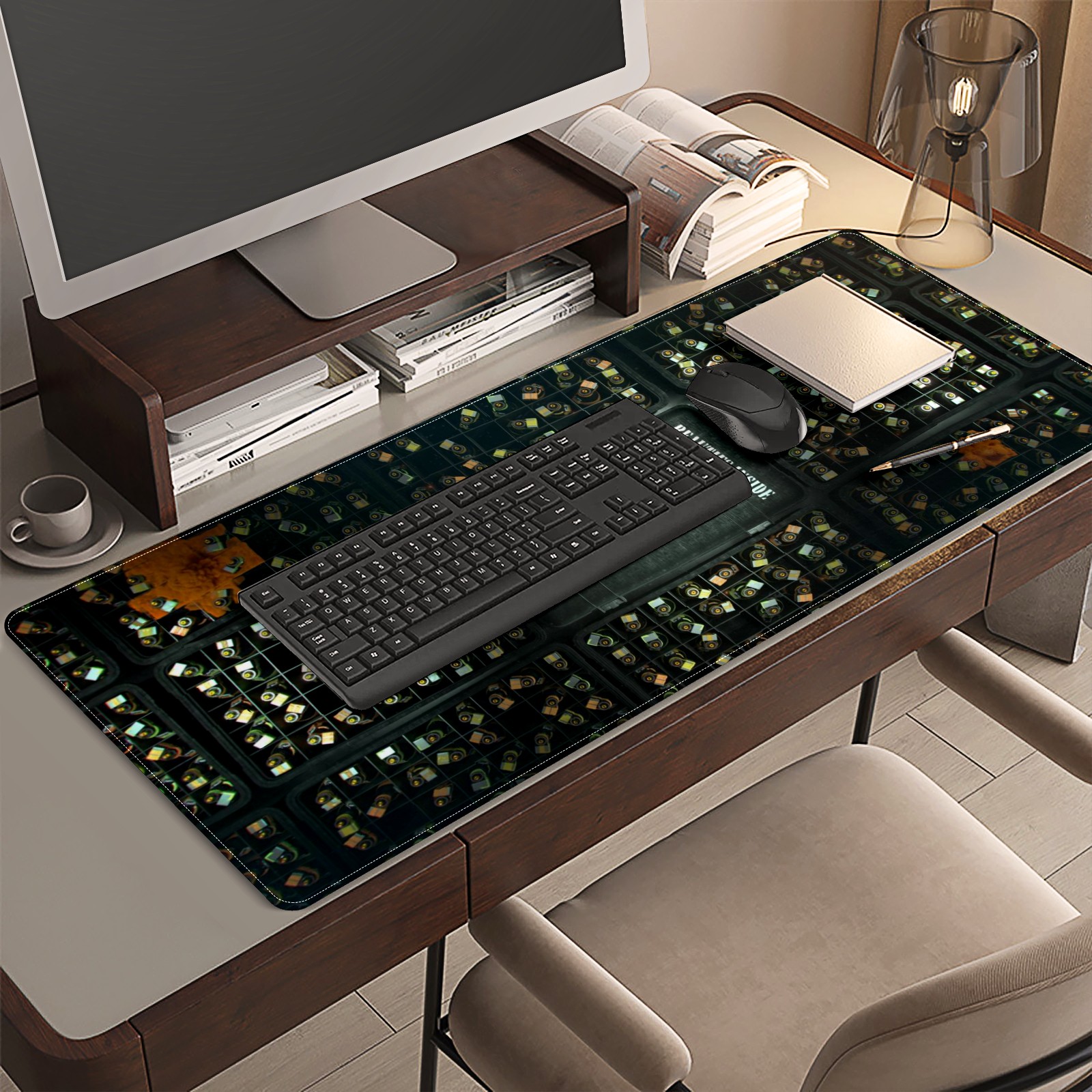 <p>This 35.4” × 15.7” extended desk mat offers ample space for your keyboard, mouse and essentials, working as a smooth work/writing pad while protecting your desktop from scratches.</p><p>With stylish artistic patterns, it adds personality to your home office, study or gaming setup. The high-density woven surface ensures precise, smooth mouse tracking for work and gaming.</p><p>Featuring an anti-slip natural rubber base for firm grip and stability, the mat is soft, elastic and odorless. Reinforced stitched edges prevent fraying and curling for long-lasting durability.</p>