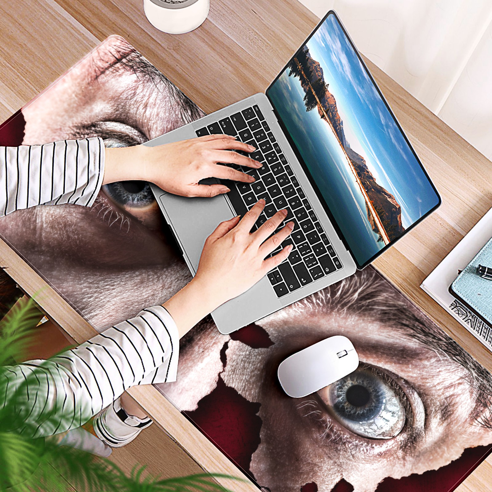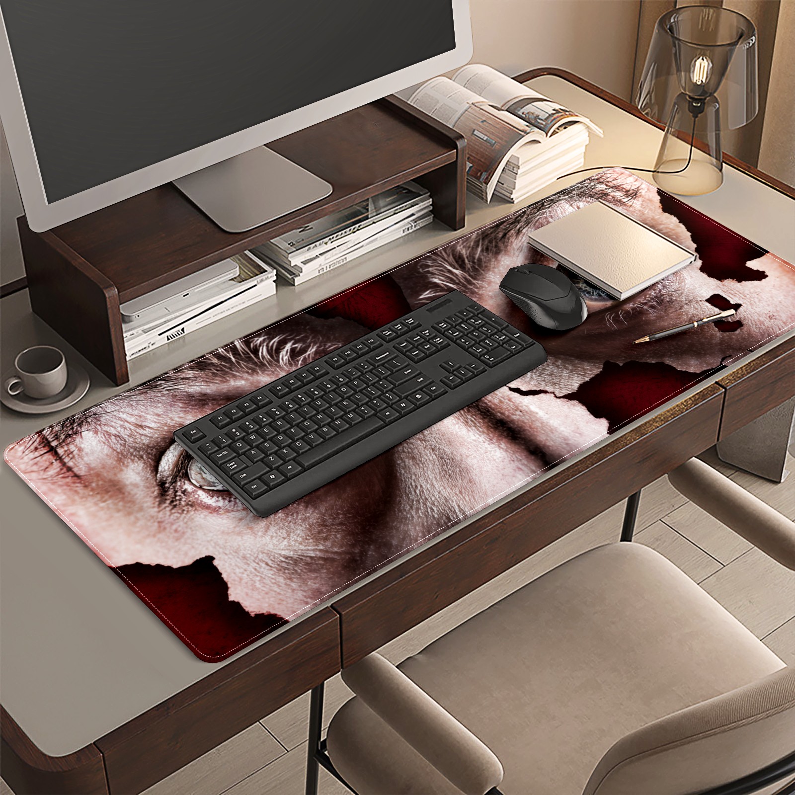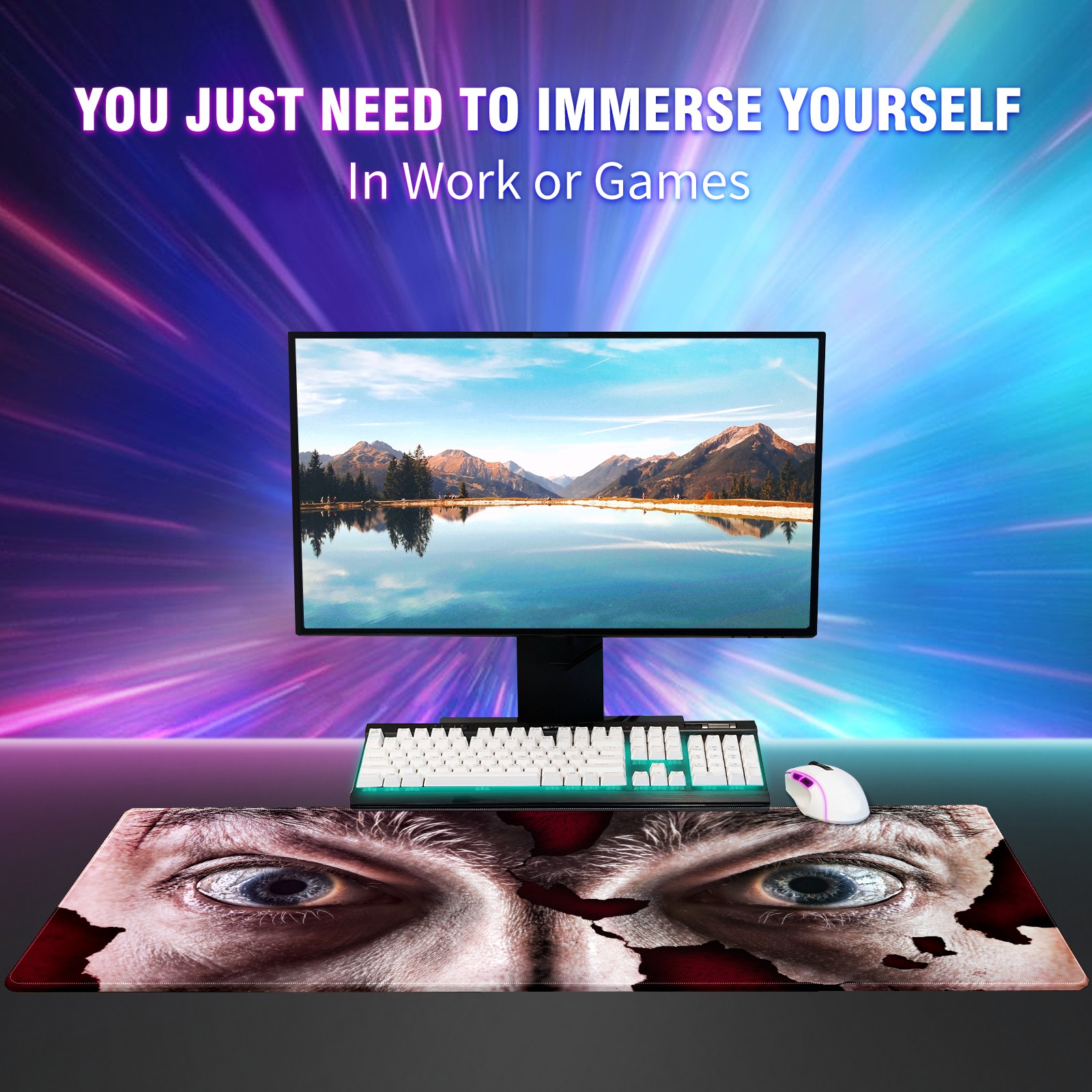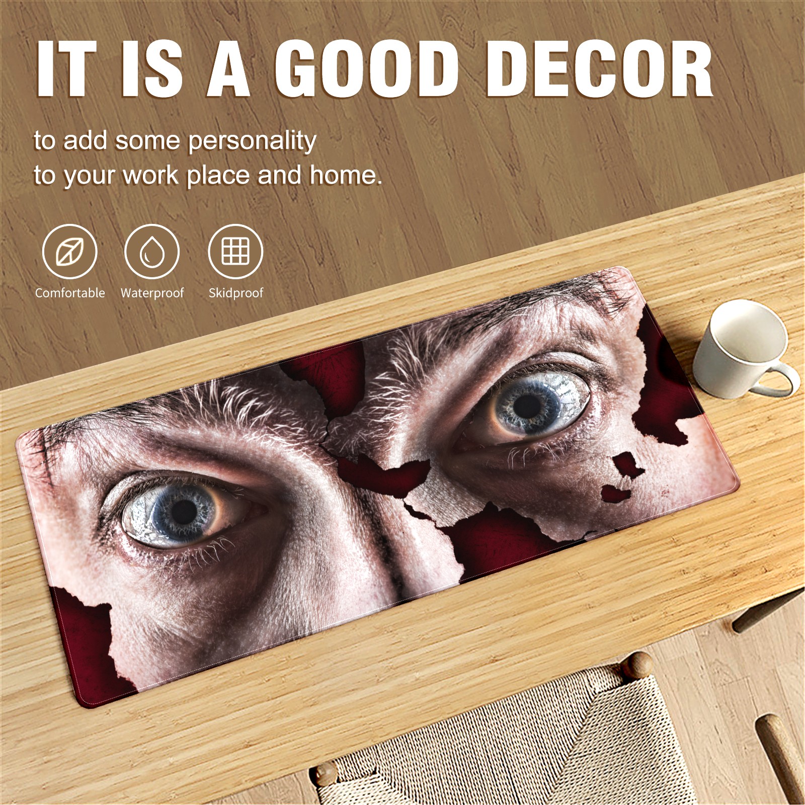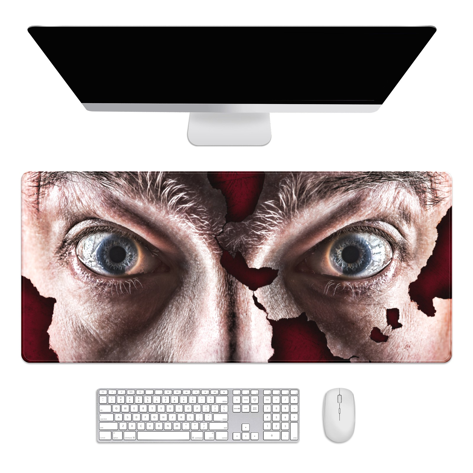 Large Mouse Pad for Desktop, Cute Desk Mat Pad Protector for Work & Gaming, Aesthetic Pretty Anti-Slip Laptop Blotter Cover for Office School Home Supplies, Man Eyes , 35.4inx15.7in