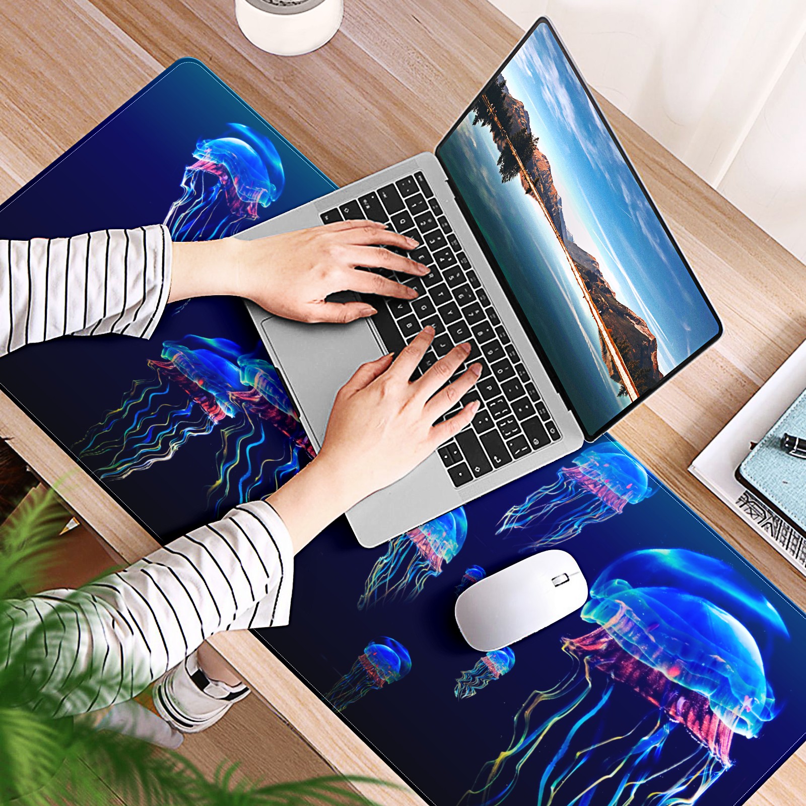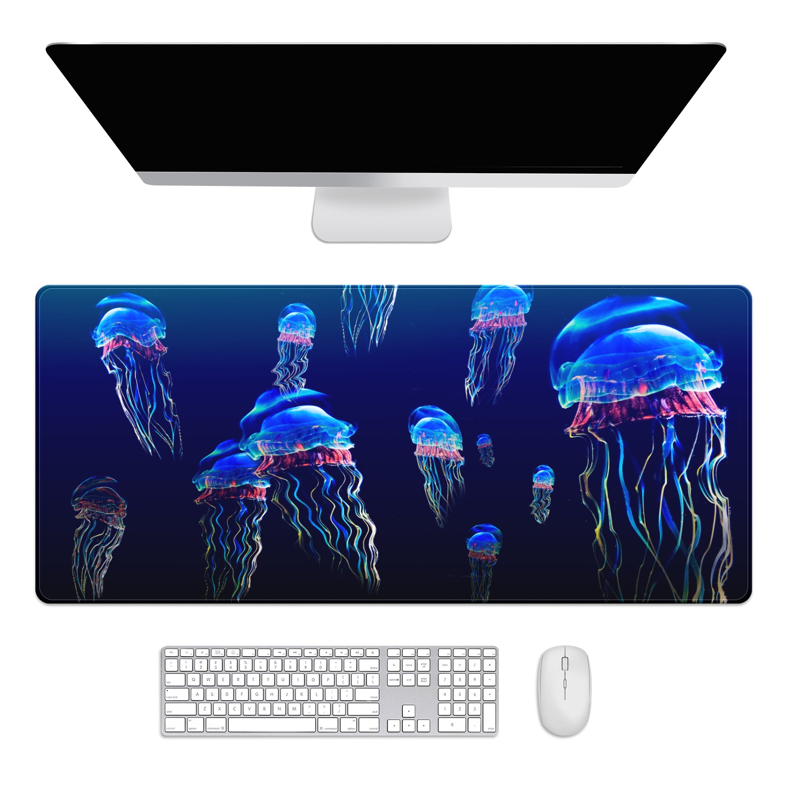 Large Mouse Pad for Desktop, Cute Desk Mat Pad Protector for Work & Gaming, Aesthetic Pretty Anti-Slip Laptop Blotter Cover for Office School Home Supplies, Marine Life , 35.4inx15.7in