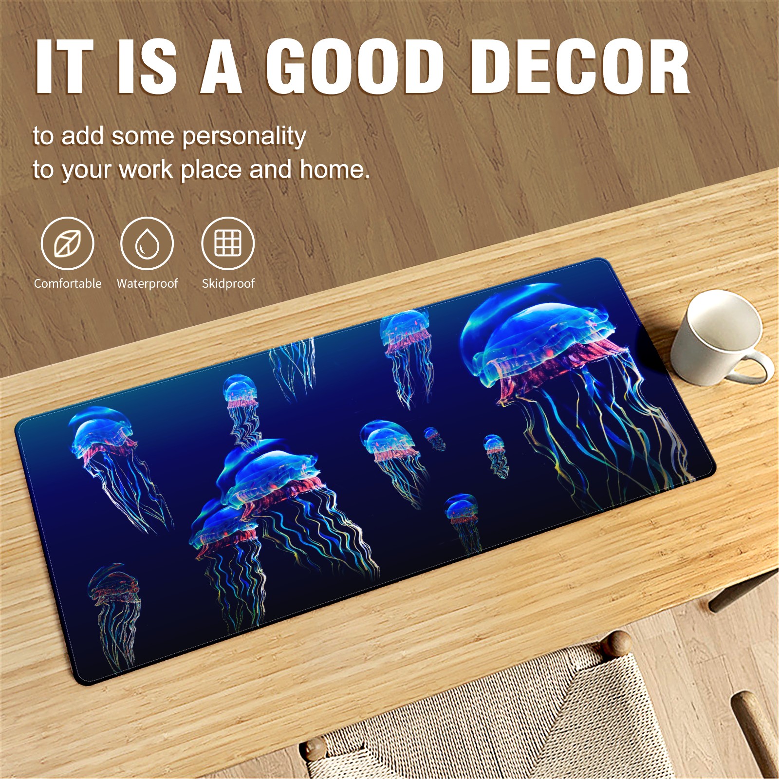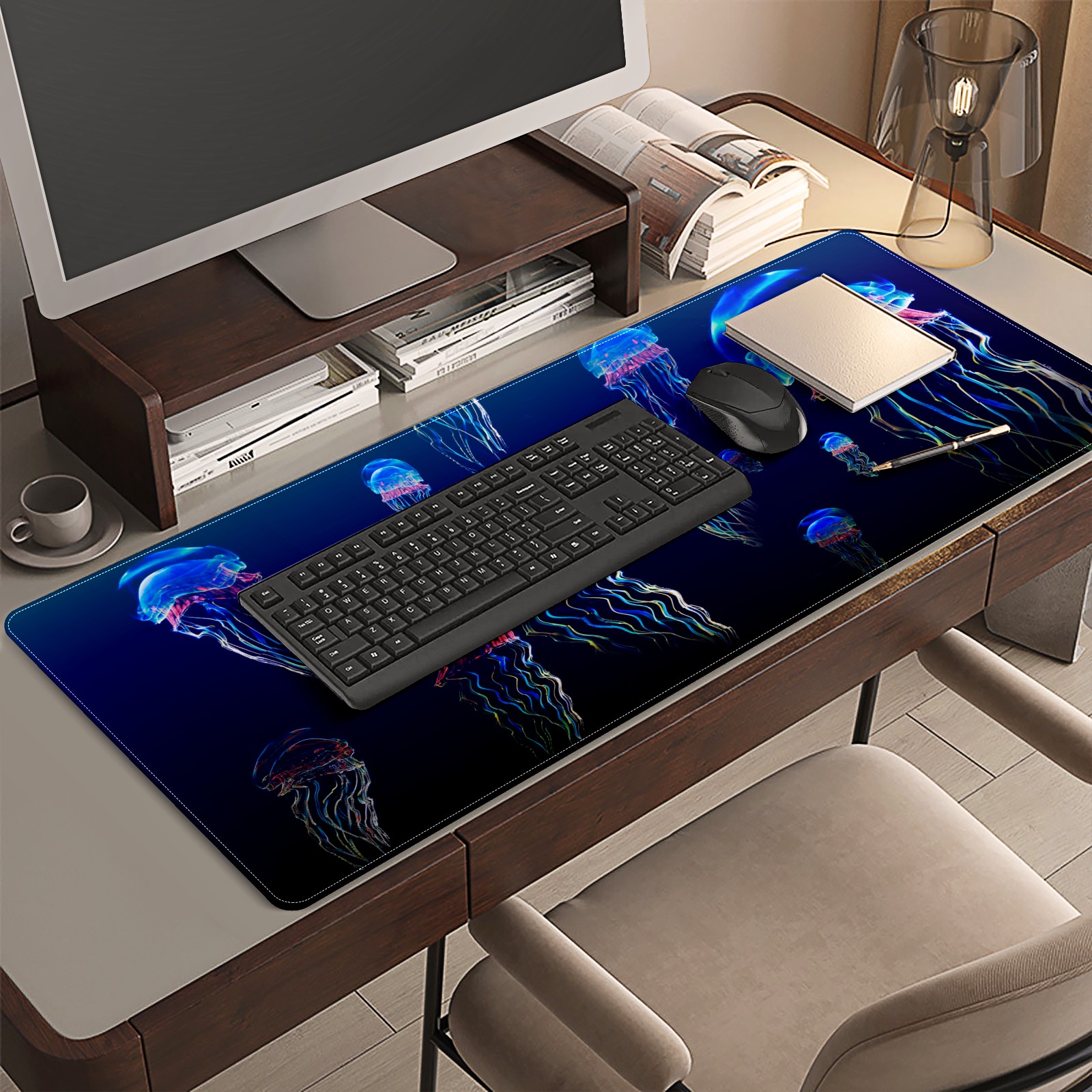 <p>This 35.4” × 15.7” extended desk mat offers ample space for your keyboard, mouse and essentials, working as a smooth work/writing pad while protecting your desktop from scratches.</p><p>With stylish artistic patterns, it adds personality to your home office, study or gaming setup. The high-density woven surface ensures precise, smooth mouse tracking for work and gaming.</p><p>Featuring an anti-slip natural rubber base for firm grip and stability, the mat is soft, elastic and odorless. Reinforced stitched edges prevent fraying and curling for long-lasting durability.</p>