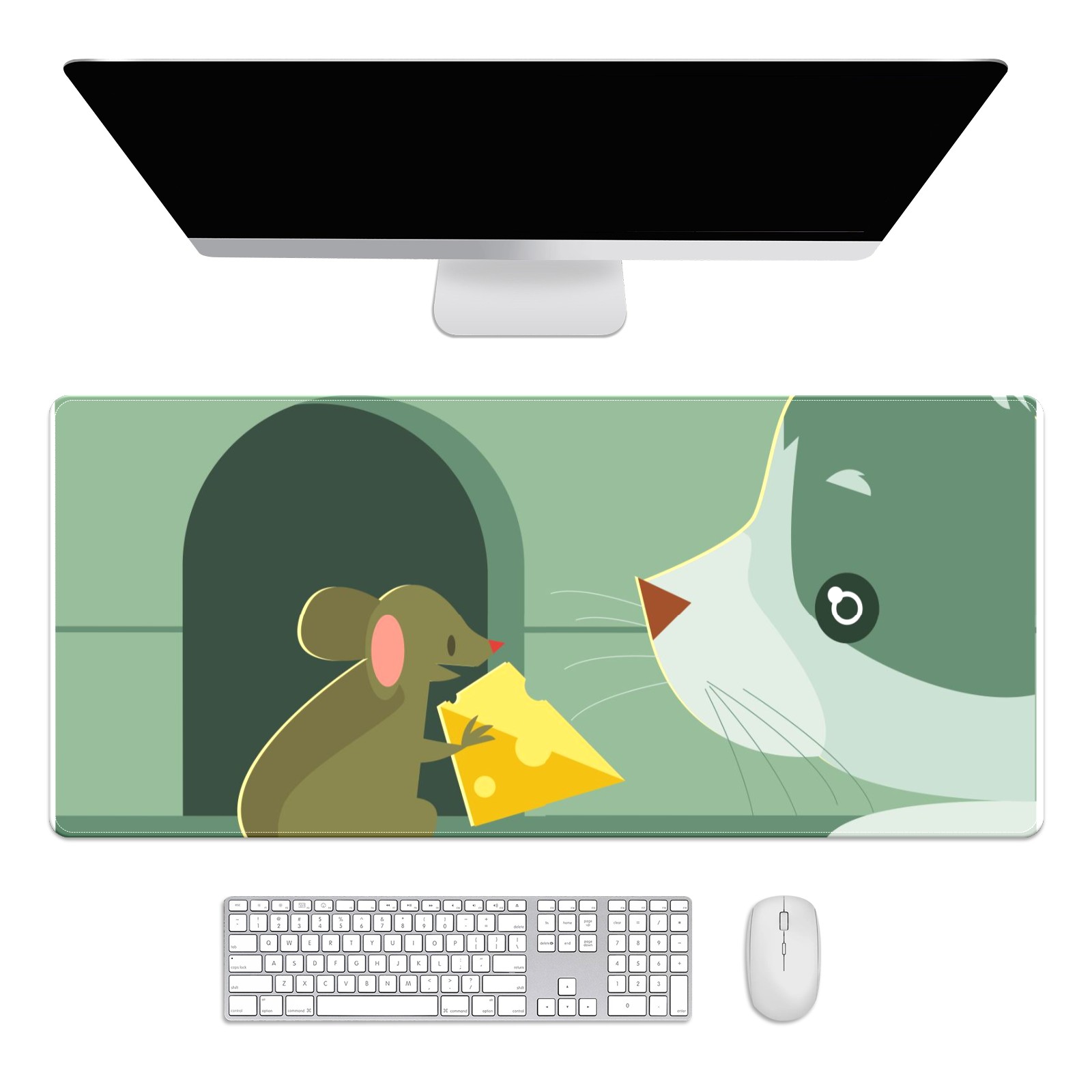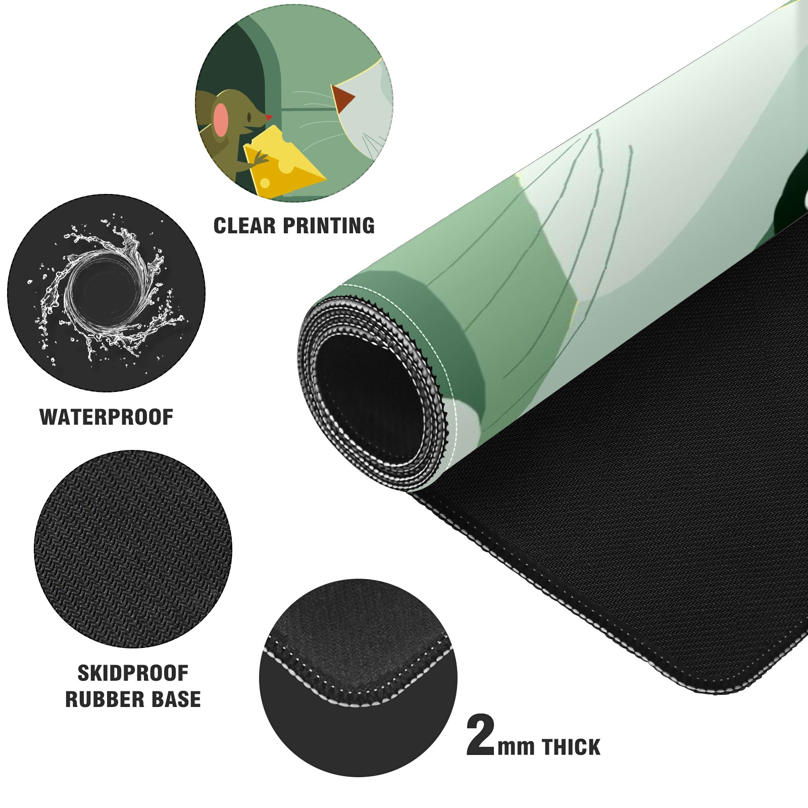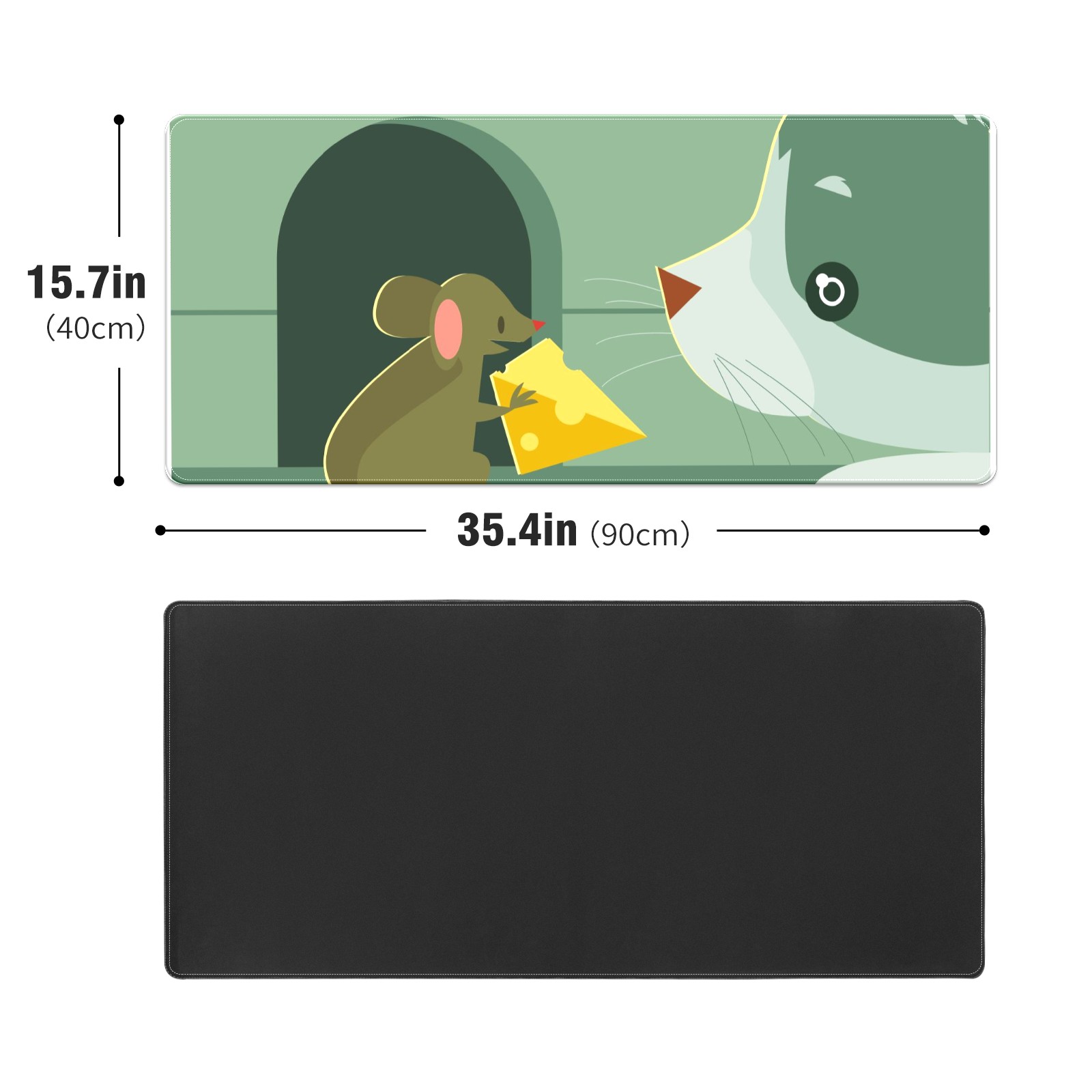 Large Mouse Pad for Desktop, Cute Desk Mat Pad Protector for Work & Gaming, Aesthetic Pretty Anti-Slip Laptop Blotter Cover for Office School Home Supplies, Mouse Cat , 35.4inx15.7in