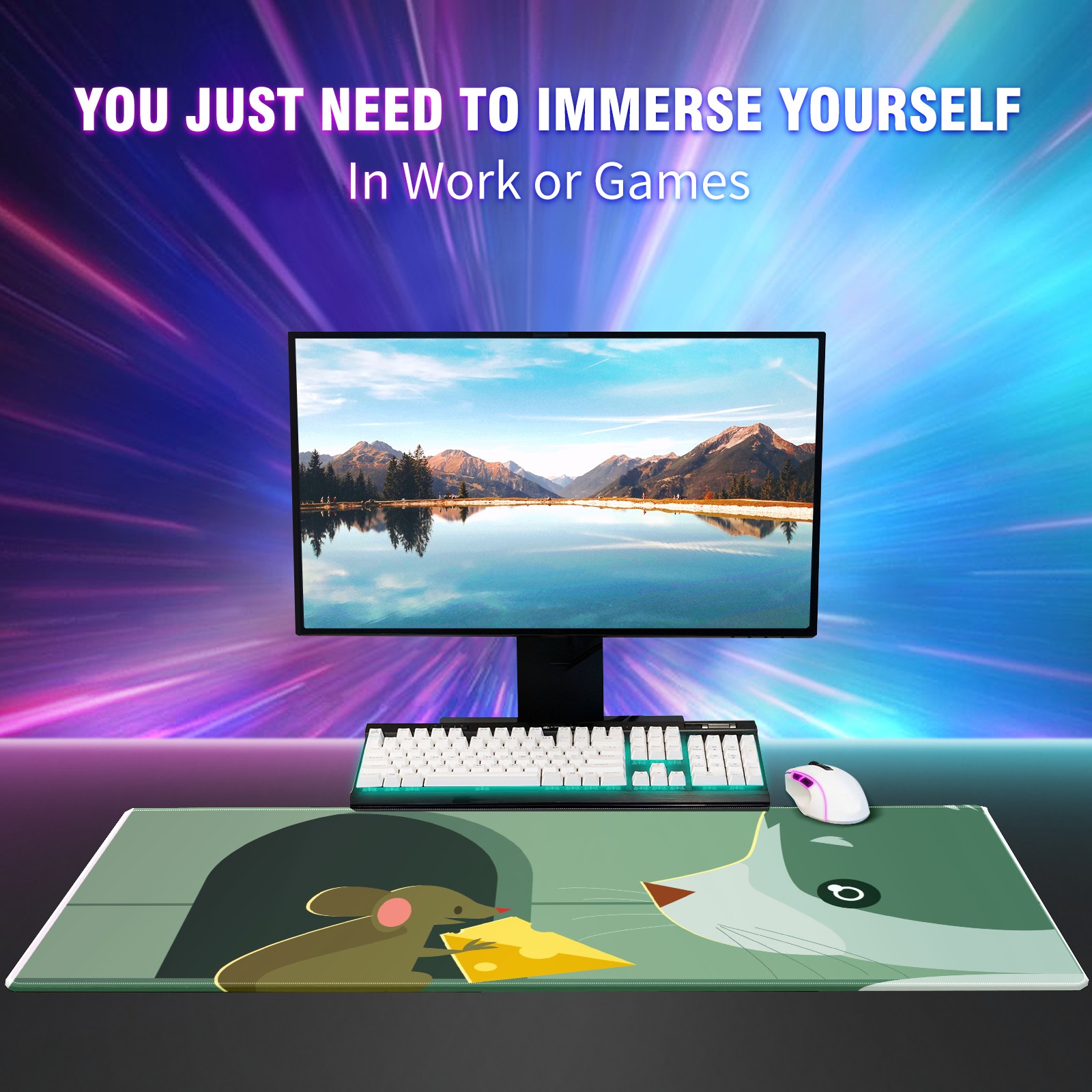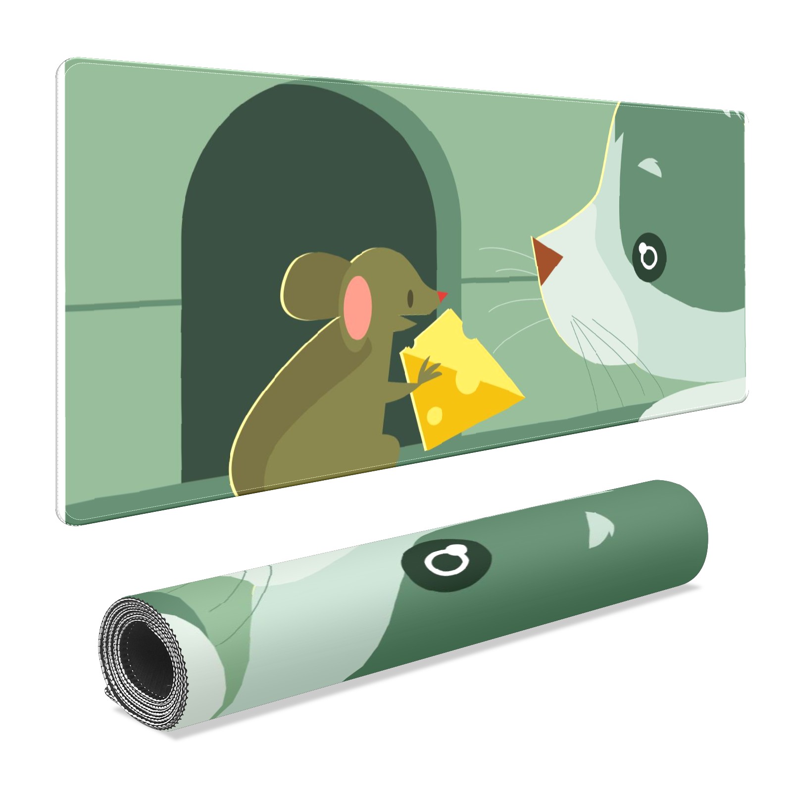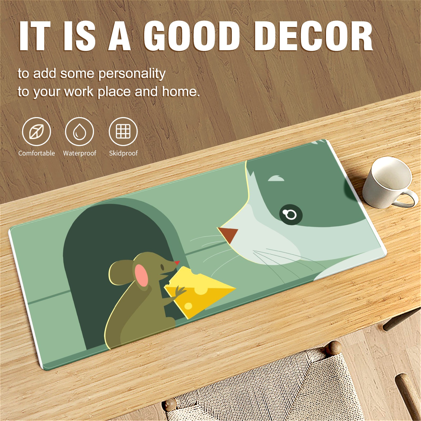 Large Mouse Pad for Desktop, Cute Desk Mat Pad Protector for Work & Gaming, Aesthetic Pretty Anti-Slip Laptop Blotter Cover for Office School Home Supplies, Mouse Cat , 35.4inx15.7in