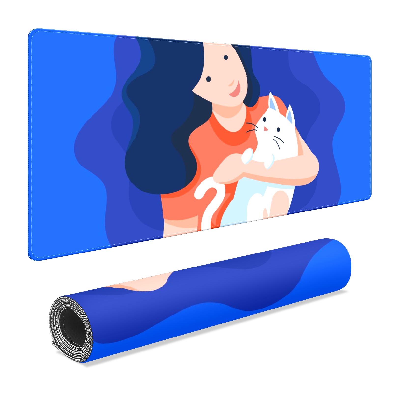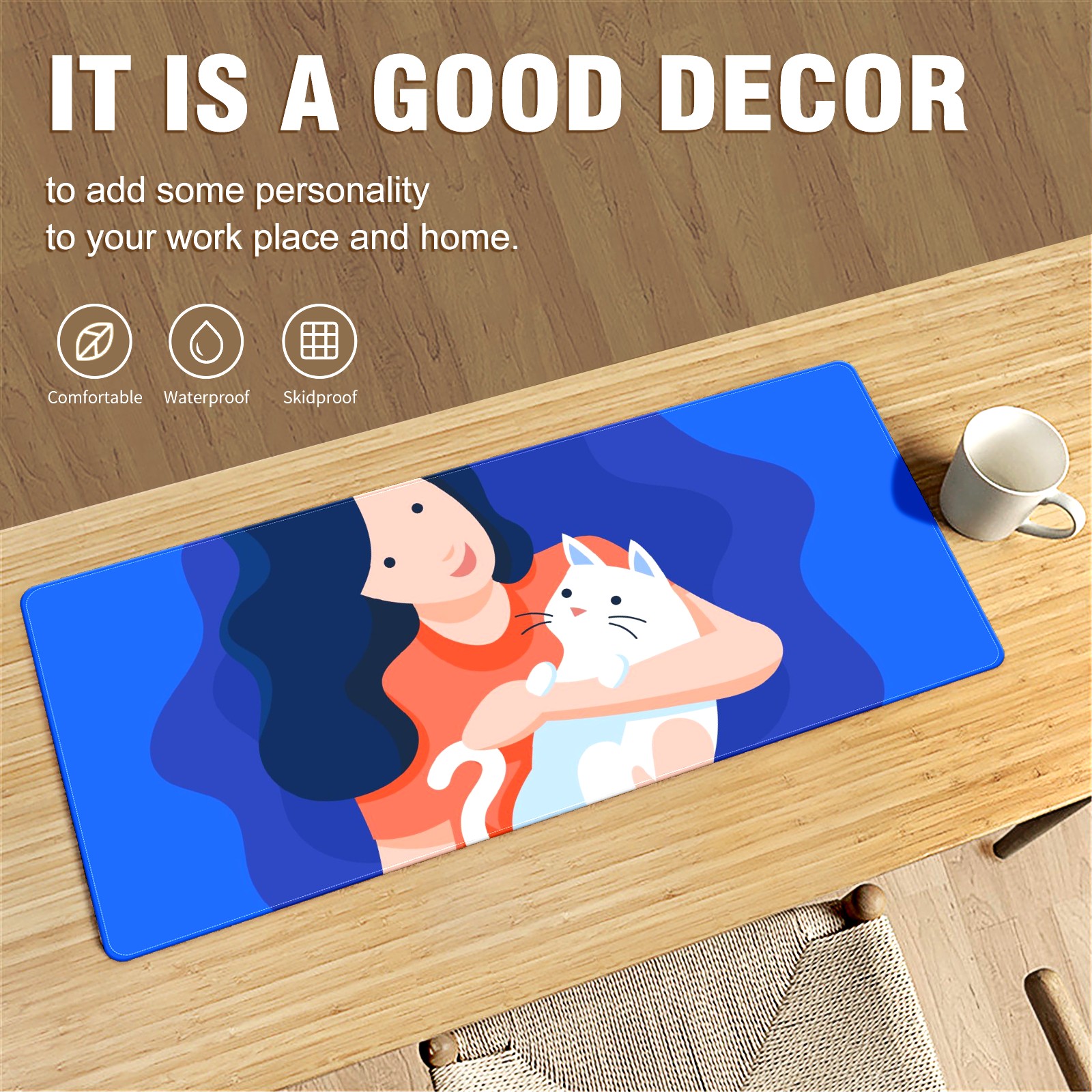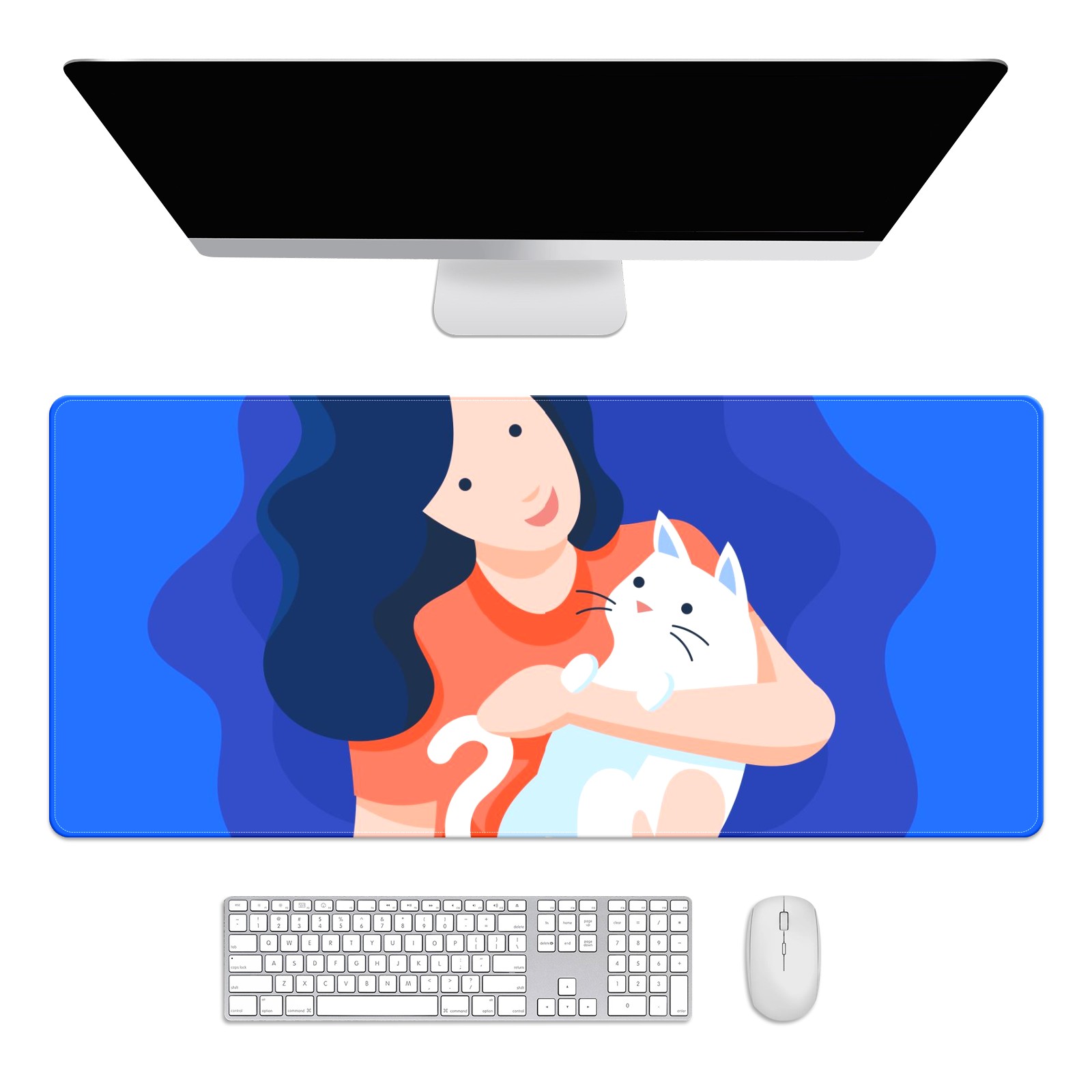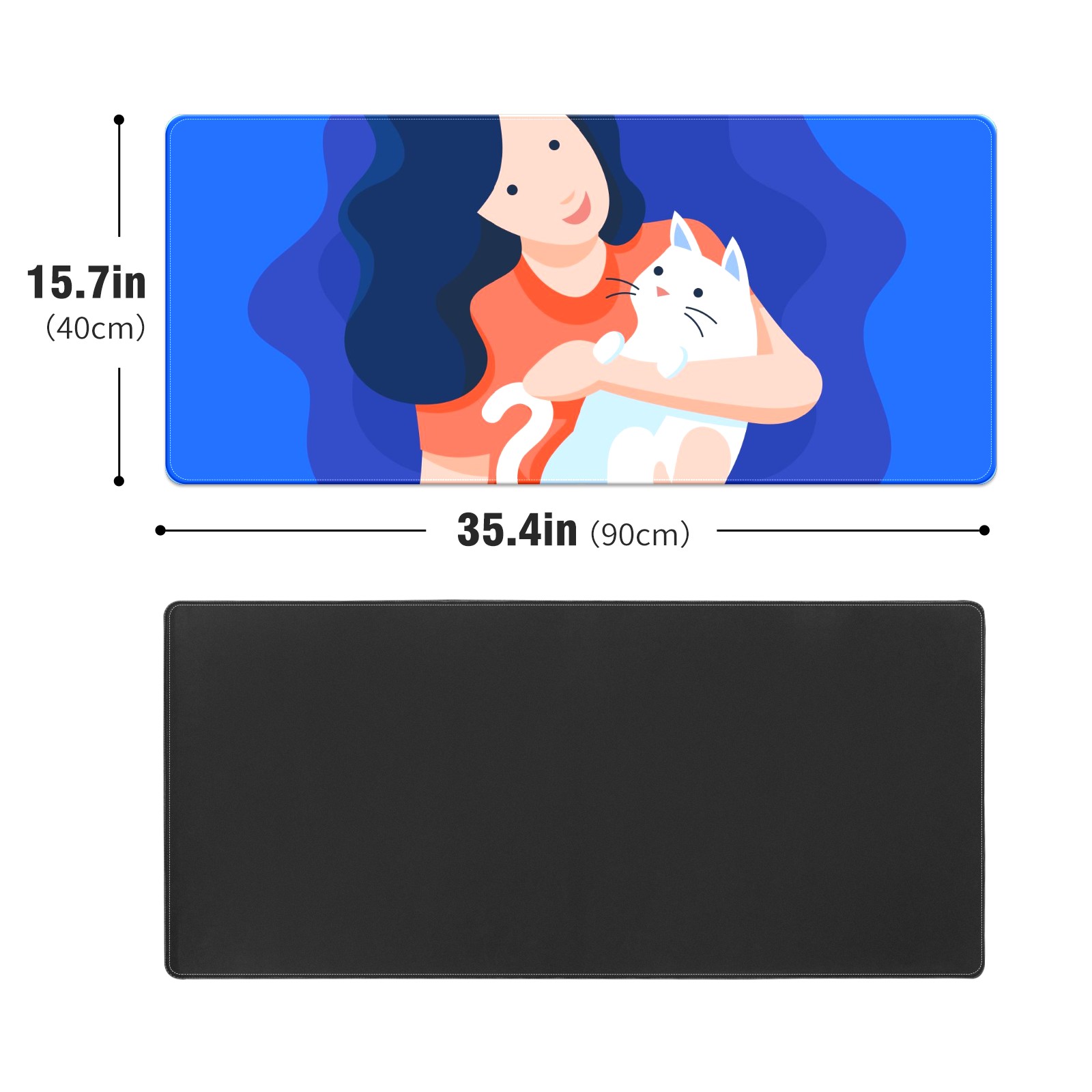 Large Mouse Pad for Desktop, Cute Desk Mat Pad Protector for Work & Gaming, Aesthetic Pretty Anti-Slip Laptop Blotter Cover for Office School Home Supplies, Girl And Cat , 35.4inx15.7in