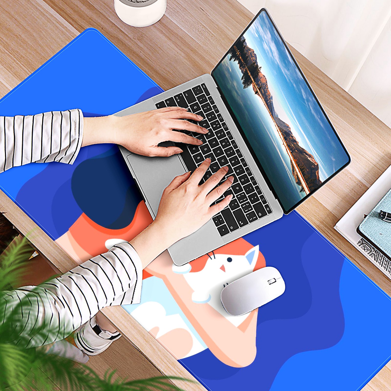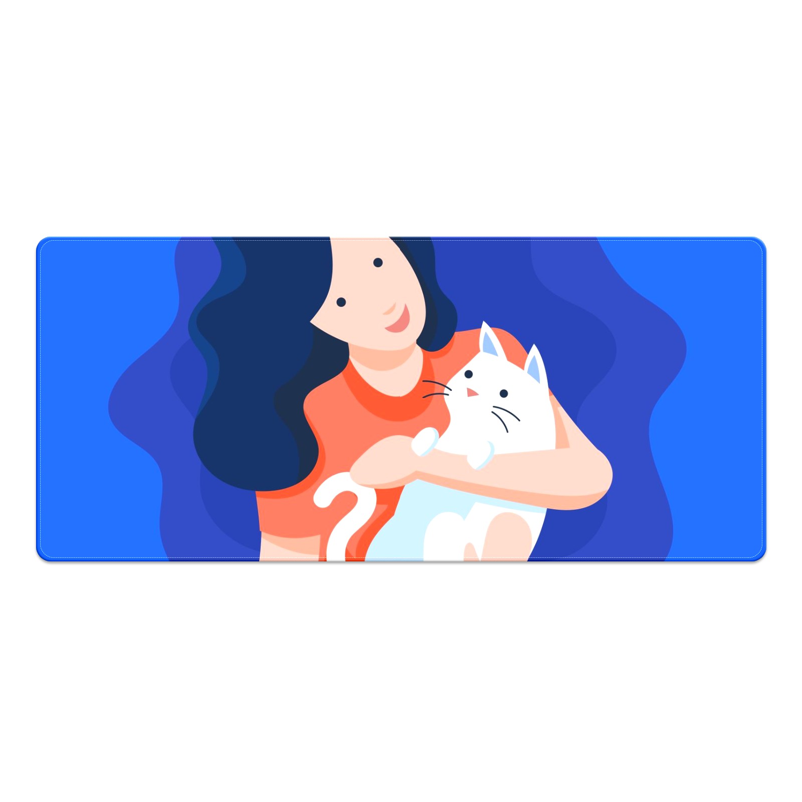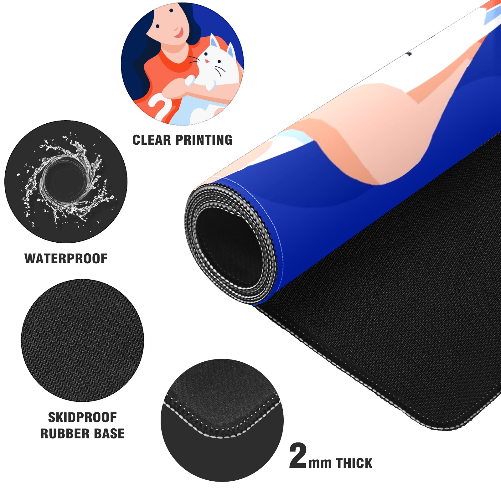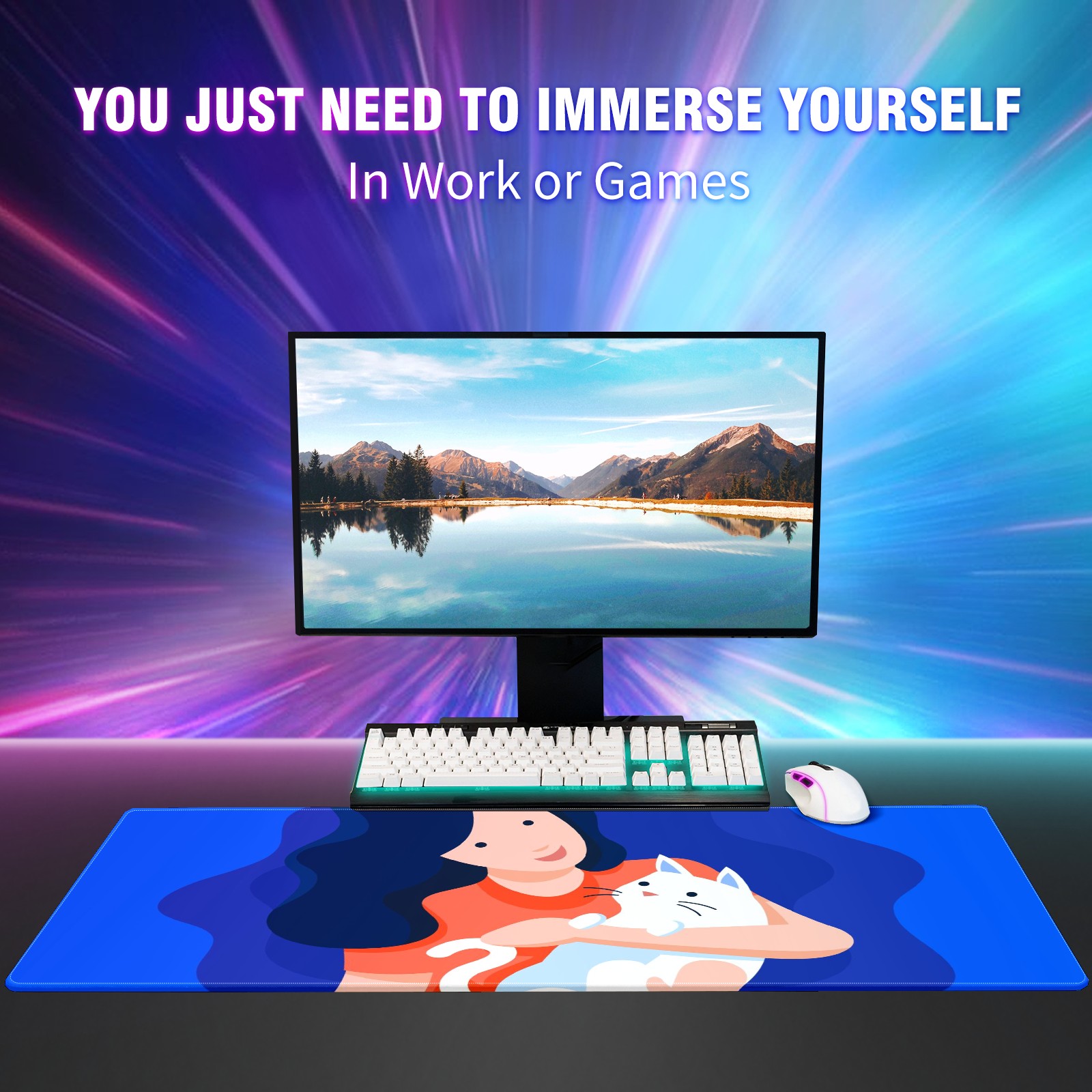 Large Mouse Pad for Desktop, Cute Desk Mat Pad Protector for Work & Gaming, Aesthetic Pretty Anti-Slip Laptop Blotter Cover for Office School Home Supplies, Girl And Cat , 35.4inx15.7in