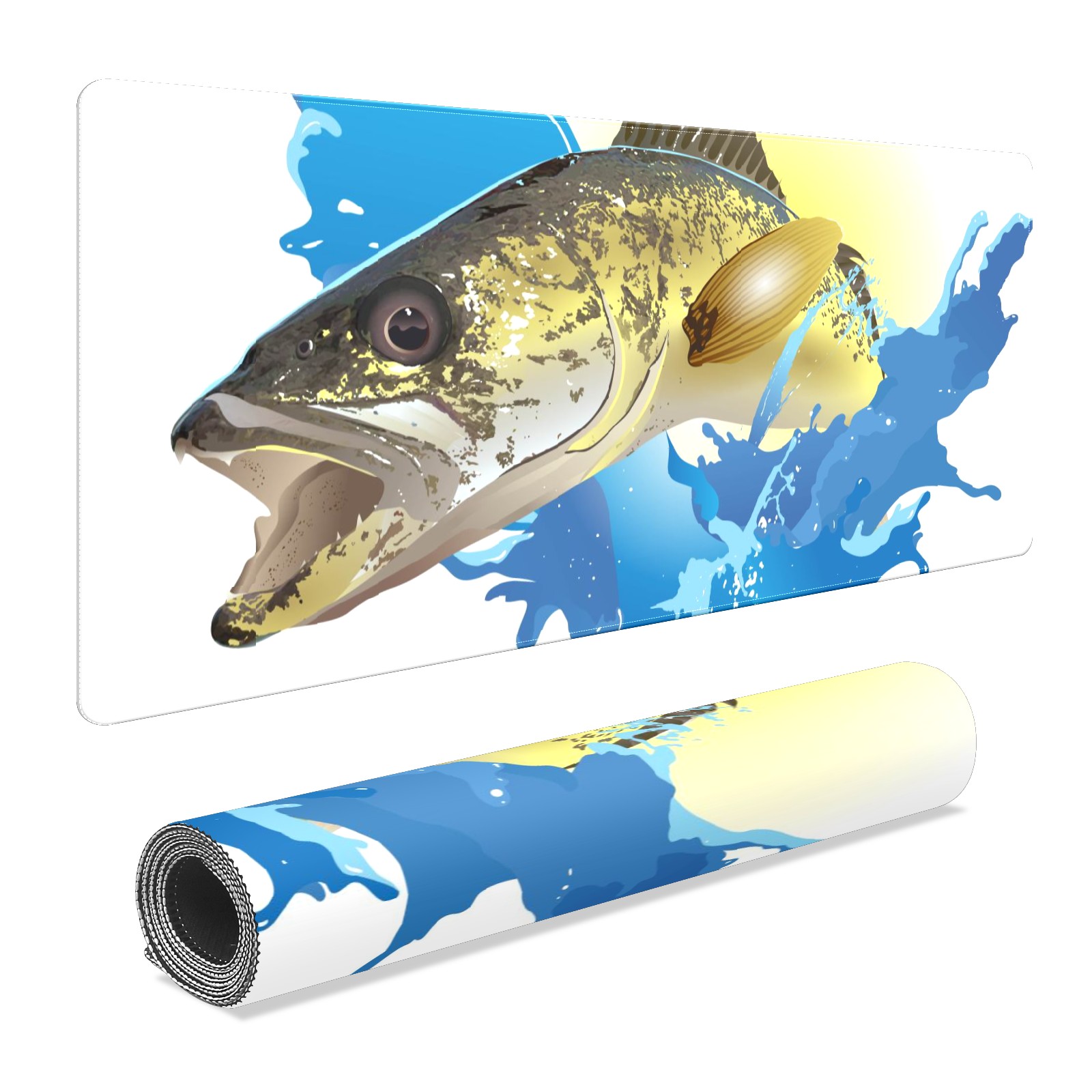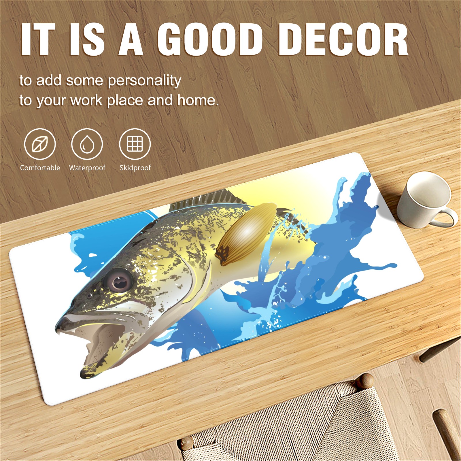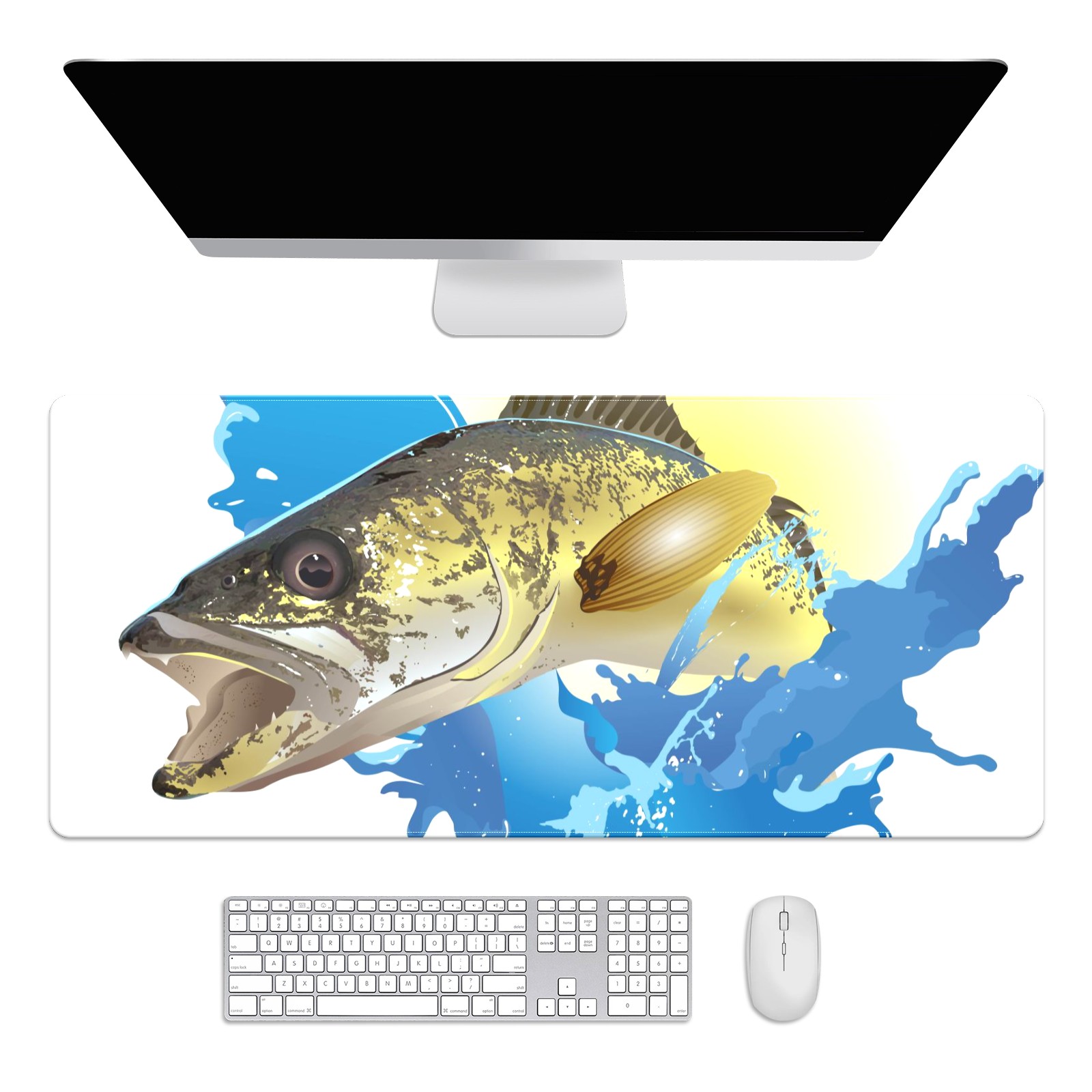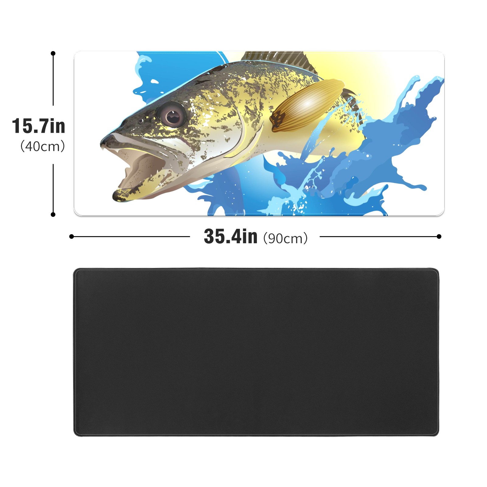 Large Mouse Pad for Desktop, Cute Desk Mat Pad Protector for Work & Gaming, Aesthetic Pretty Anti-Slip Laptop Blotter Cover for Office School Home Supplies, Walleye Jumping , 35.4inx15.7in