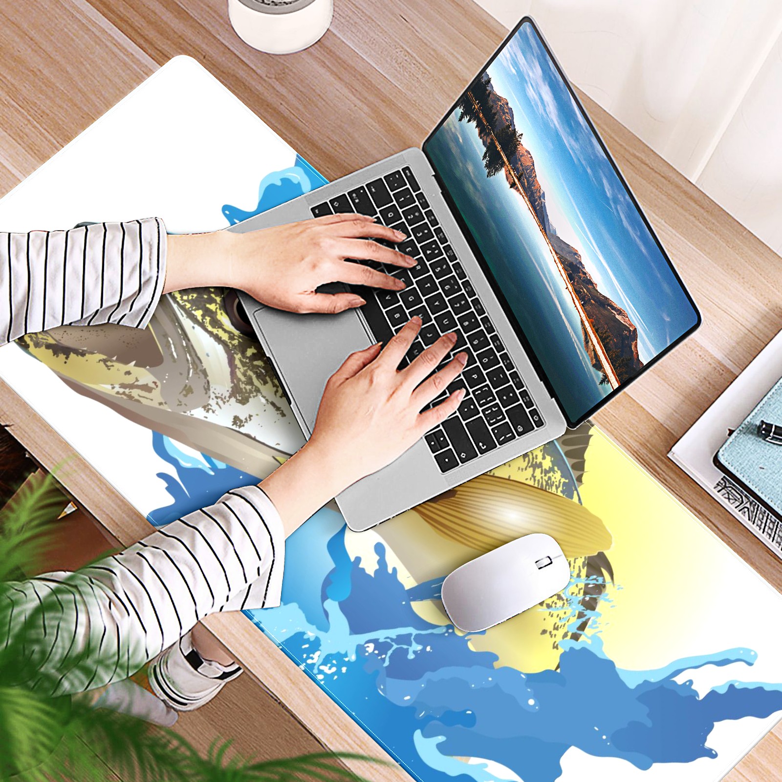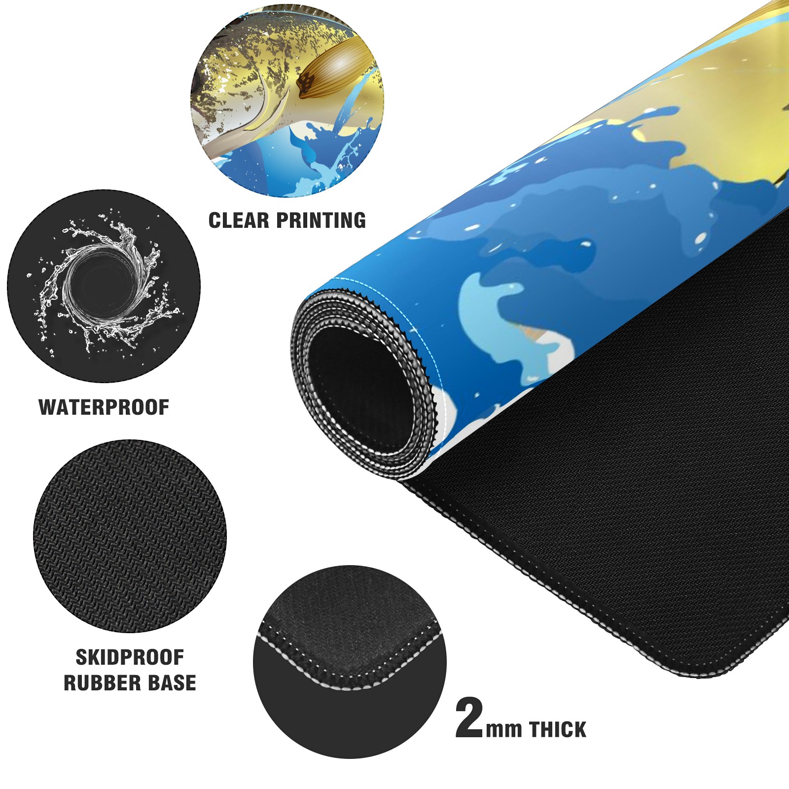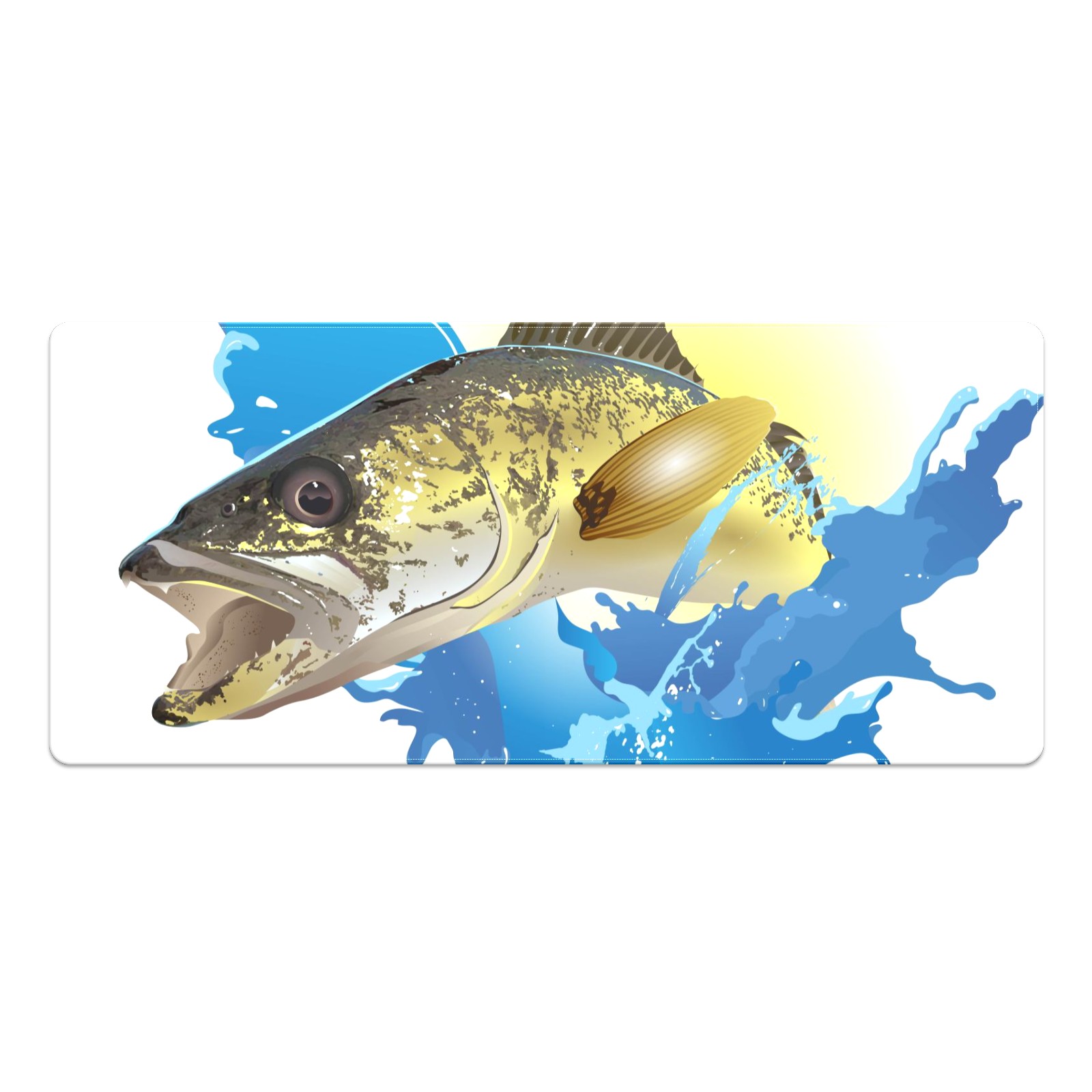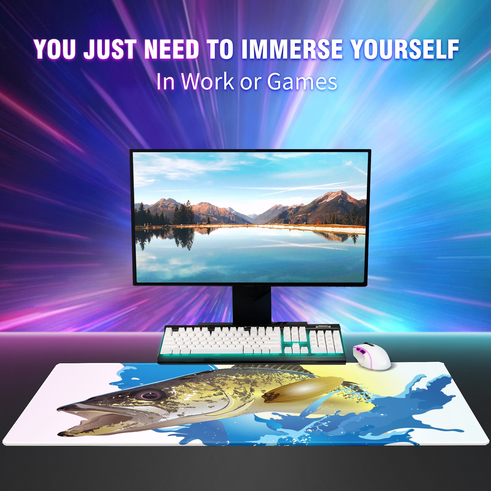 Large Mouse Pad for Desktop, Cute Desk Mat Pad Protector for Work & Gaming, Aesthetic Pretty Anti-Slip Laptop Blotter Cover for Office School Home Supplies, Walleye Jumping , 35.4inx15.7in