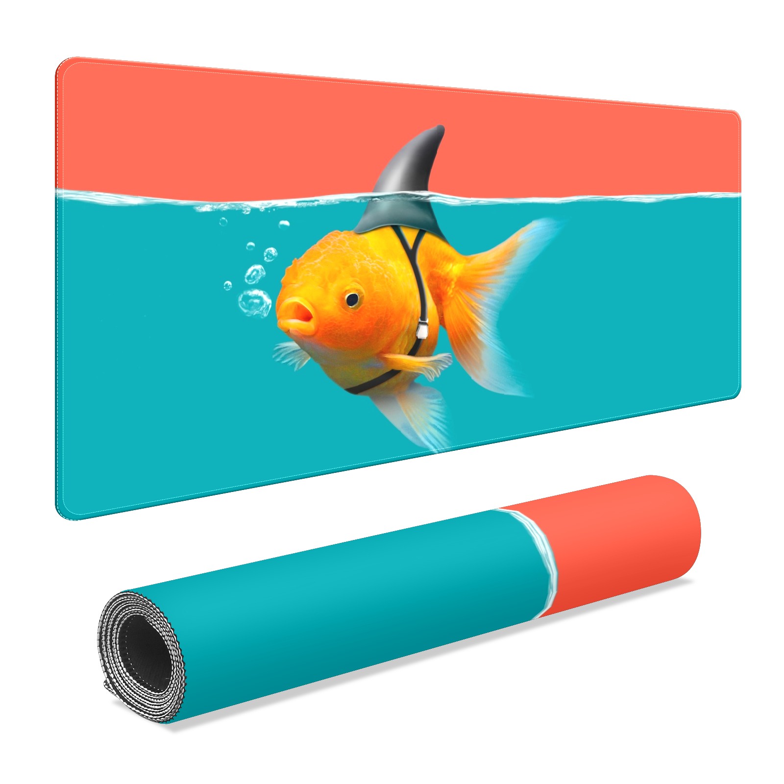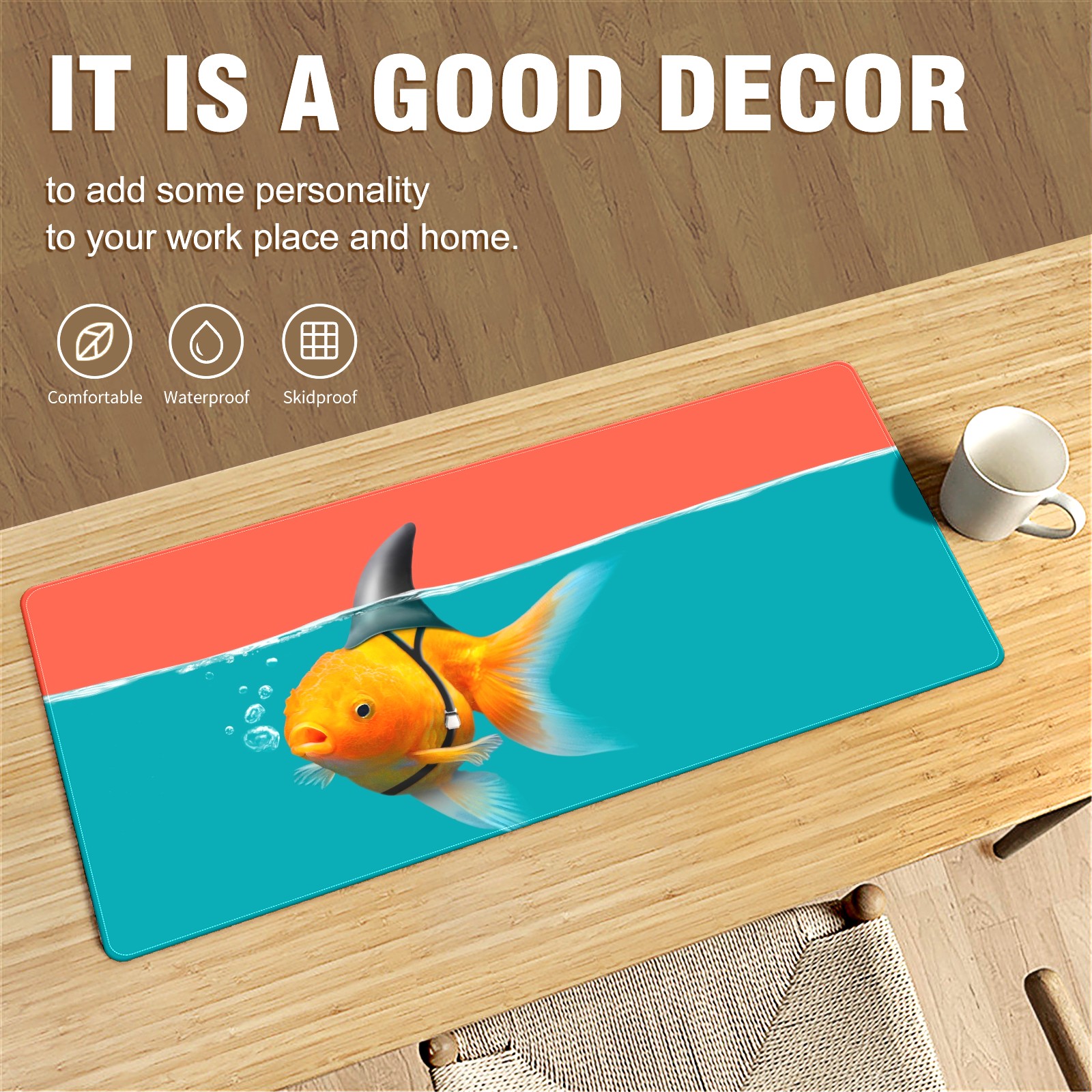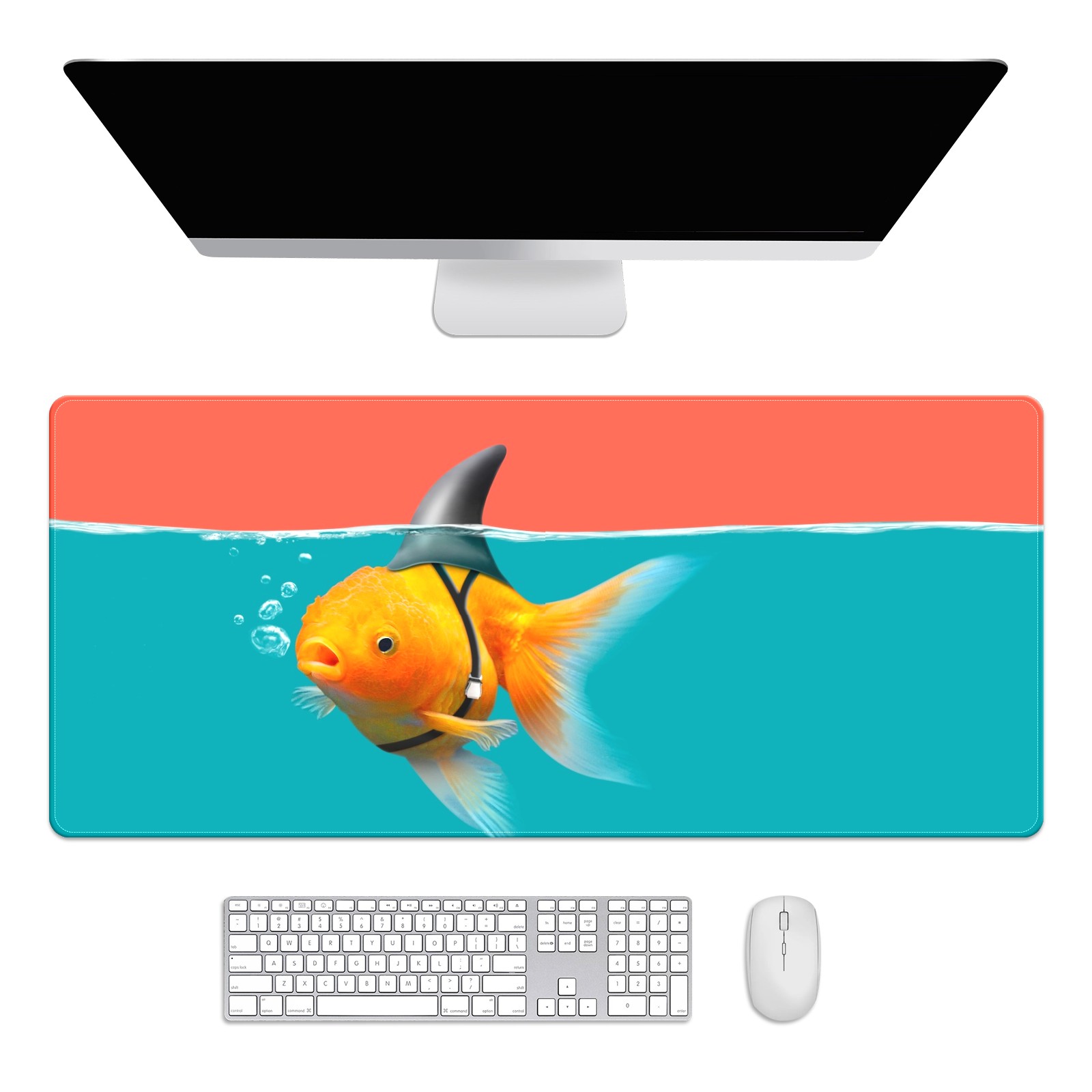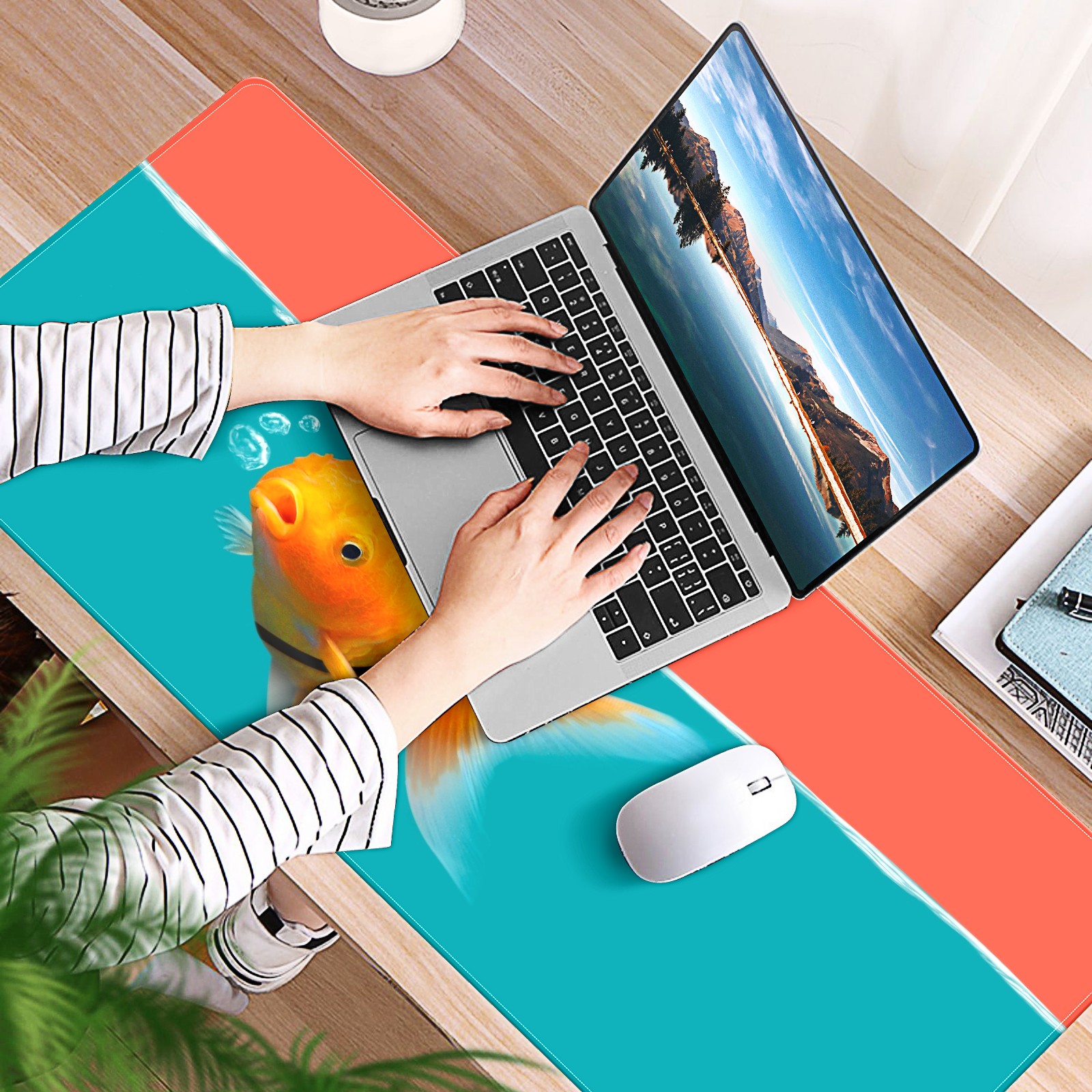Large Mouse Pad for Desktop, Cute Desk Mat Pad Protector for Work & Gaming, Aesthetic Pretty Anti-Slip Laptop Blotter Cover for Office School Home Supplies, Cute Goldfish , 35.4inx15.7in