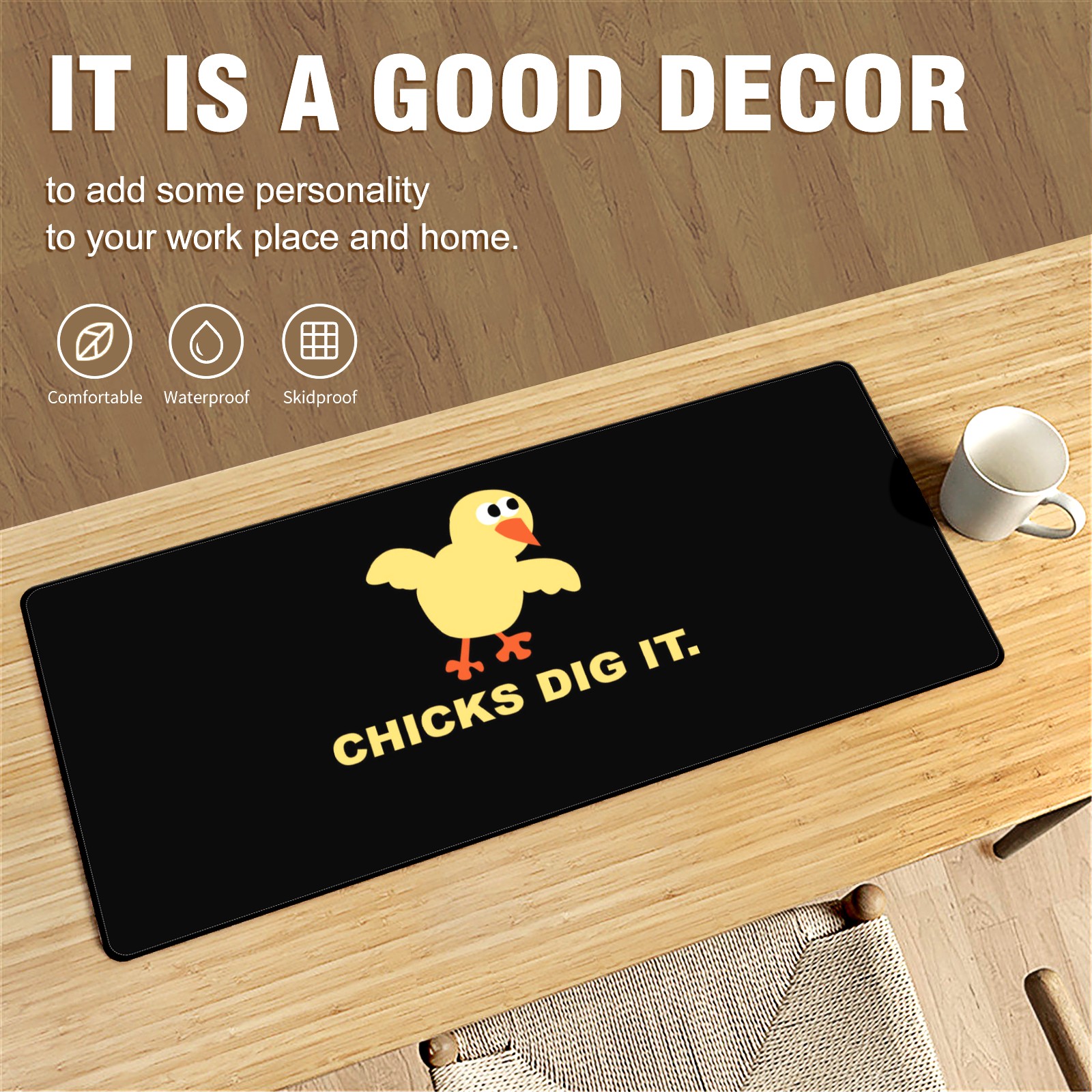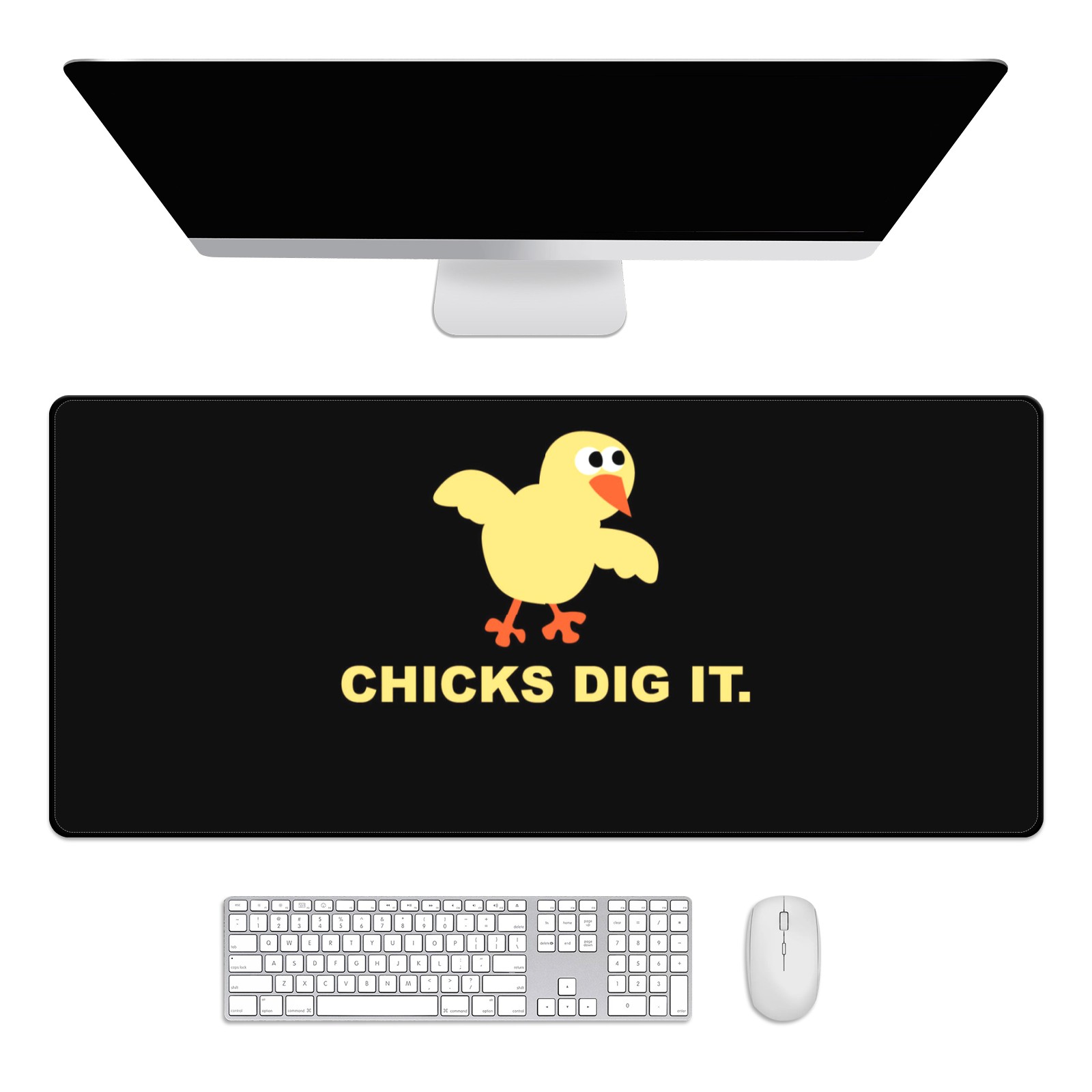 Large Mouse Pad for Desktop, Cute Desk Mat Pad Protector for Work & Gaming, Aesthetic Pretty Anti-Slip Laptop Blotter Cover for Office School Home Supplies, Yellow Chicken , 35.4inx15.7in