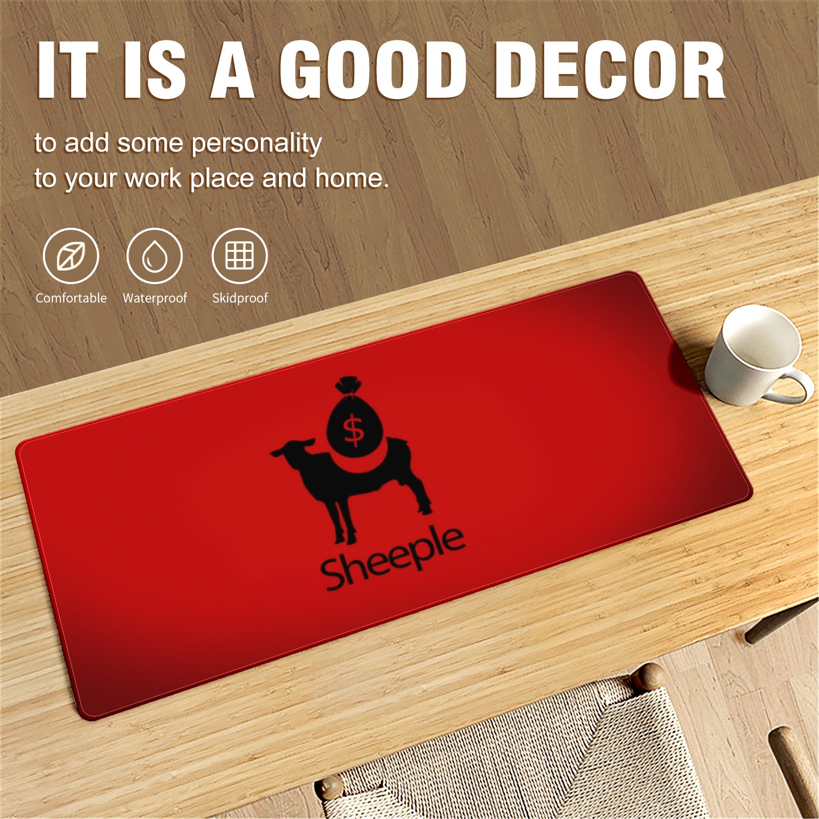 Large Mouse Pad for Desktop, Cute Desk Mat Pad Protector for Work & Gaming, Aesthetic Pretty Anti-Slip Laptop Blotter Cover for Office School Home Supplies, Sheeple , 35.4inx15.7in
