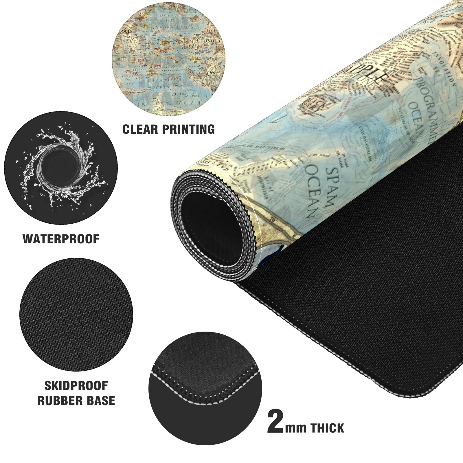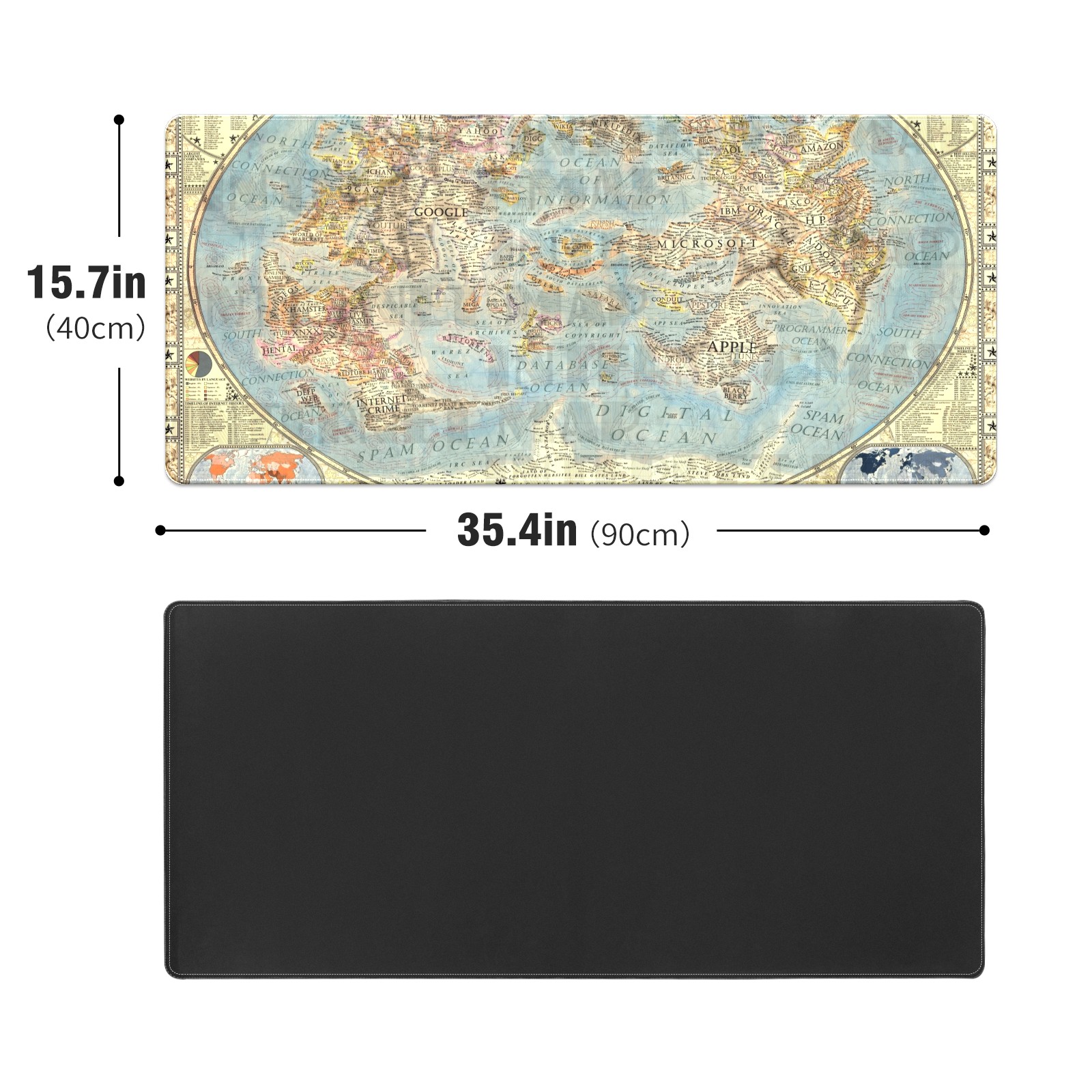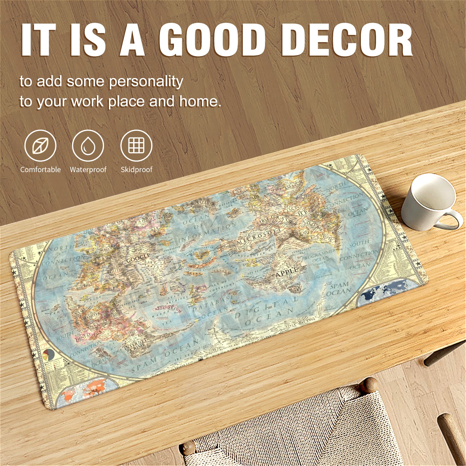 Large Mouse Pad for Desktop, Cute Desk Mat Pad Protector for Work & Gaming, Aesthetic Pretty Anti-Slip Laptop Blotter Cover for Office School Home Supplies, World Map , 35.4inx15.7in
