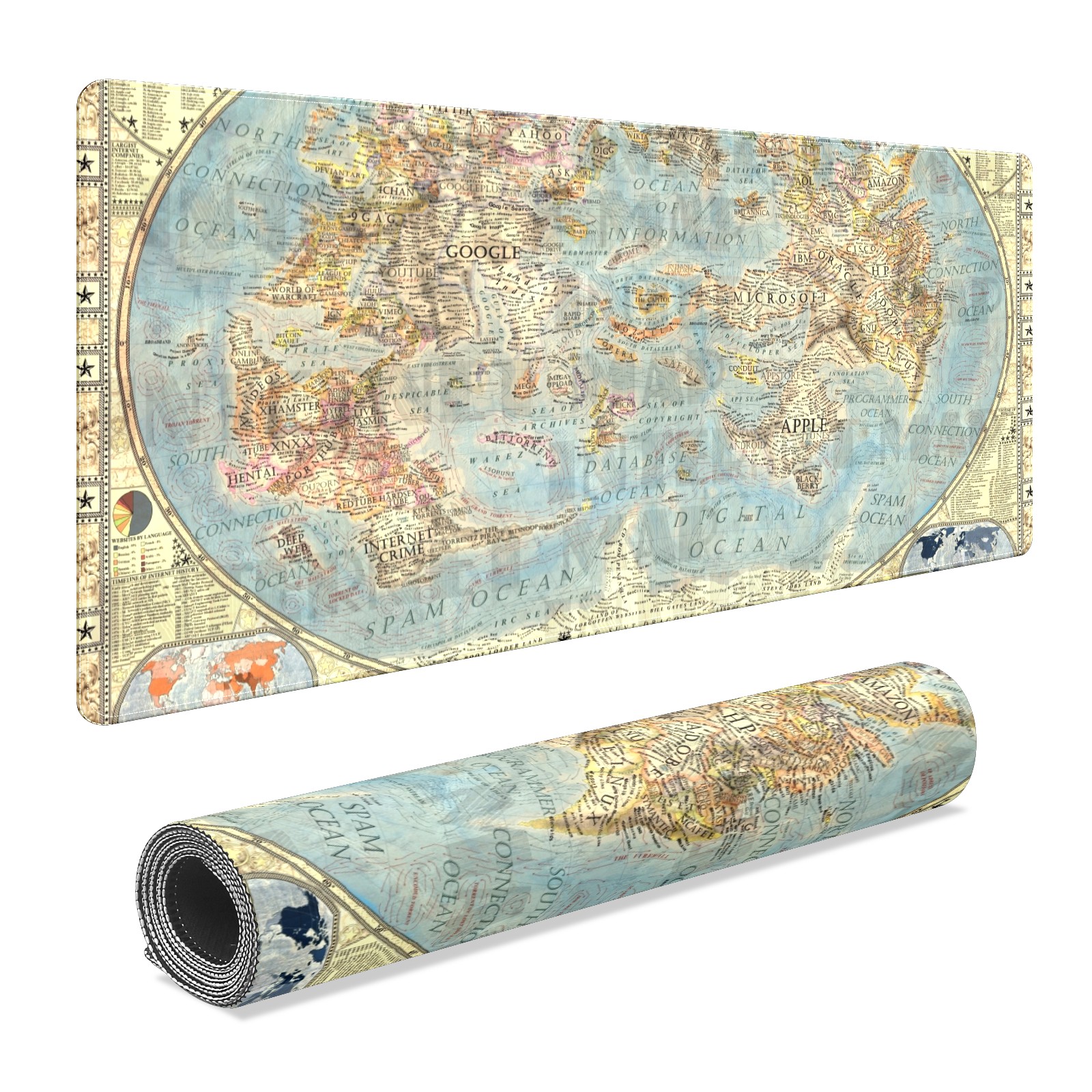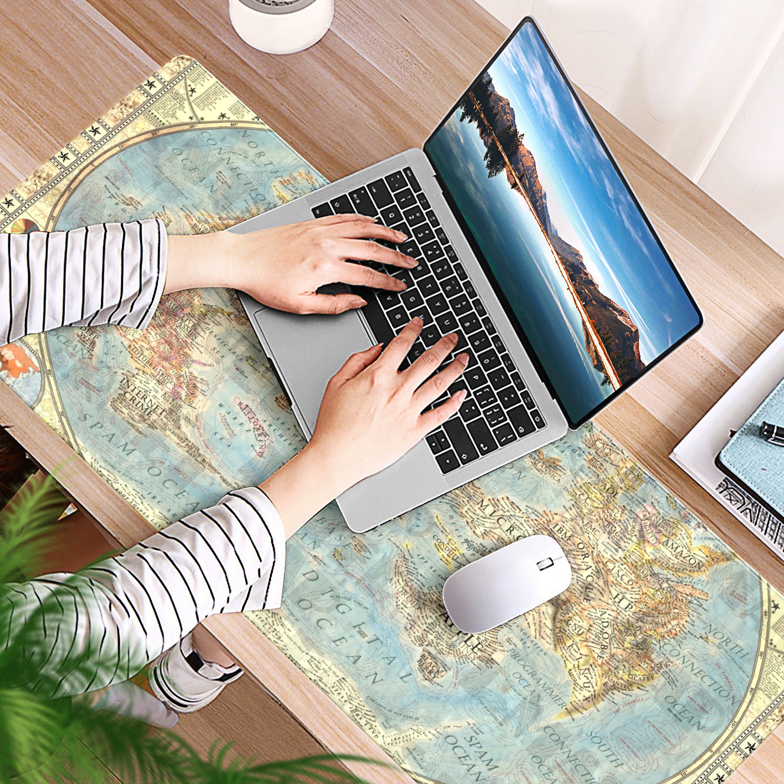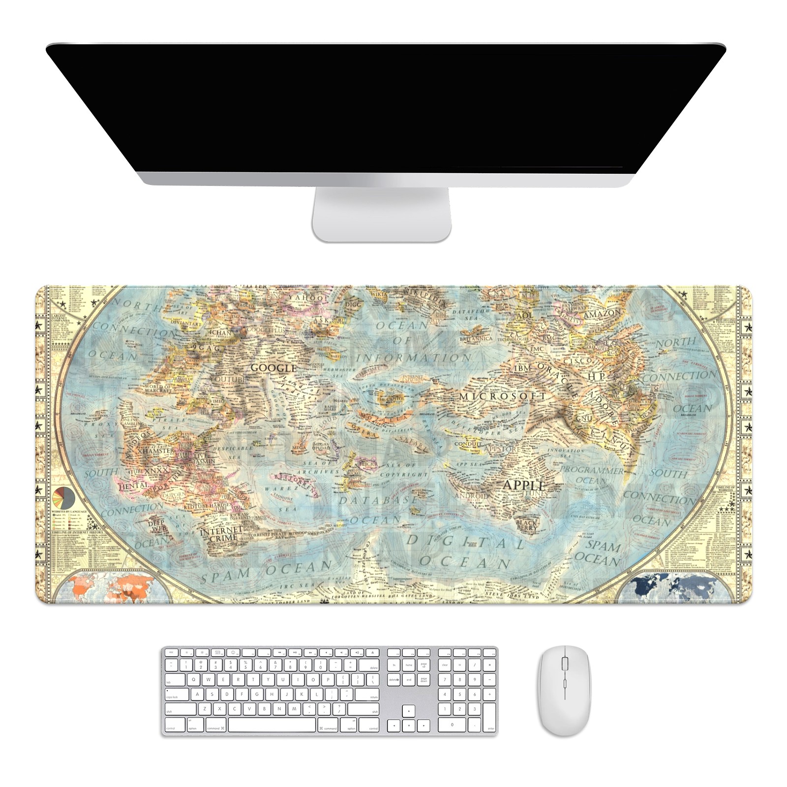 Large Mouse Pad for Desktop, Cute Desk Mat Pad Protector for Work & Gaming, Aesthetic Pretty Anti-Slip Laptop Blotter Cover for Office School Home Supplies, World Map , 35.4inx15.7in