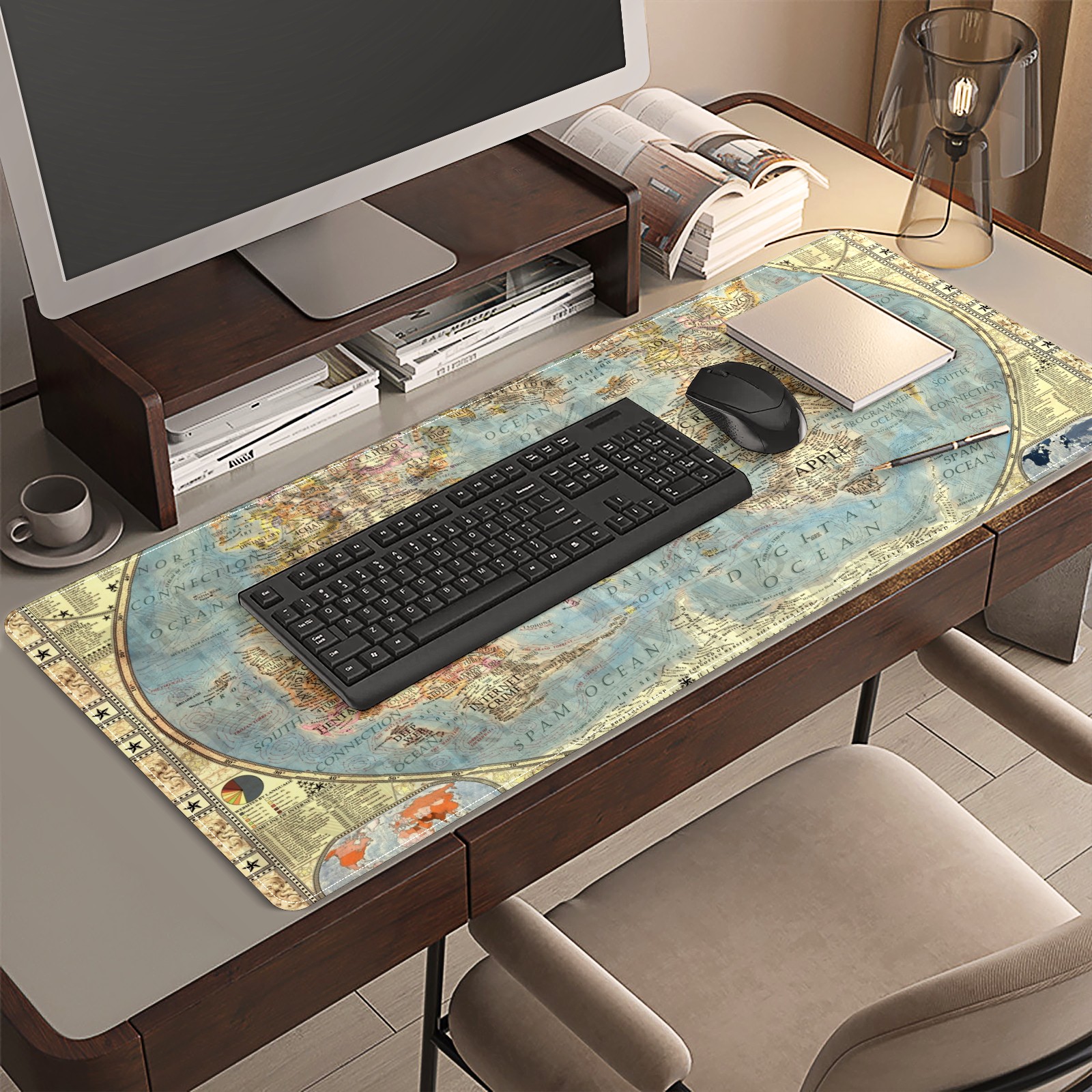 <p>This 35.4” × 15.7” extended desk mat offers ample space for your keyboard, mouse and essentials, working as a smooth work/writing pad while protecting your desktop from scratches.</p><p>With stylish artistic patterns, it adds personality to your home office, study or gaming setup. The high-density woven surface ensures precise, smooth mouse tracking for work and gaming.</p><p>Featuring an anti-slip natural rubber base for firm grip and stability, the mat is soft, elastic and odorless. Reinforced stitched edges prevent fraying and curling for long-lasting durability.</p>