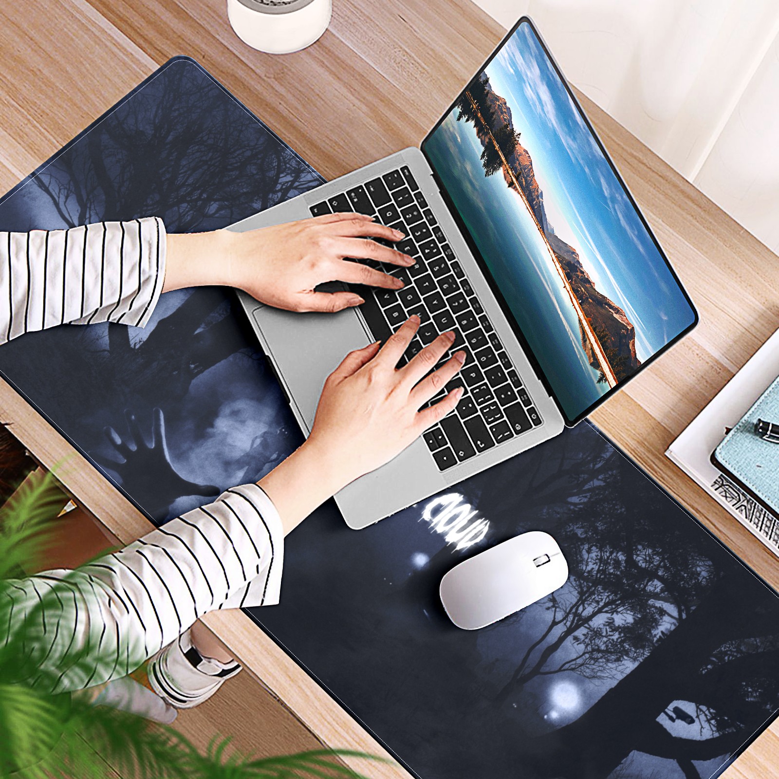 Large Mouse Pad for Desktop, Cute Desk Mat Pad Protector for Work & Gaming, Aesthetic Pretty Anti-Slip Laptop Blotter Cover for Office School Home Supplies, Misty Forest , 35.4inx15.7in
