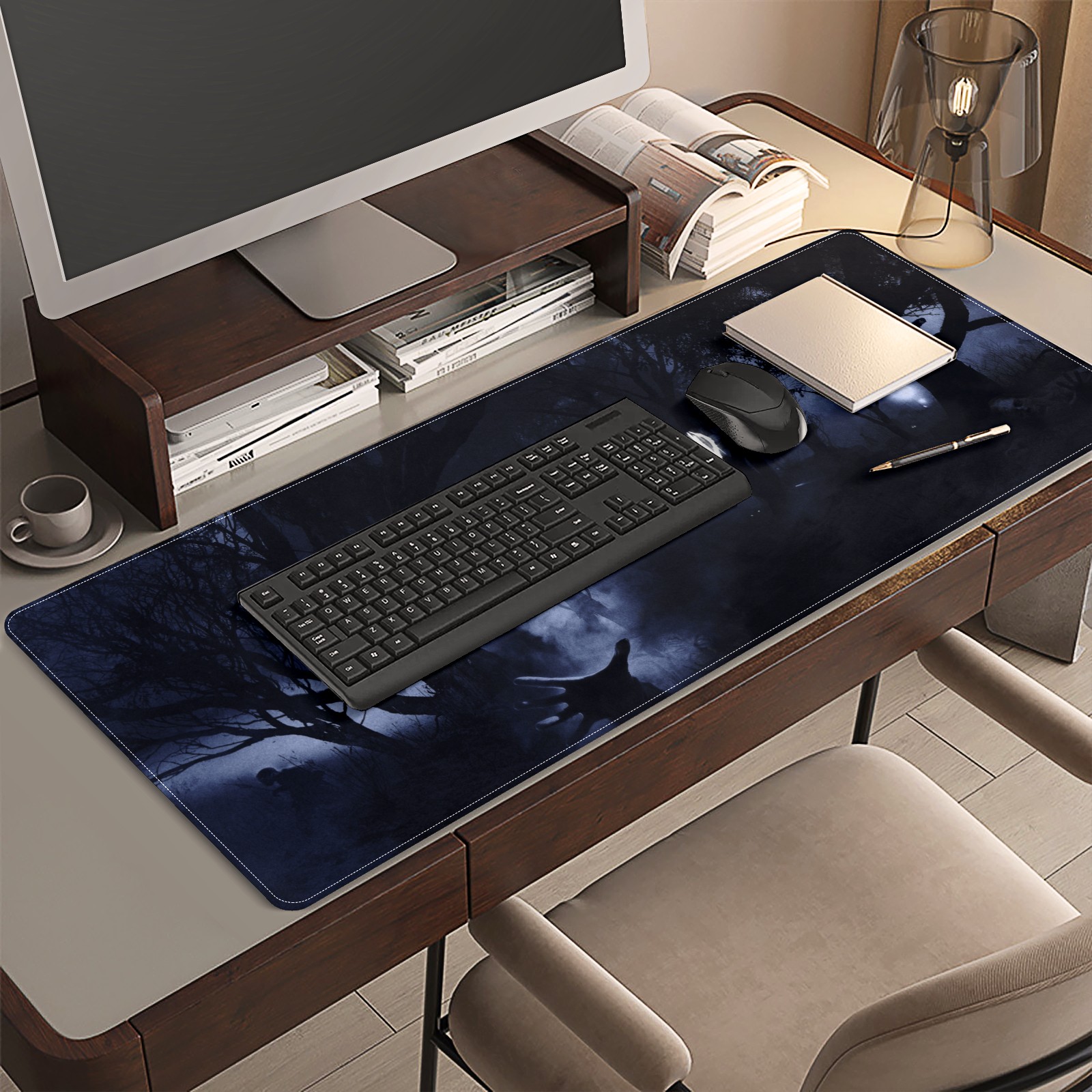 <p>This 35.4” × 15.7” extended desk mat offers ample space for your keyboard, mouse and essentials, working as a smooth work/writing pad while protecting your desktop from scratches.</p><p>With stylish artistic patterns, it adds personality to your home office, study or gaming setup. The high-density woven surface ensures precise, smooth mouse tracking for work and gaming.</p><p>Featuring an anti-slip natural rubber base for firm grip and stability, the mat is soft, elastic and odorless. Reinforced stitched edges prevent fraying and curling for long-lasting durability.</p>