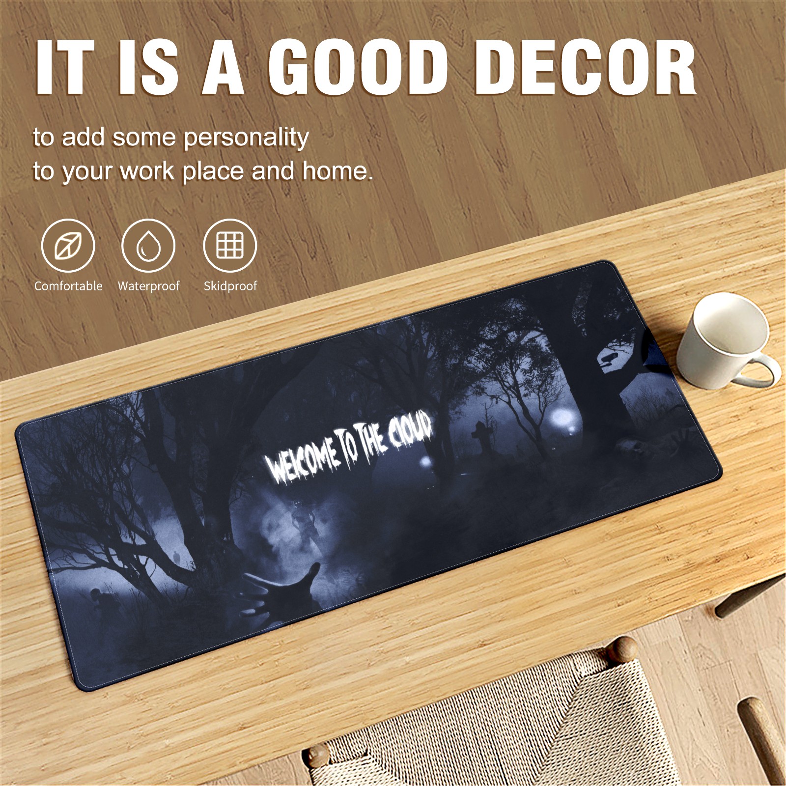 • <p>This 35.4” × 15.7” extended desk mat offers ample space for your keyboard, mouse and essentials, working as a smooth work/writing pad while protecting your desktop from scratches.</p><p>With stylish artistic patterns, it adds personality to your home office, study or gaming setup. The high-density woven surface ensures precise, smooth mouse tracking for work and gaming.</p><p>Featuring an anti-slip natural rubber base for firm grip and stability, the mat is soft, elastic and odorless. Reinforced stitched edges prevent fraying and curling for long-lasting durability.</p>