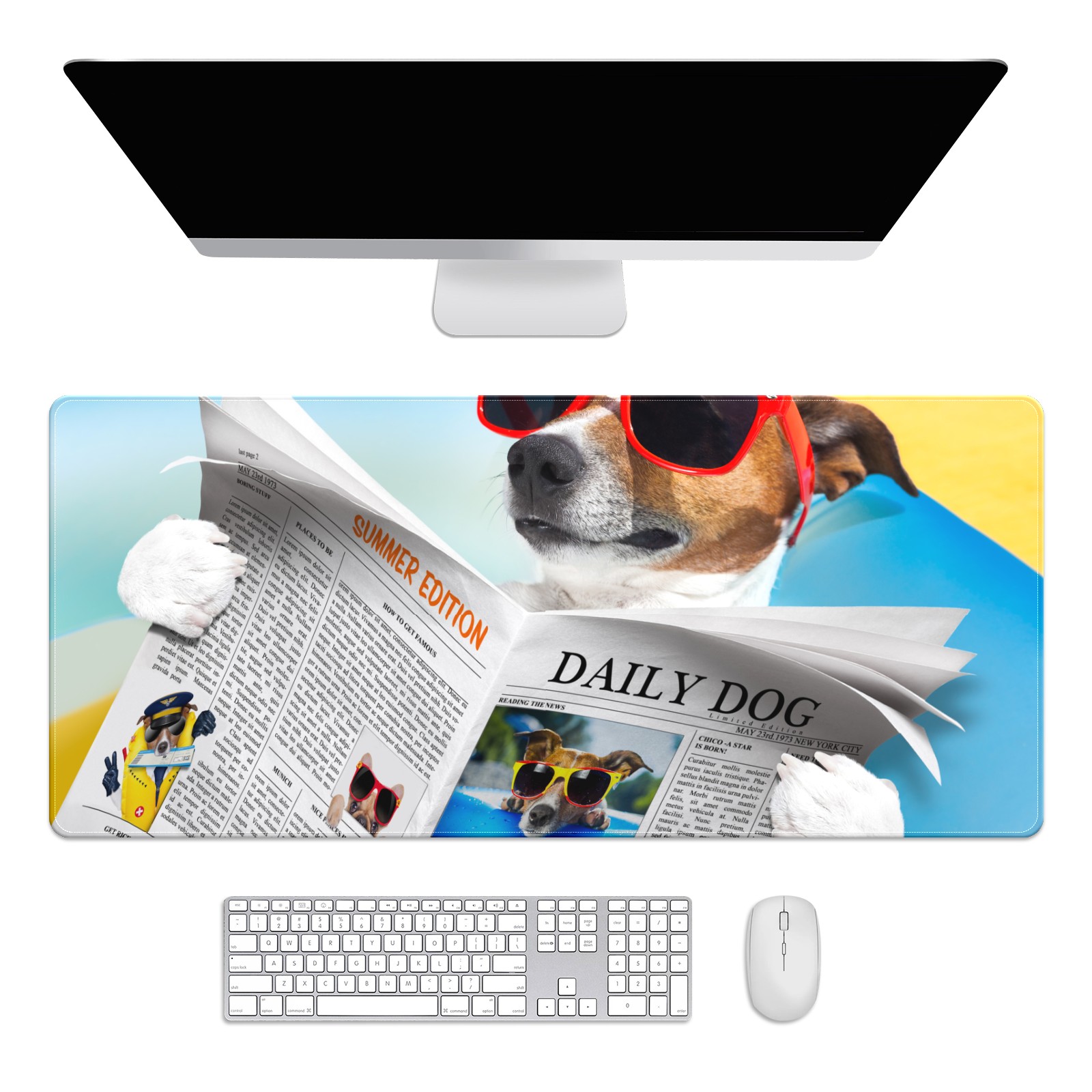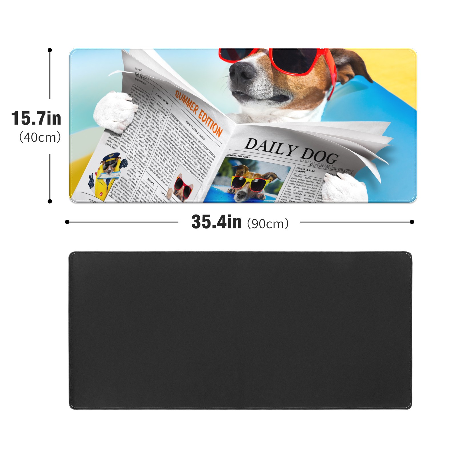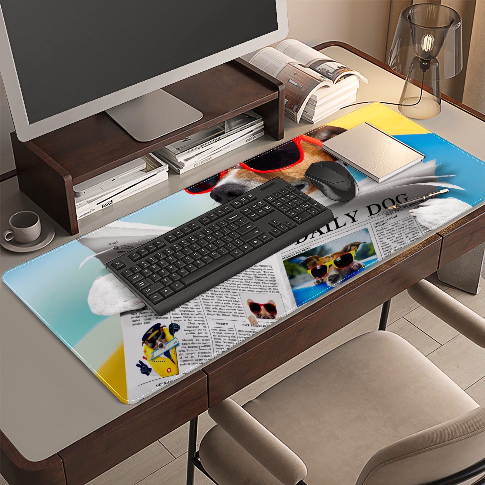 Large Mouse Pad for Desktop, Cute Desk Mat Pad Protector for Work & Gaming, Aesthetic Pretty Anti-Slip Laptop Blotter Cover for Office School Home Supplies, Sunglasses Dog , 35.4inx15.7in