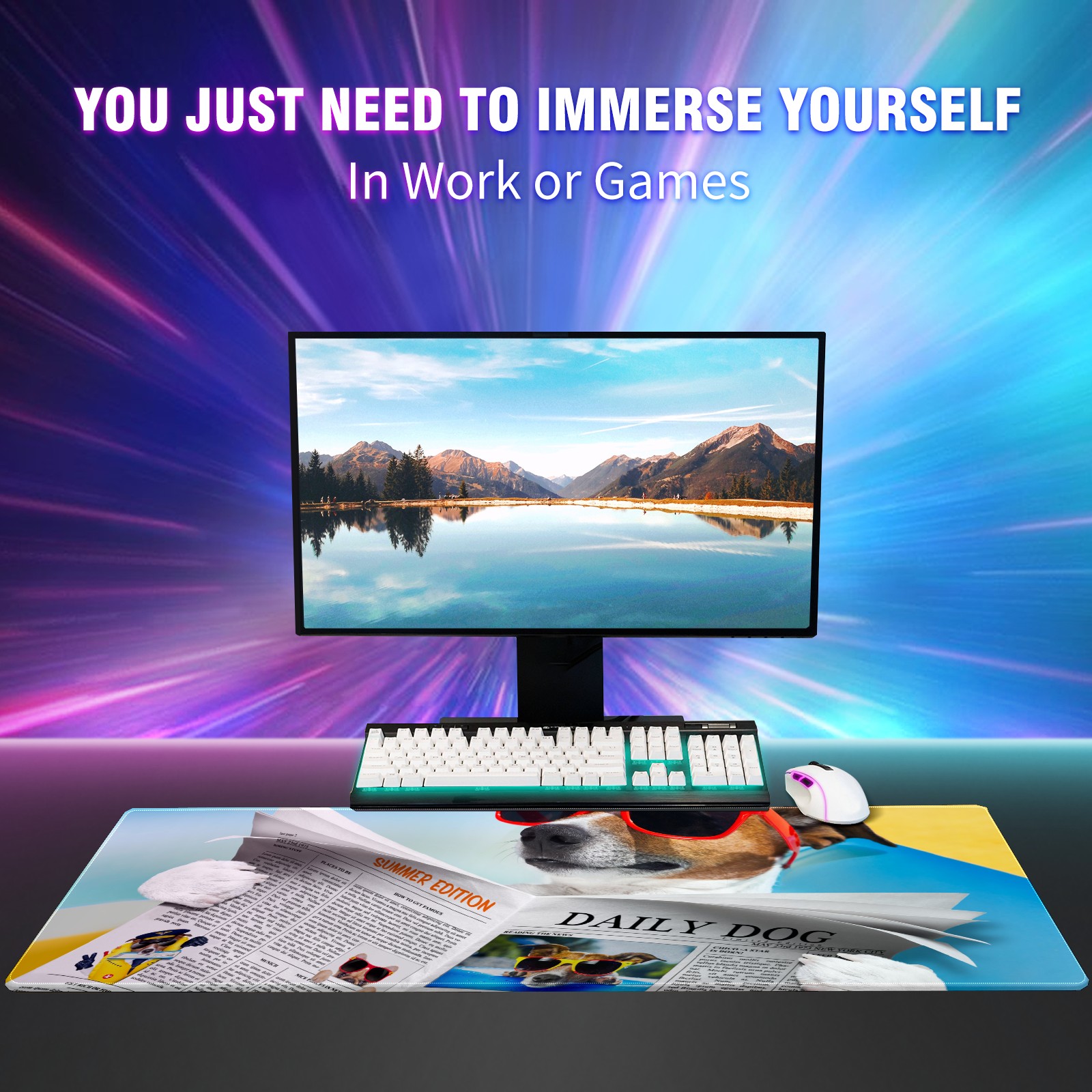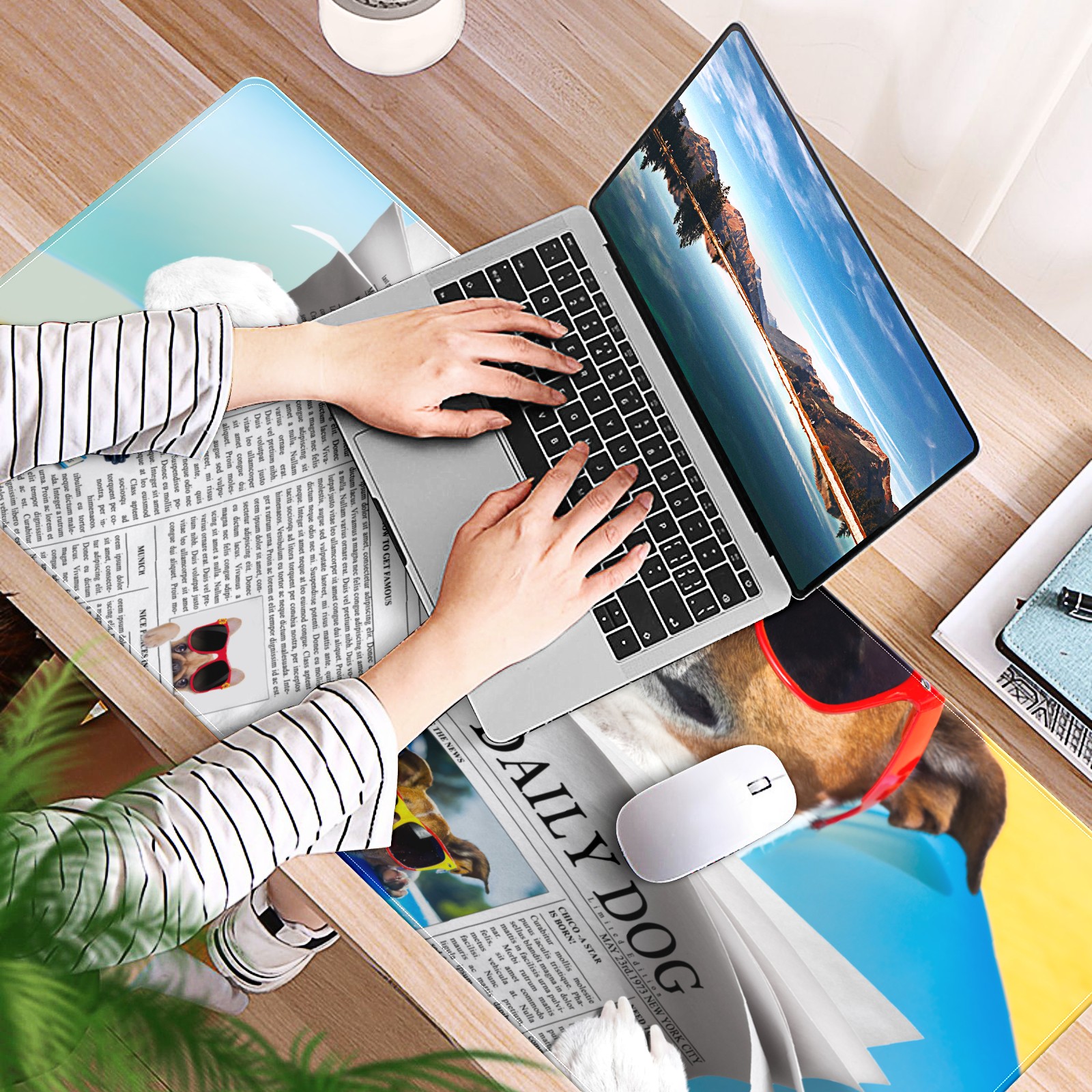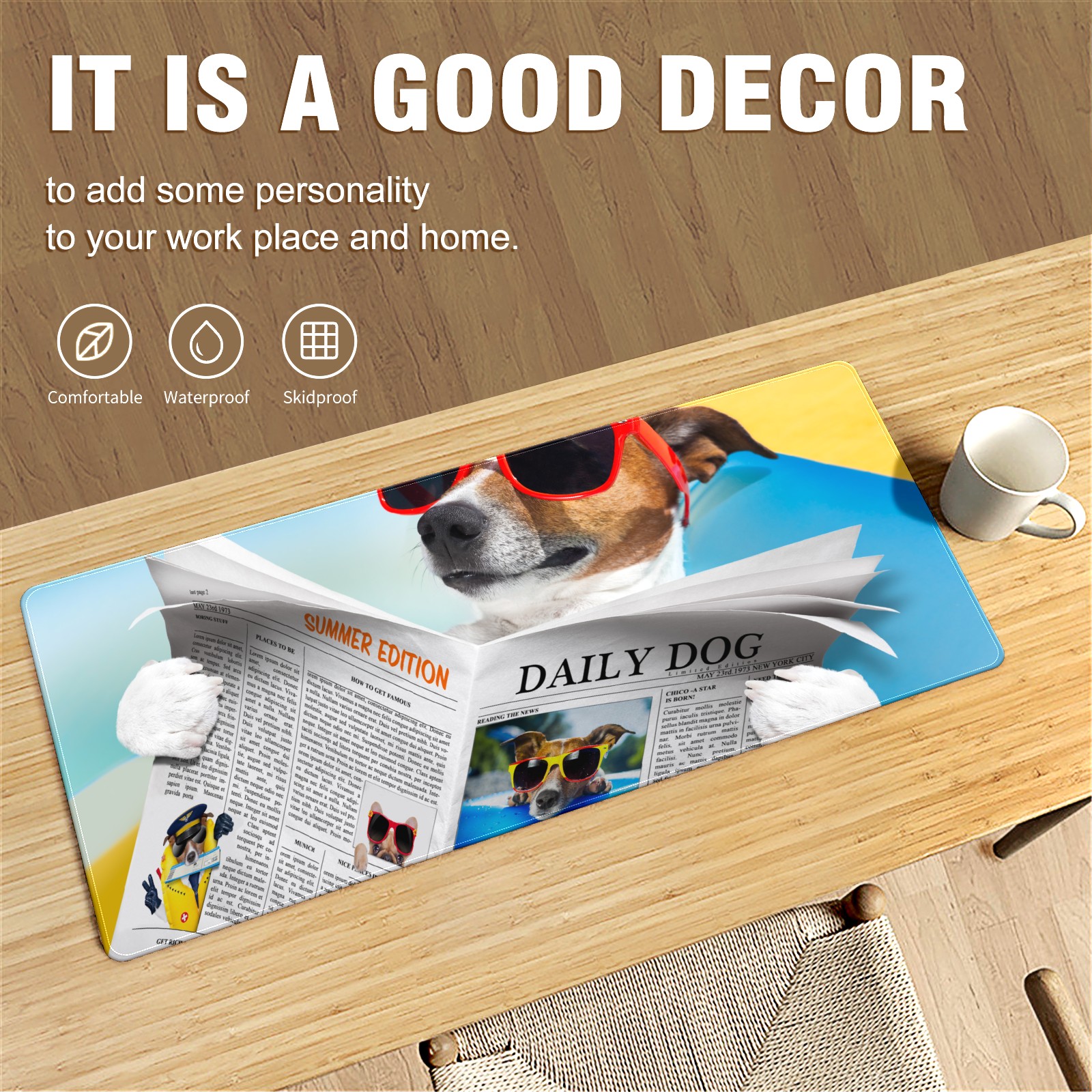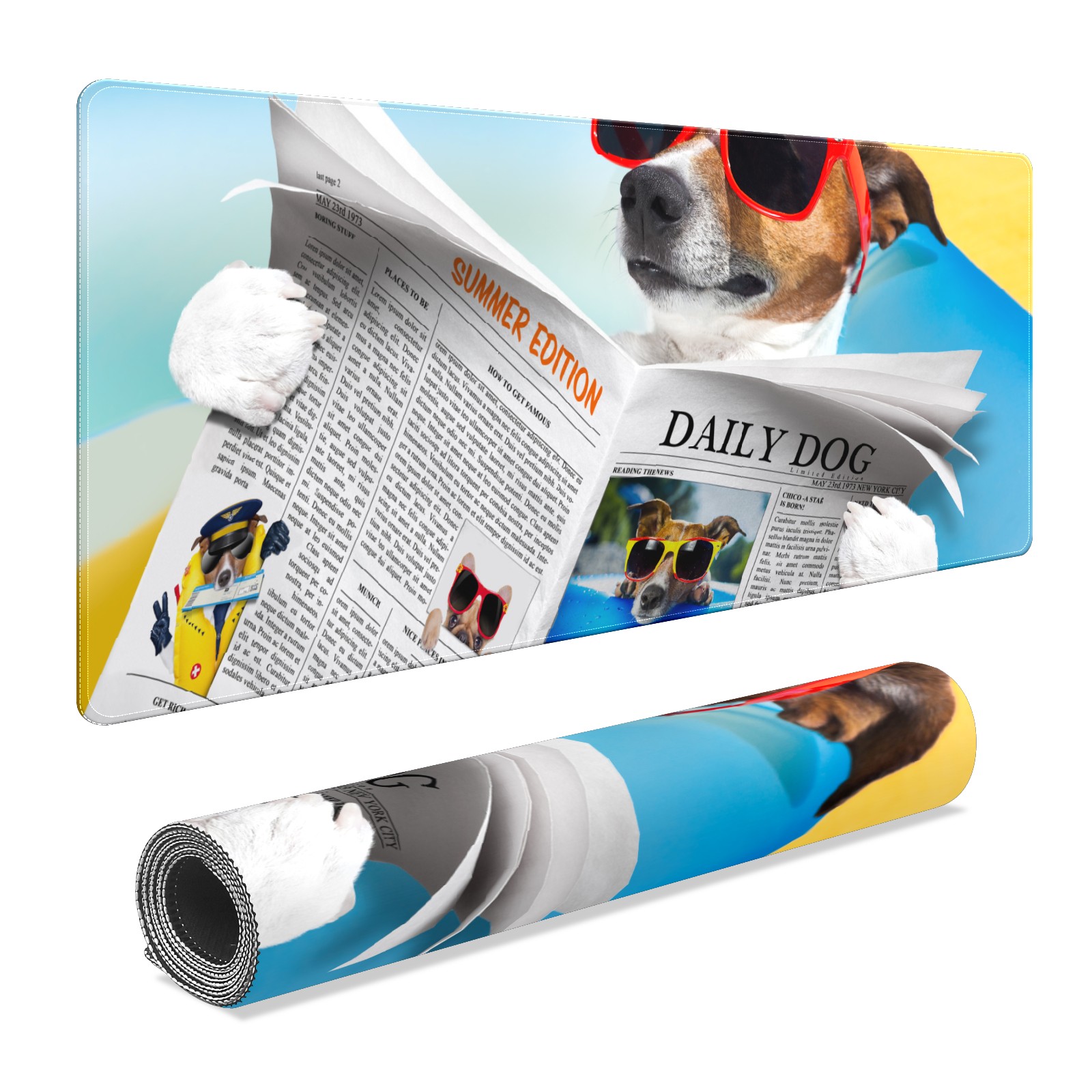 Large Mouse Pad for Desktop, Cute Desk Mat Pad Protector for Work & Gaming, Aesthetic Pretty Anti-Slip Laptop Blotter Cover for Office School Home Supplies, Sunglasses Dog , 35.4inx15.7in