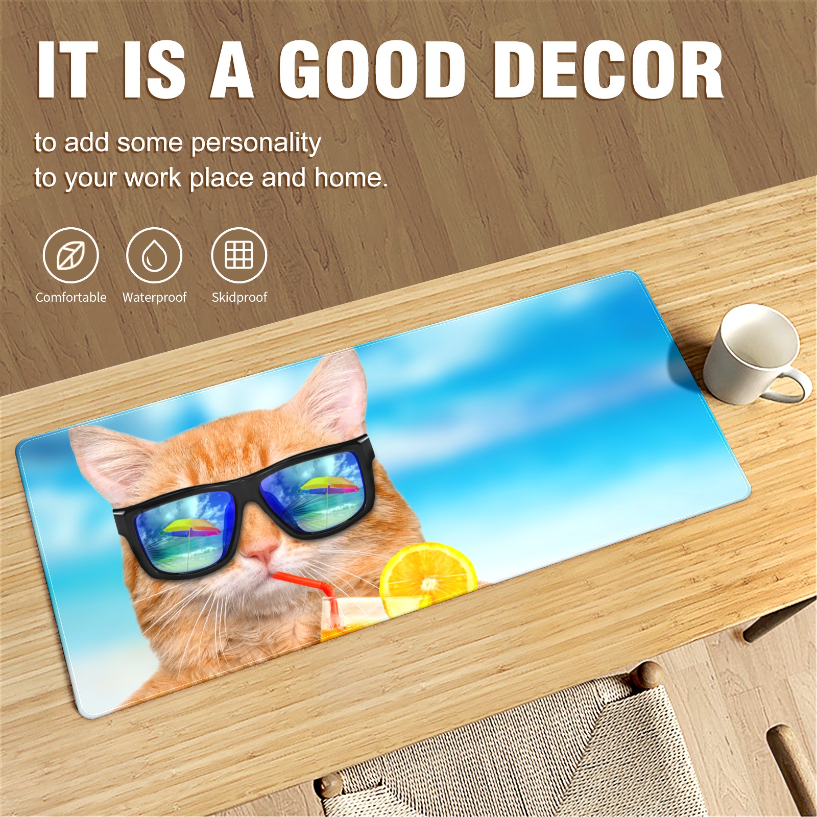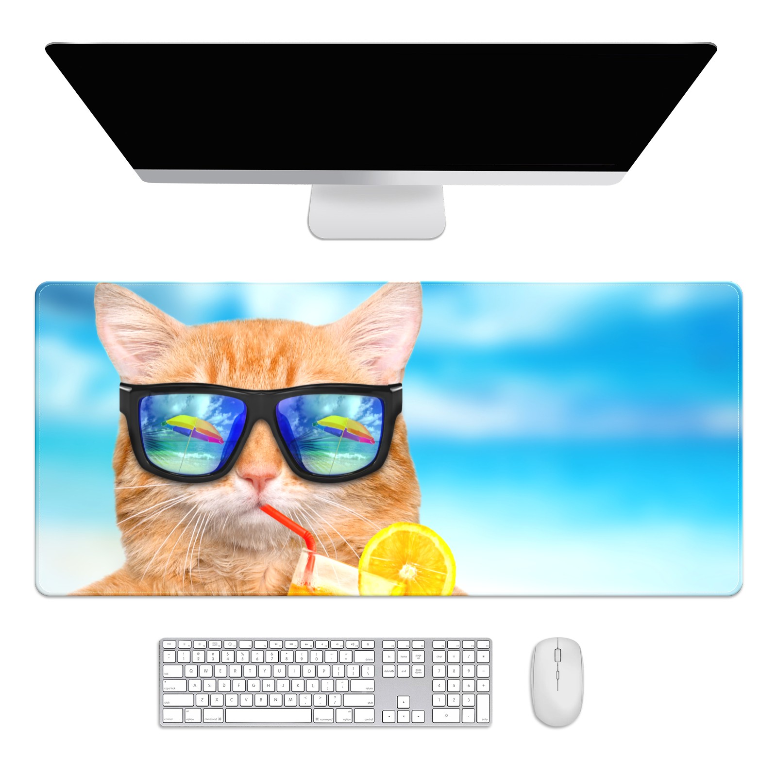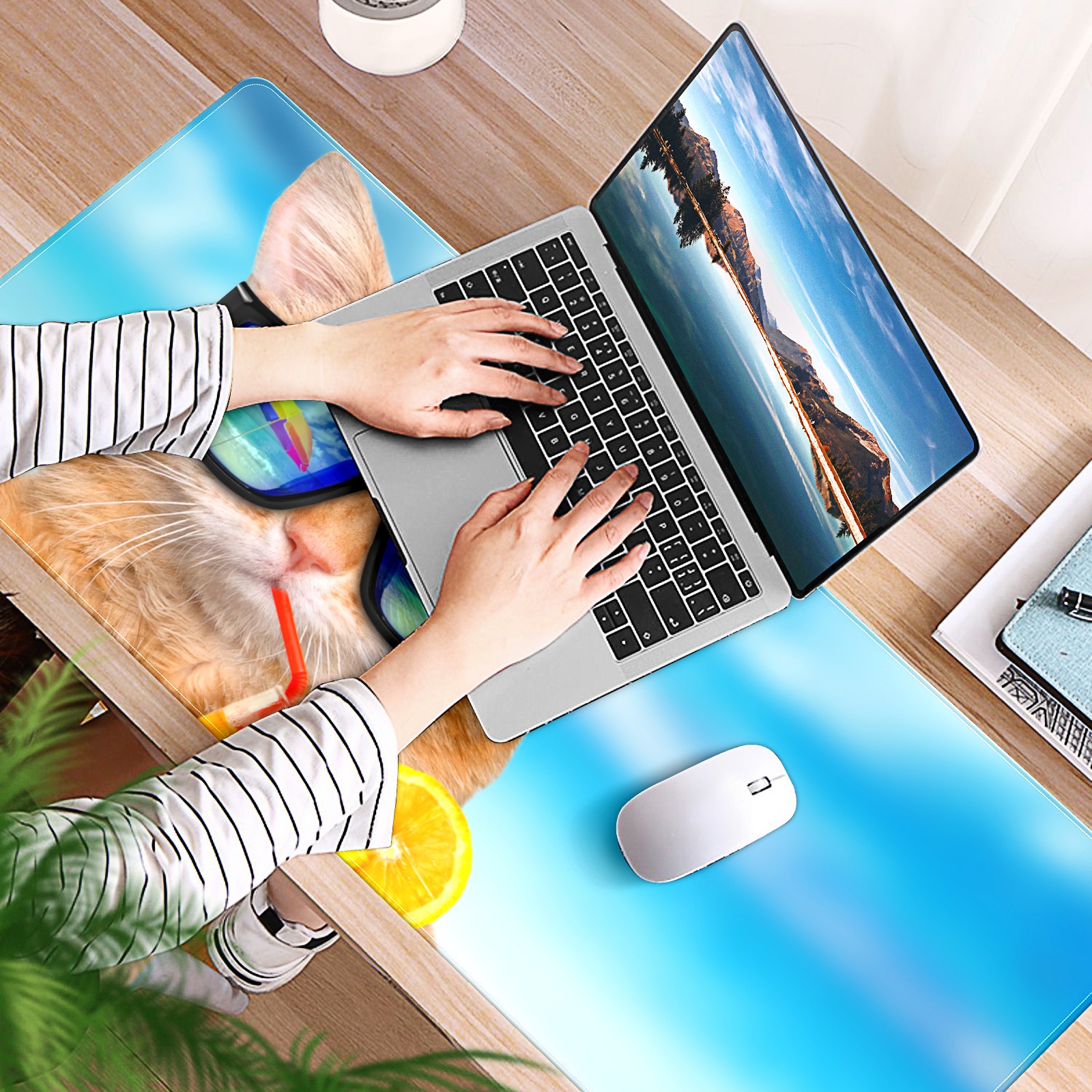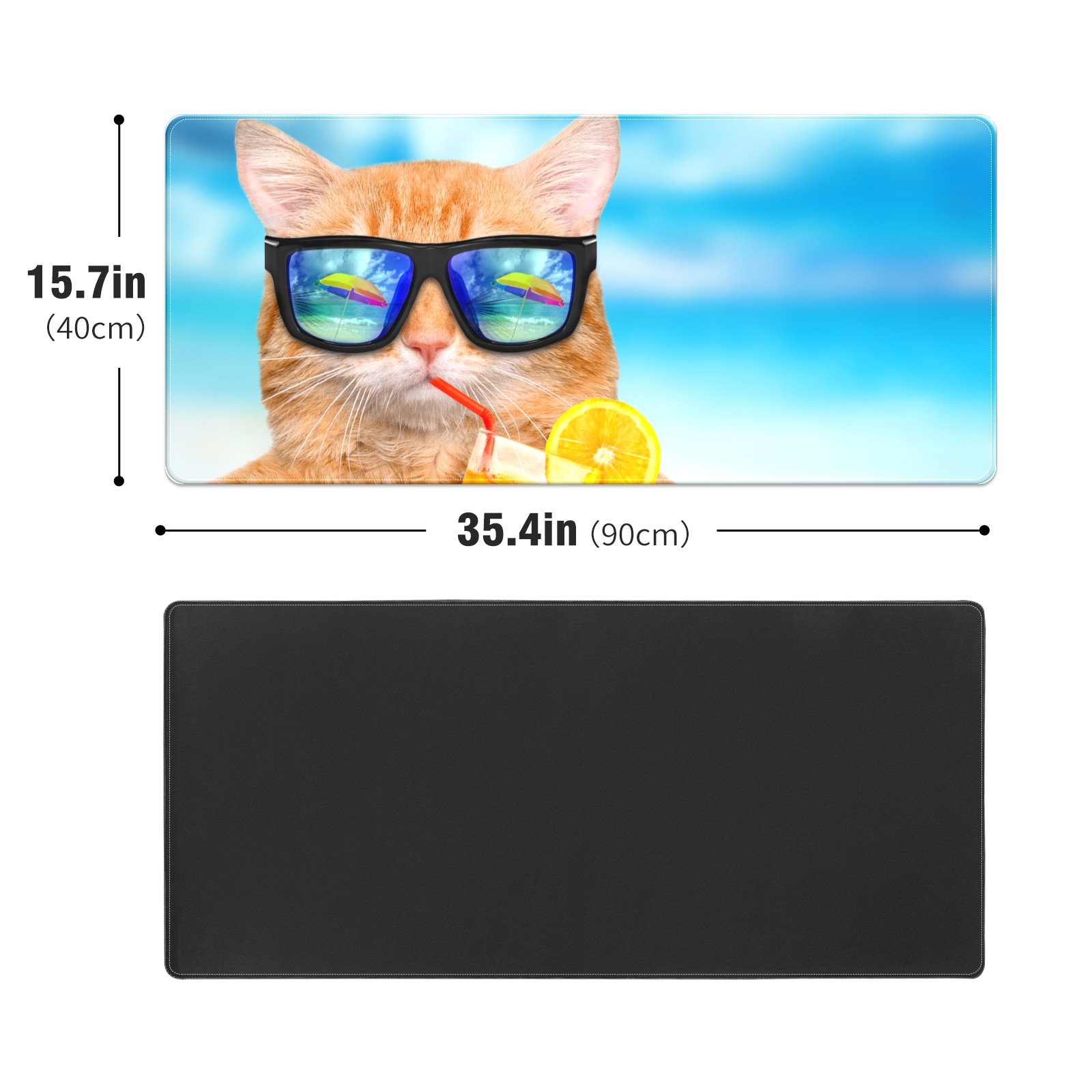 Large Mouse Pad for Desktop, Cute Desk Mat Pad Protector for Work & Gaming, Aesthetic Pretty Anti-Slip Laptop Blotter Cover for Office School Home Supplies, Summer Cat , 35.4inx15.7in