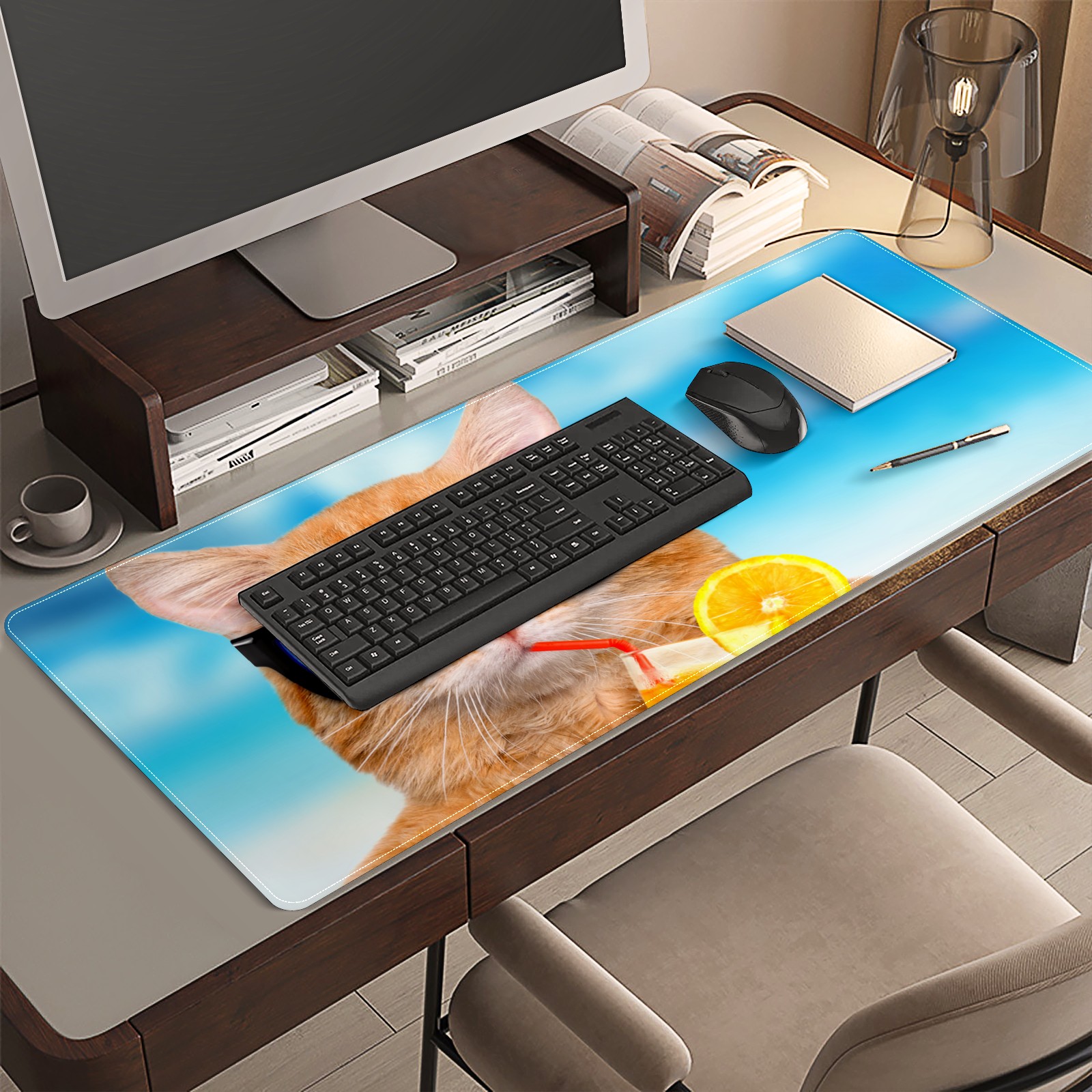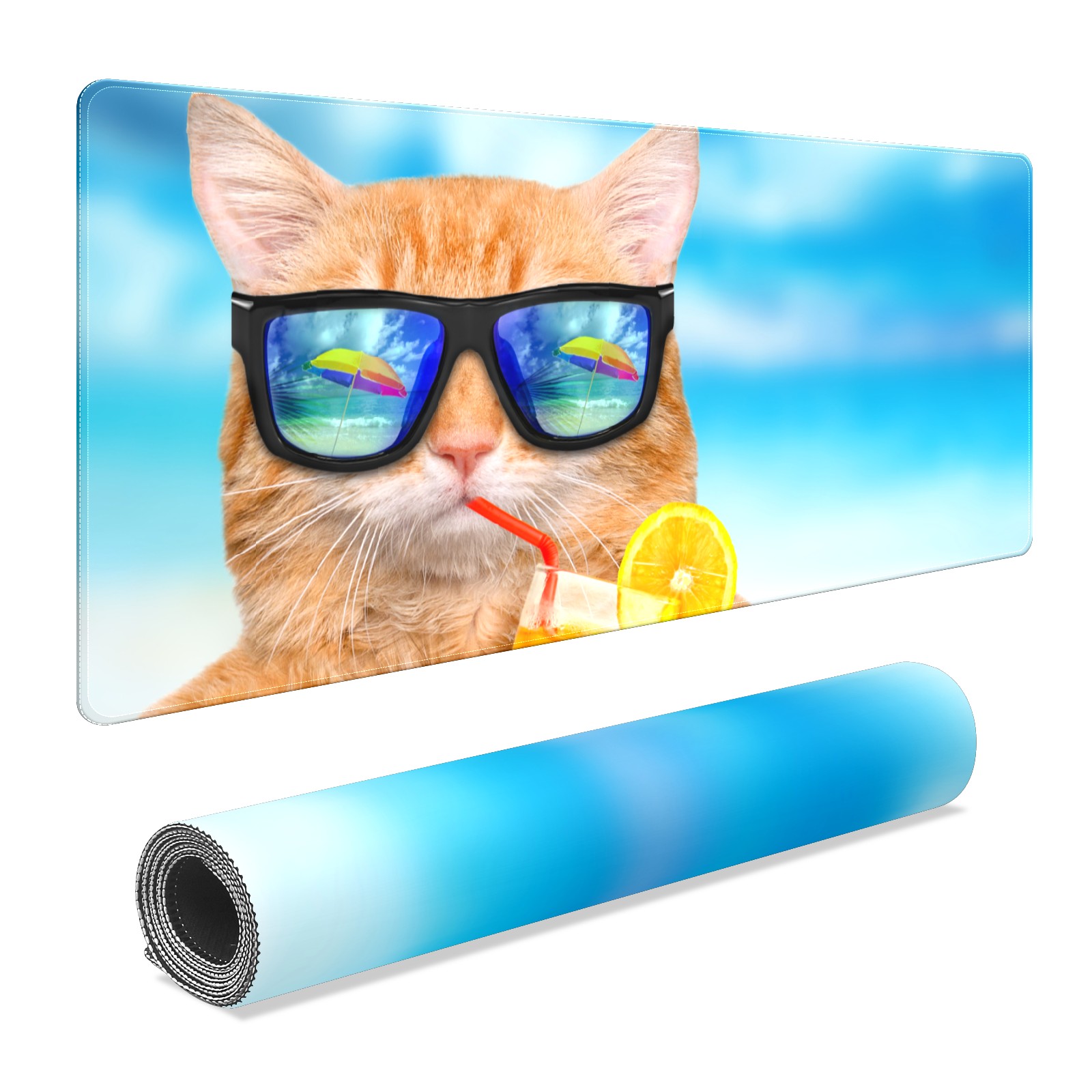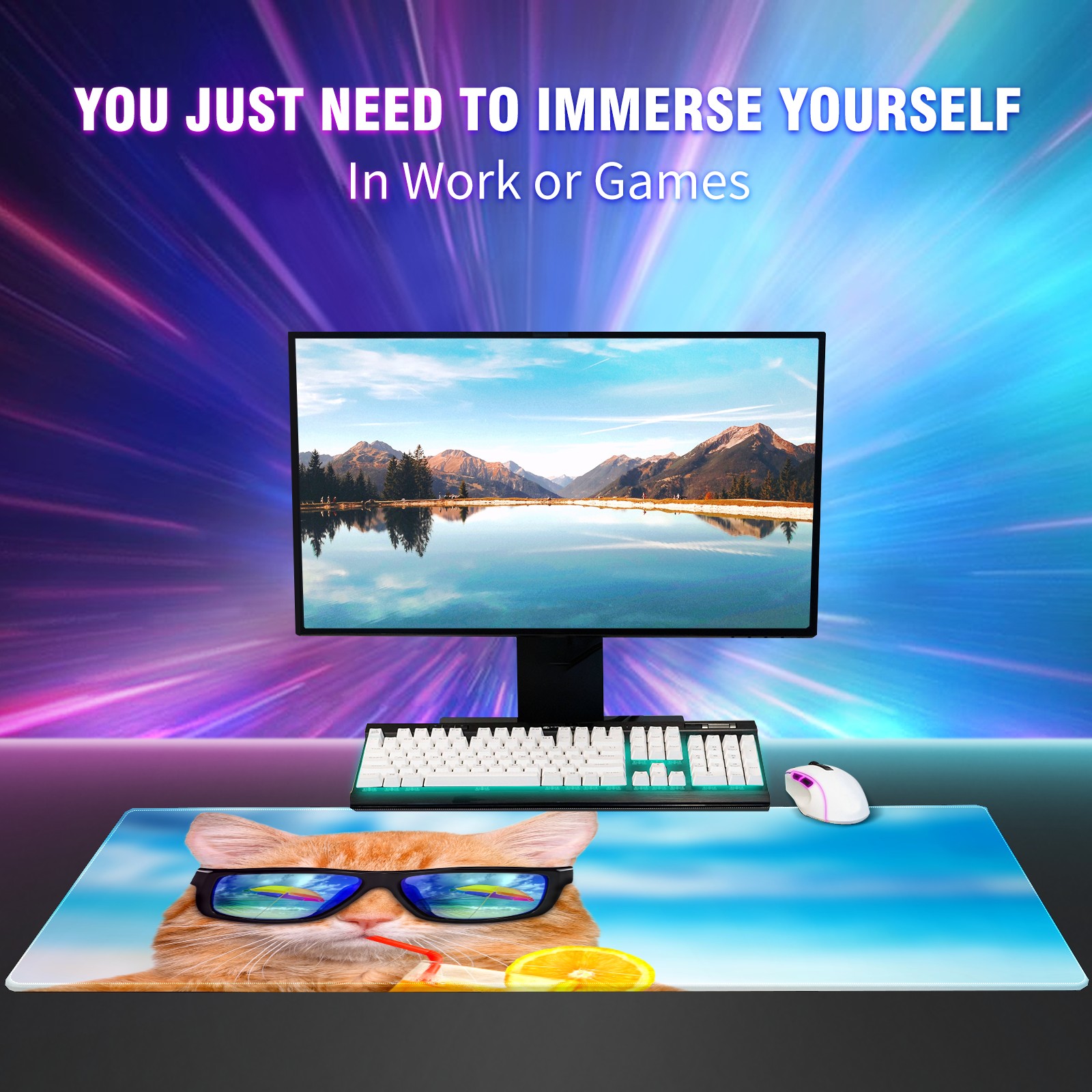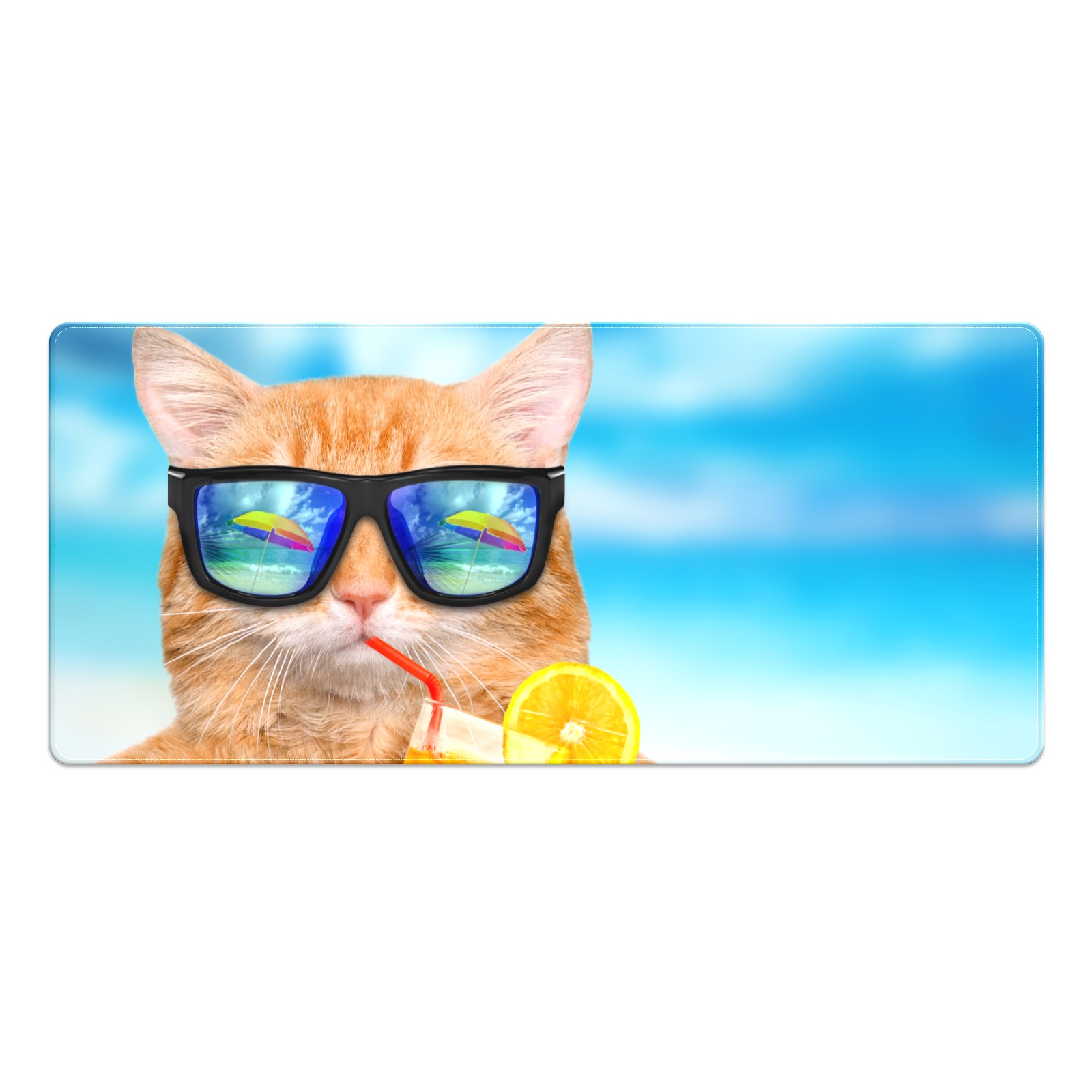 Large Mouse Pad for Desktop, Cute Desk Mat Pad Protector for Work & Gaming, Aesthetic Pretty Anti-Slip Laptop Blotter Cover for Office School Home Supplies, Summer Cat , 35.4inx15.7in