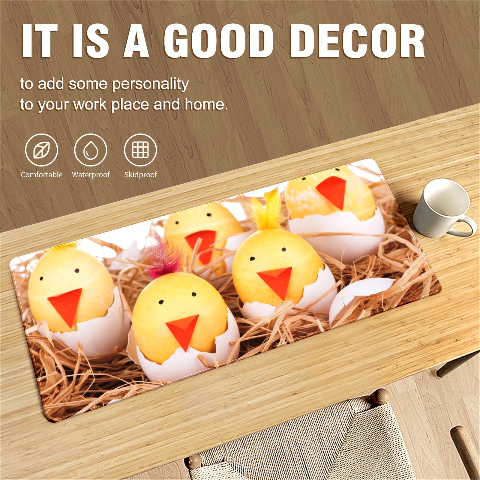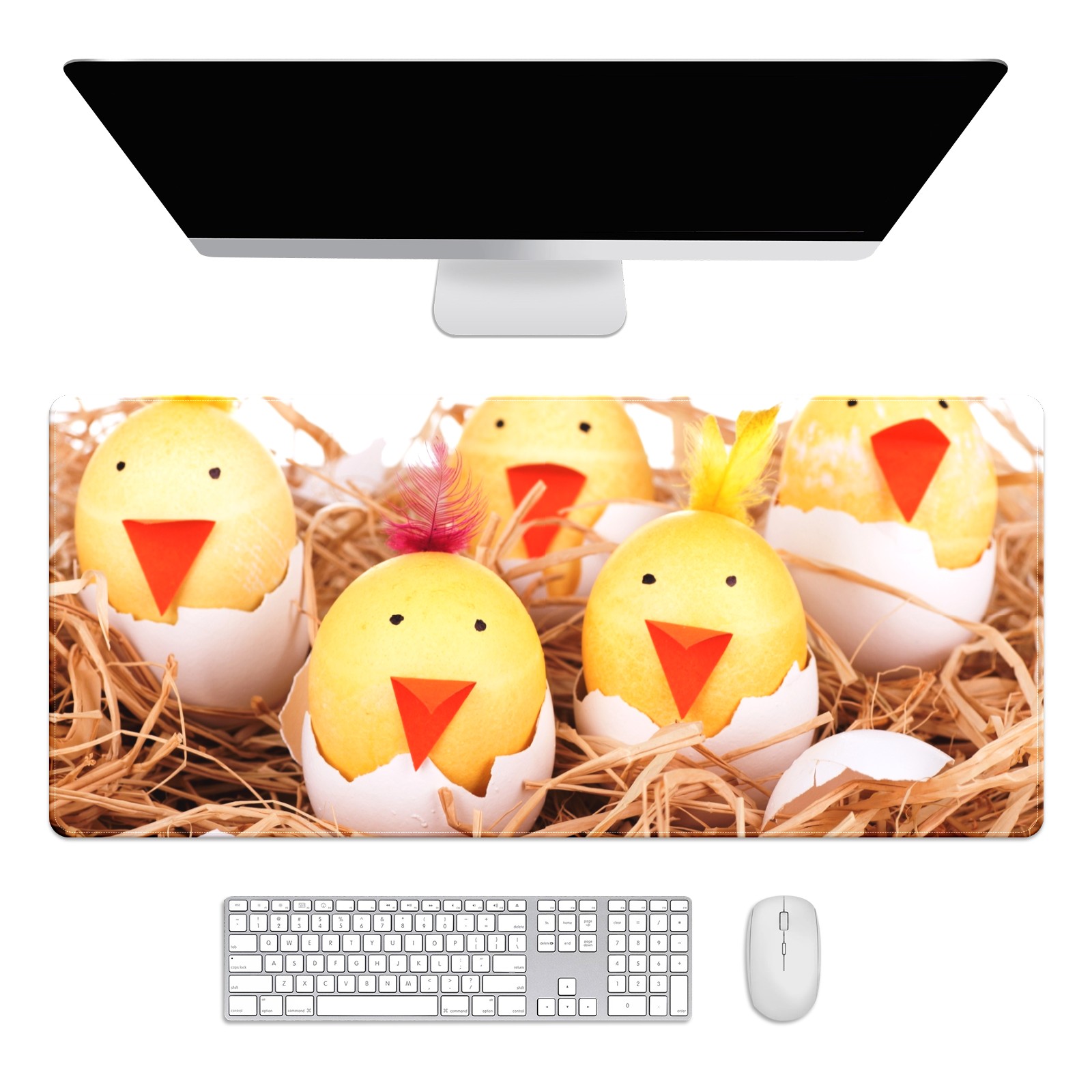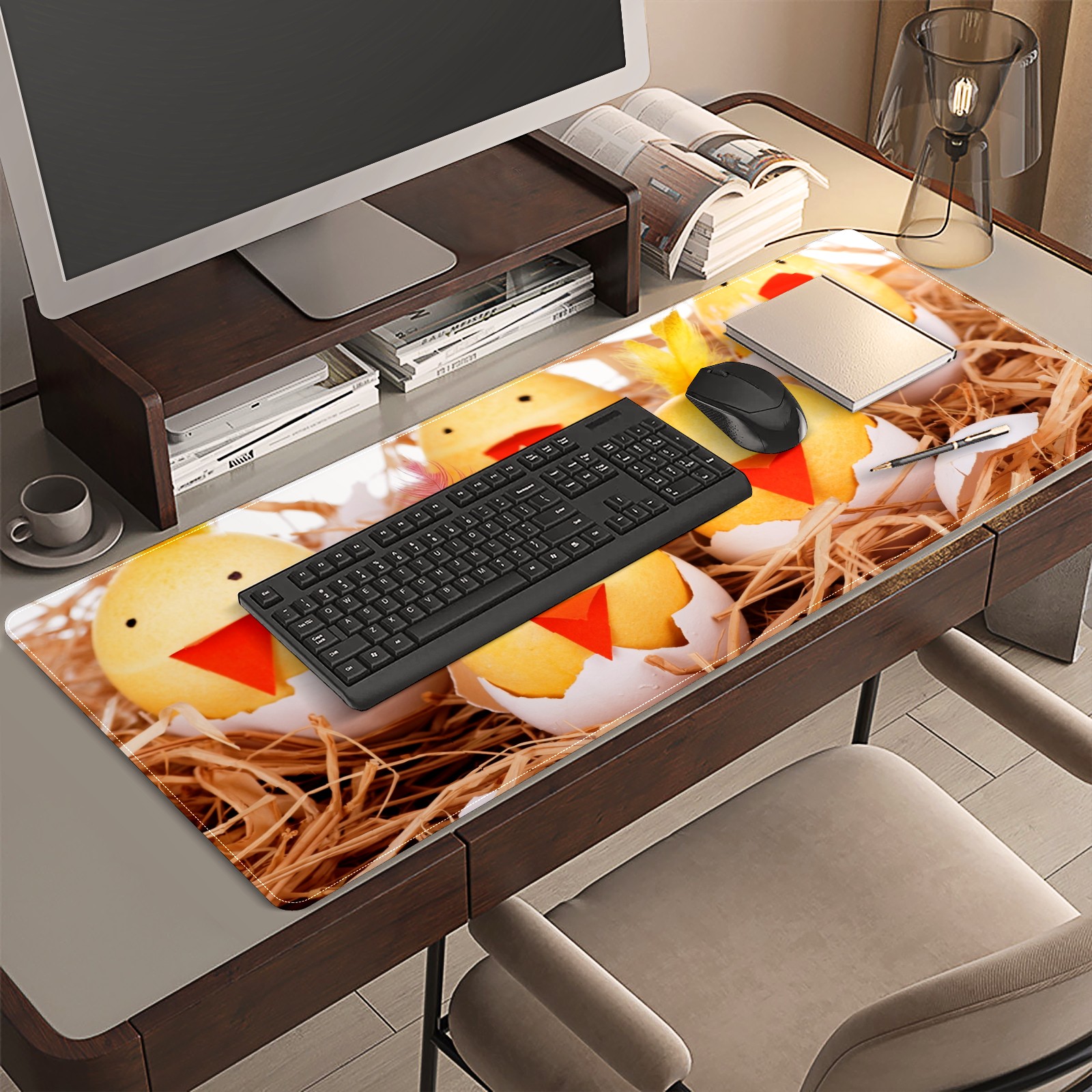 Large Mouse Pad for Desktop, Cute Desk Mat Pad Protector for Work & Gaming, Aesthetic Pretty Anti-Slip Laptop Blotter Cover for Office School Home Supplies, Cute Chicken , 35.4inx15.7in