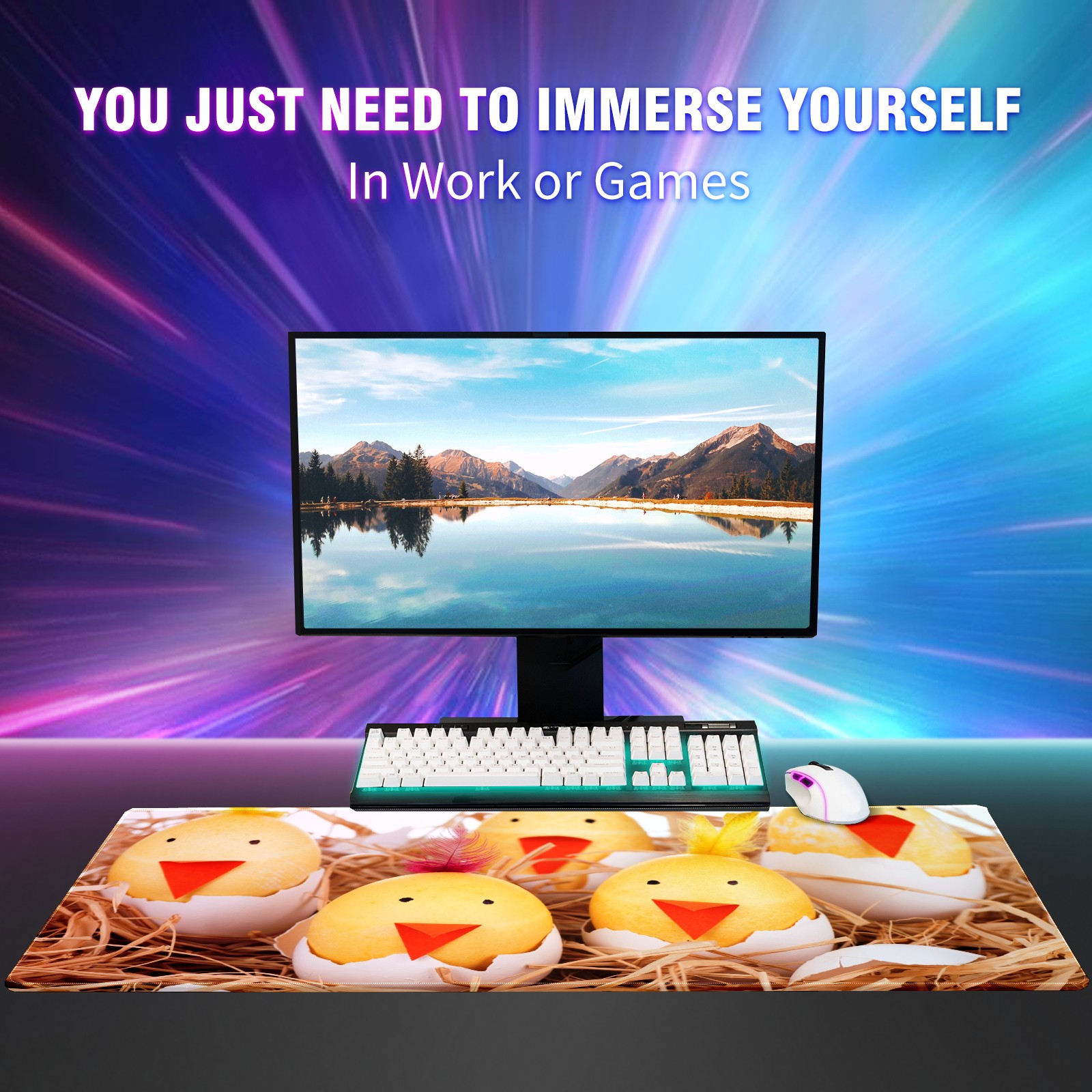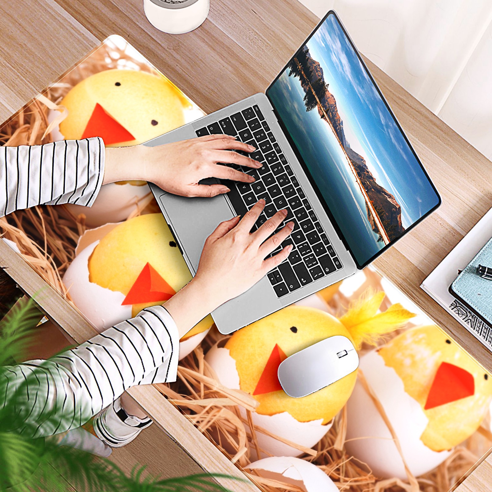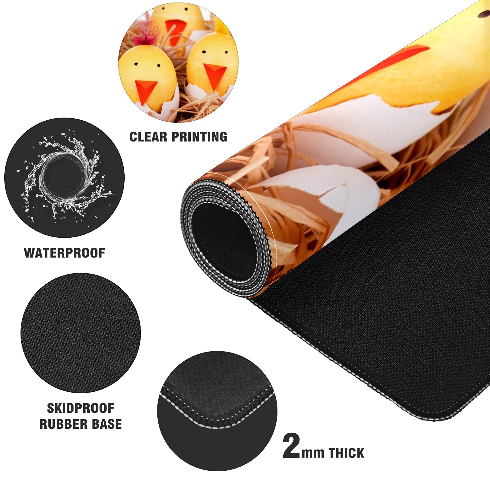 Large Mouse Pad for Desktop, Cute Desk Mat Pad Protector for Work & Gaming, Aesthetic Pretty Anti-Slip Laptop Blotter Cover for Office School Home Supplies, Cute Chicken , 35.4inx15.7in