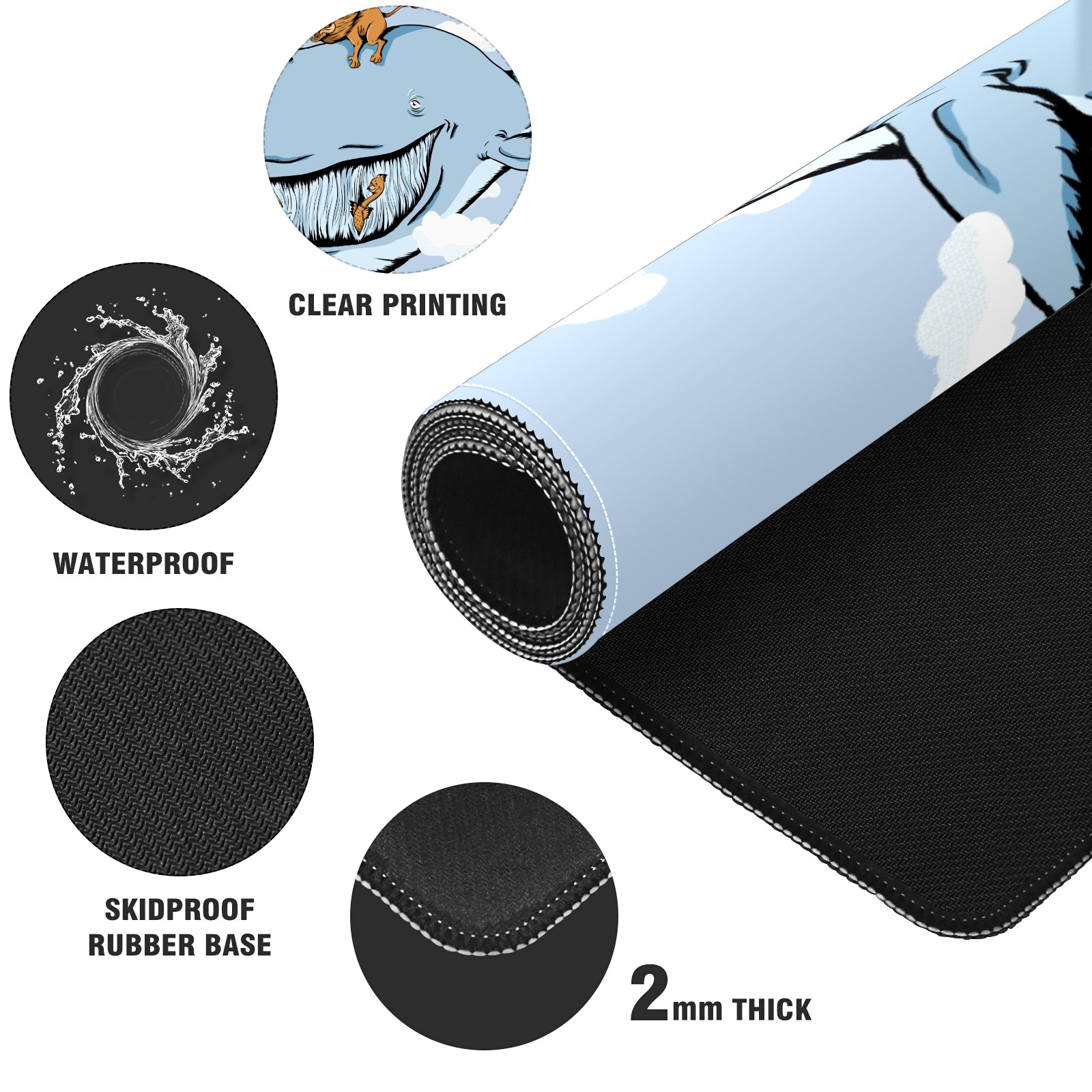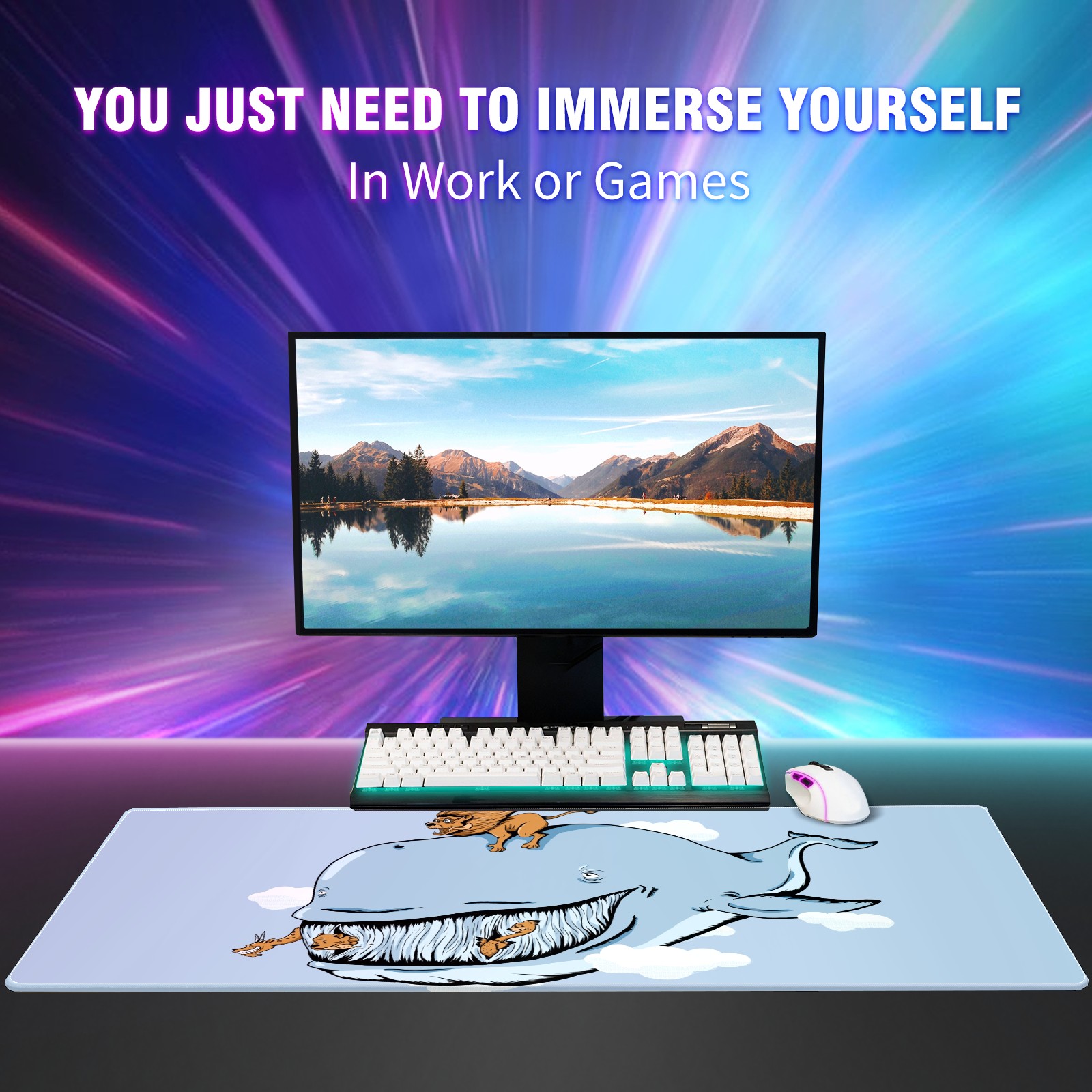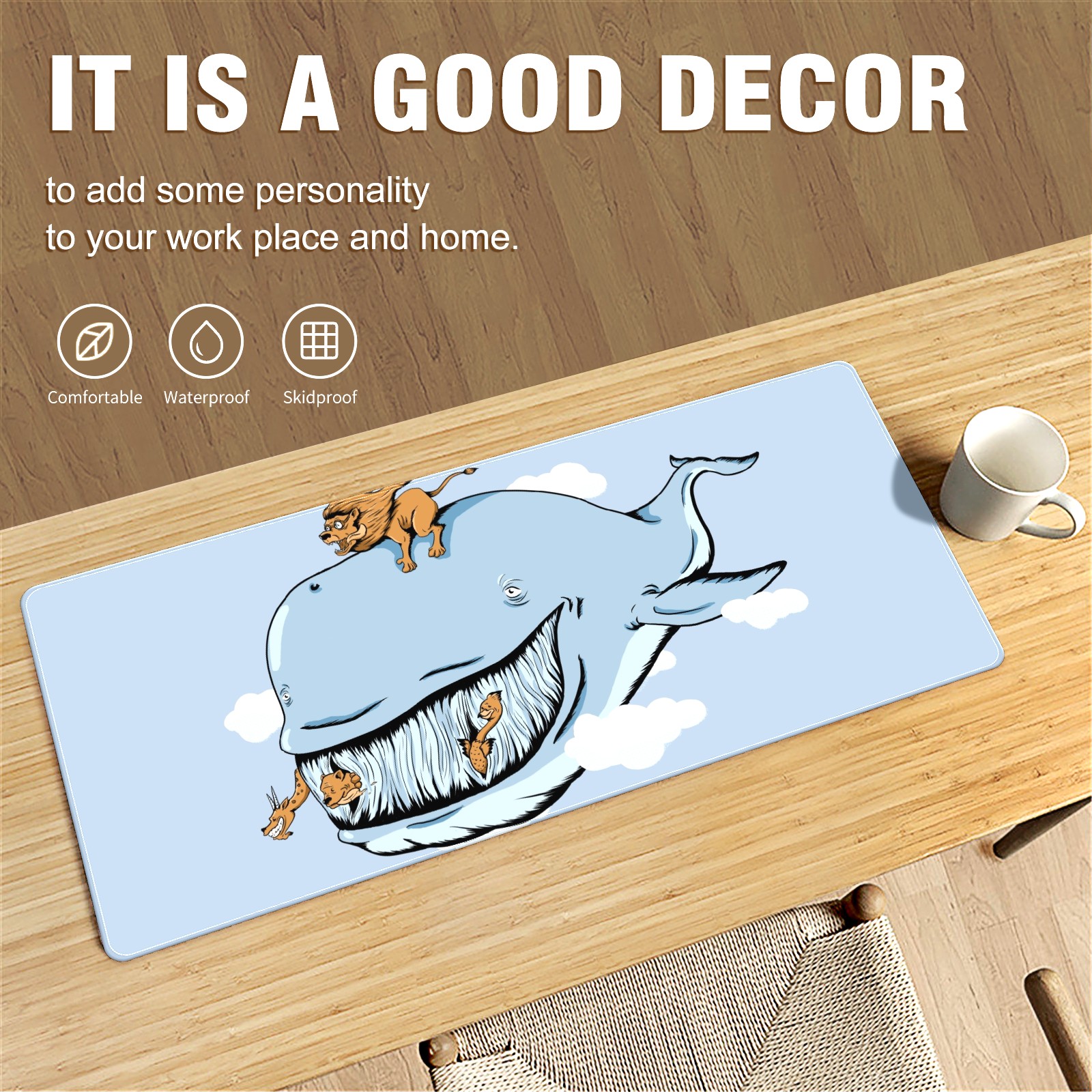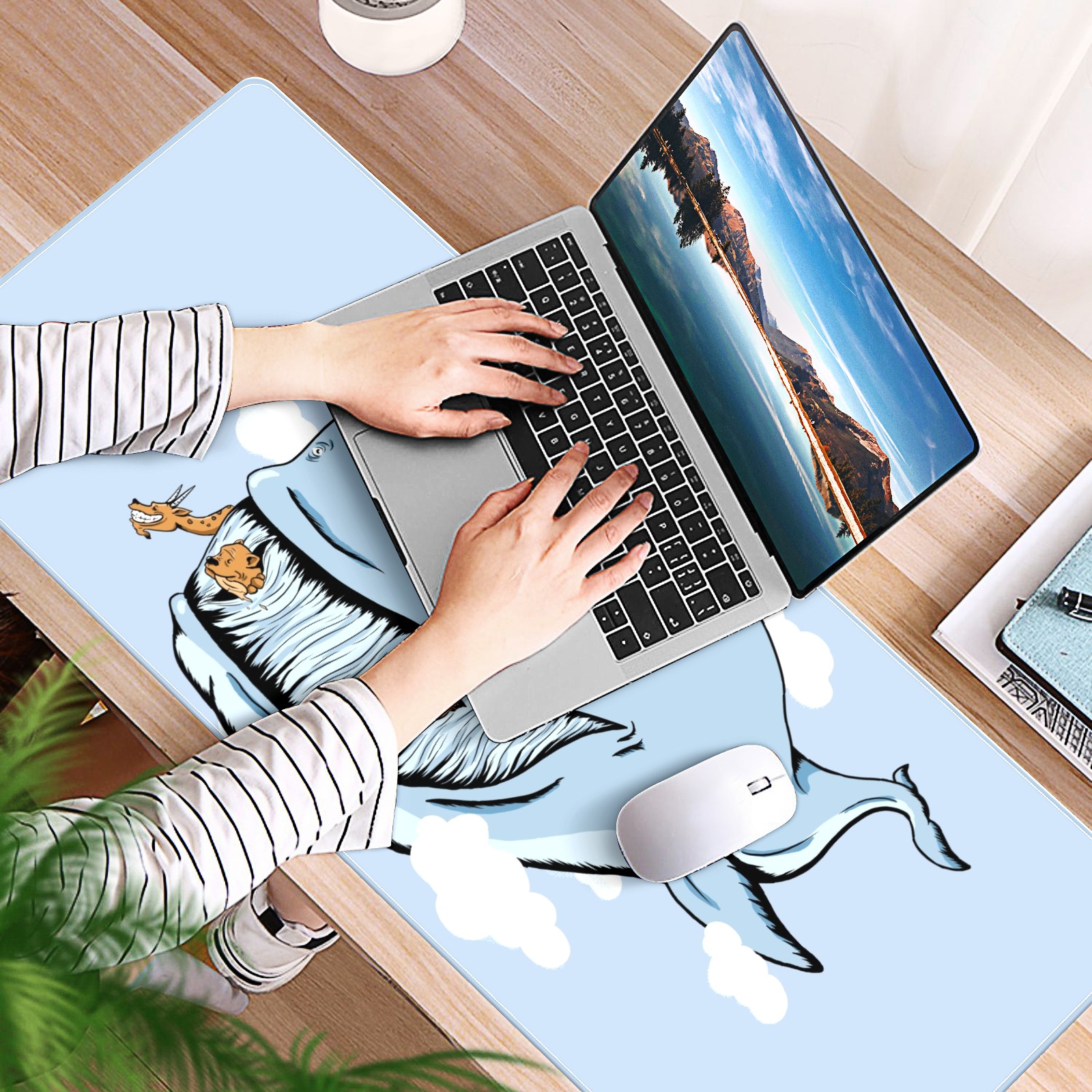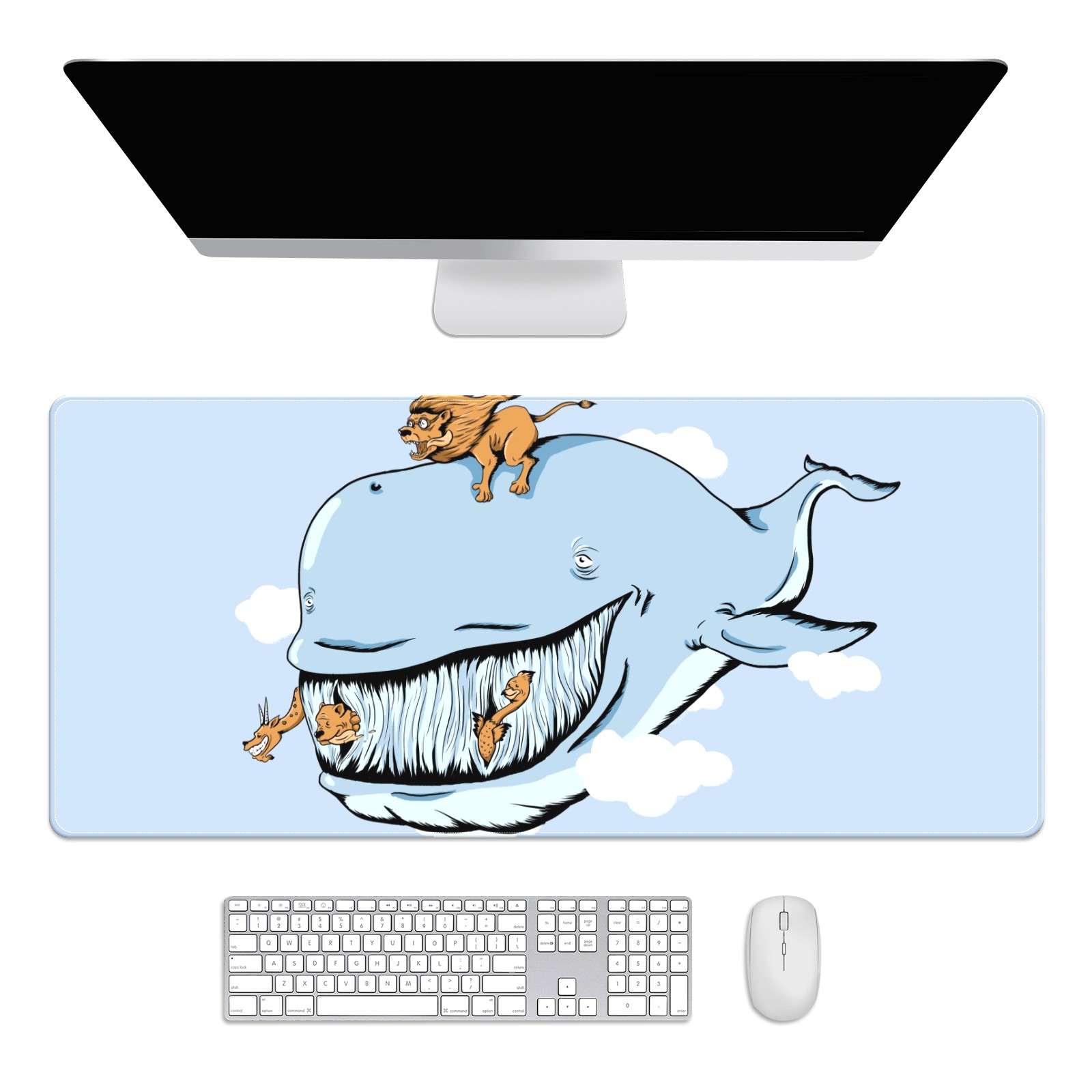 Large Mouse Pad for Desktop, Cute Desk Mat Pad Protector for Work & Gaming, Aesthetic Pretty Anti-Slip Laptop Blotter Cover for Office School Home Supplies, Cartoon Whale , 35.4inx15.7in