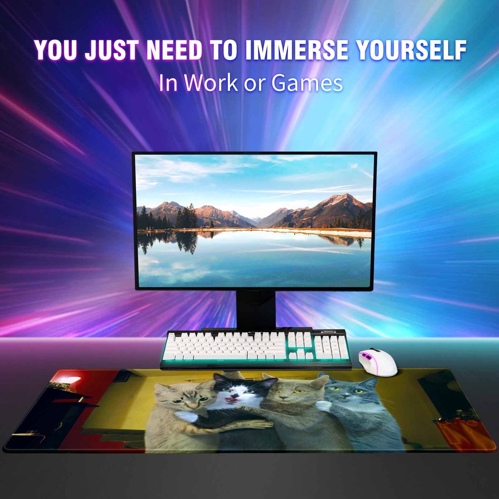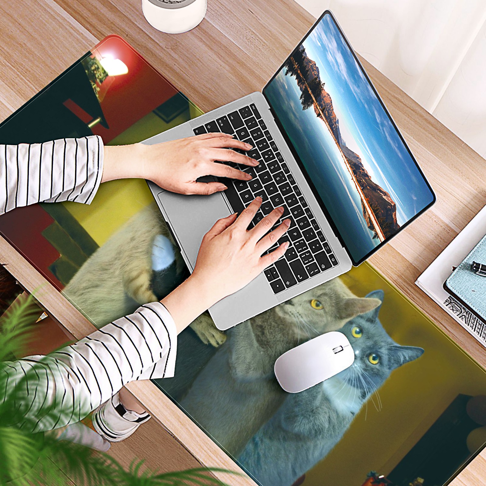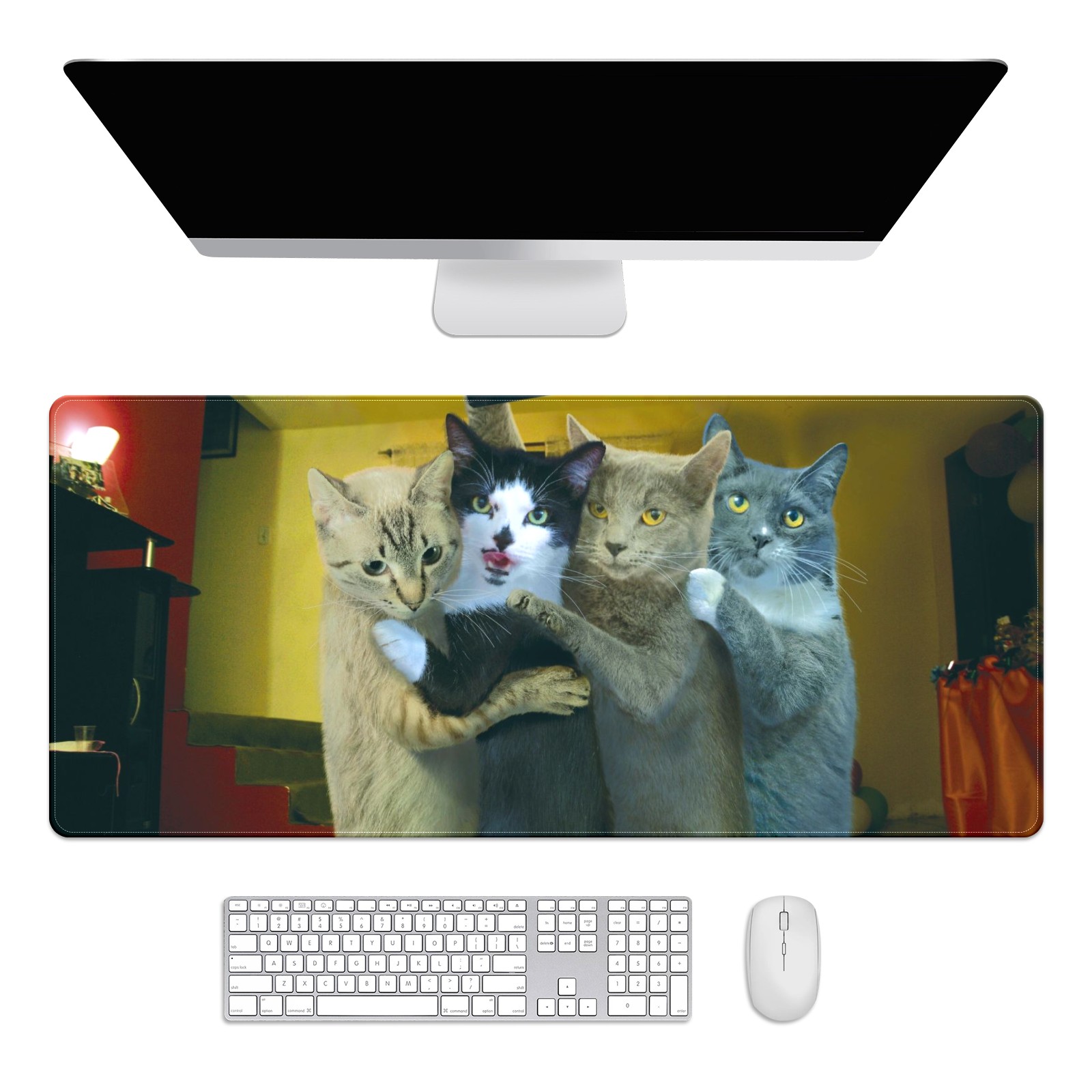 Large Mouse Pad for Desktop, Cute Desk Mat Pad Protector for Work & Gaming, Aesthetic Pretty Anti-Slip Laptop Blotter Cover for Office School Home Supplies, Pet Embracing , 35.4inx15.7in