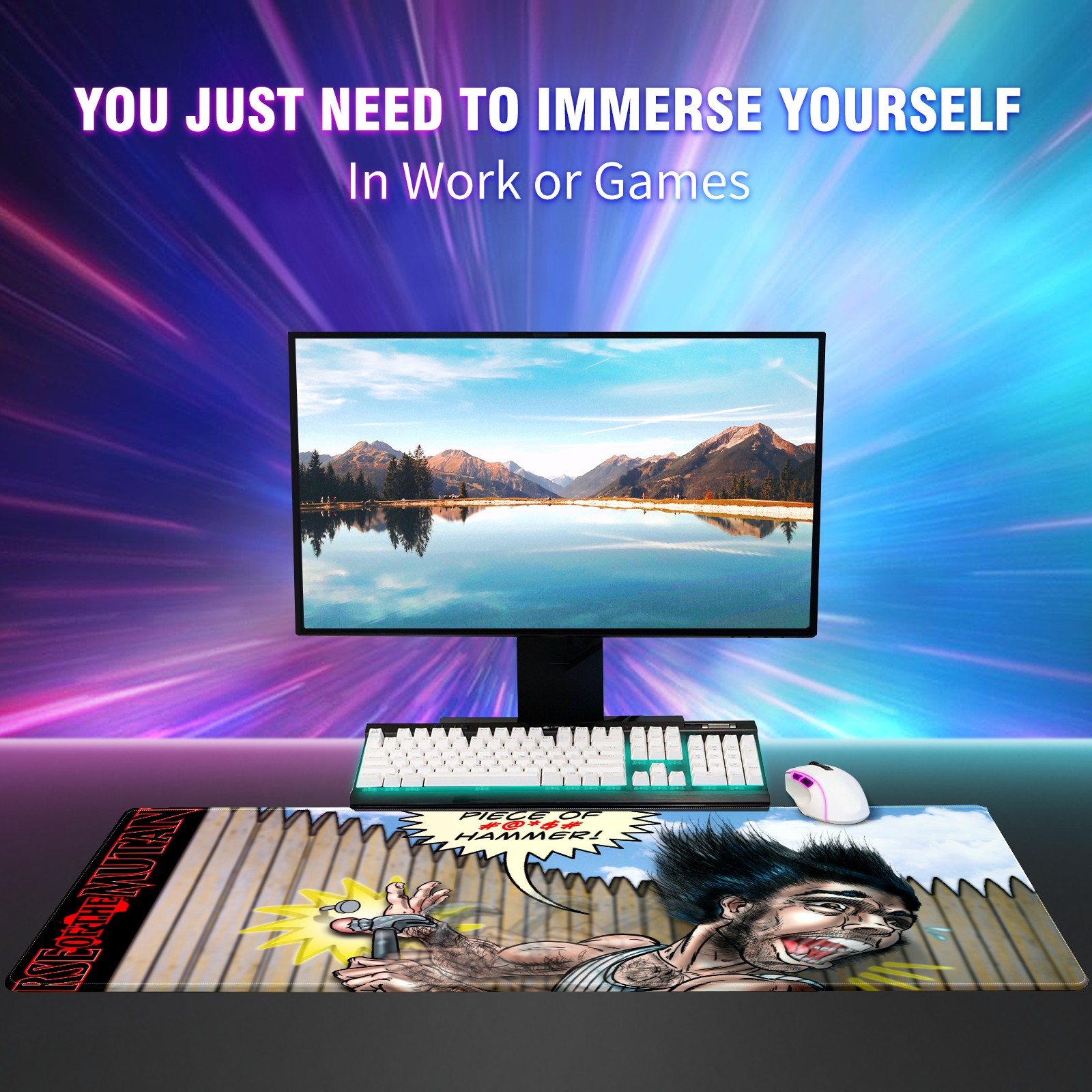 Large Mouse Pad for Desktop, Cute Desk Mat Pad Protector for Work & Gaming, Aesthetic Pretty Anti-Slip Laptop Blotter Cover for Office School Home Supplies, Humor Man , 35.4inx15.7in
