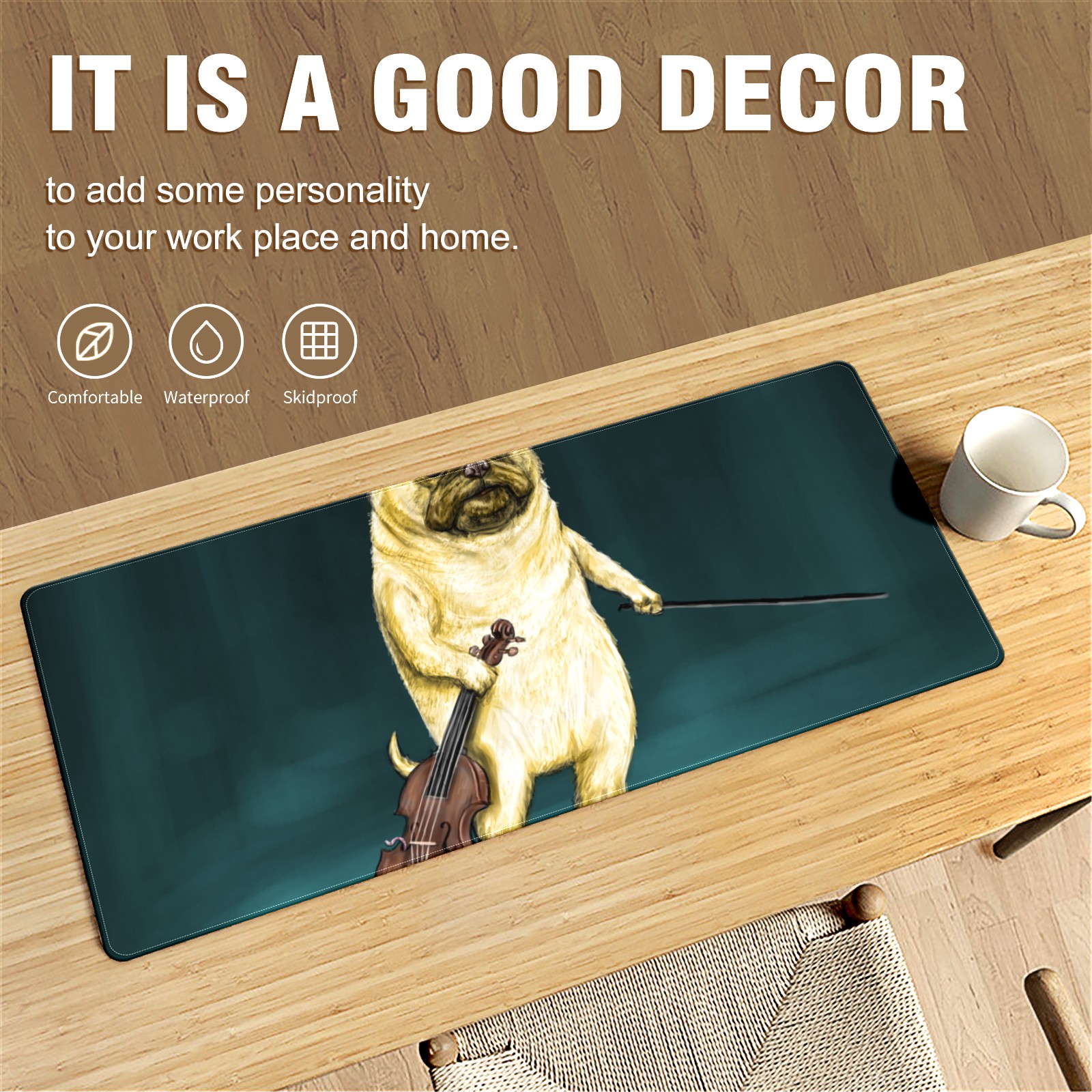 • <p>This 35.4” × 15.7” extended desk mat offers ample space for your keyboard, mouse and essentials, working as a smooth work/writing pad while protecting your desktop from scratches.</p><p>With stylish artistic patterns, it adds personality to your home office, study or gaming setup. The high-density woven surface ensures precise, smooth mouse tracking for work and gaming.</p><p>Featuring an anti-slip natural rubber base for firm grip and stability, the mat is soft, elastic and odorless. Reinforced stitched edges prevent fraying and curling for long-lasting durability.</p>