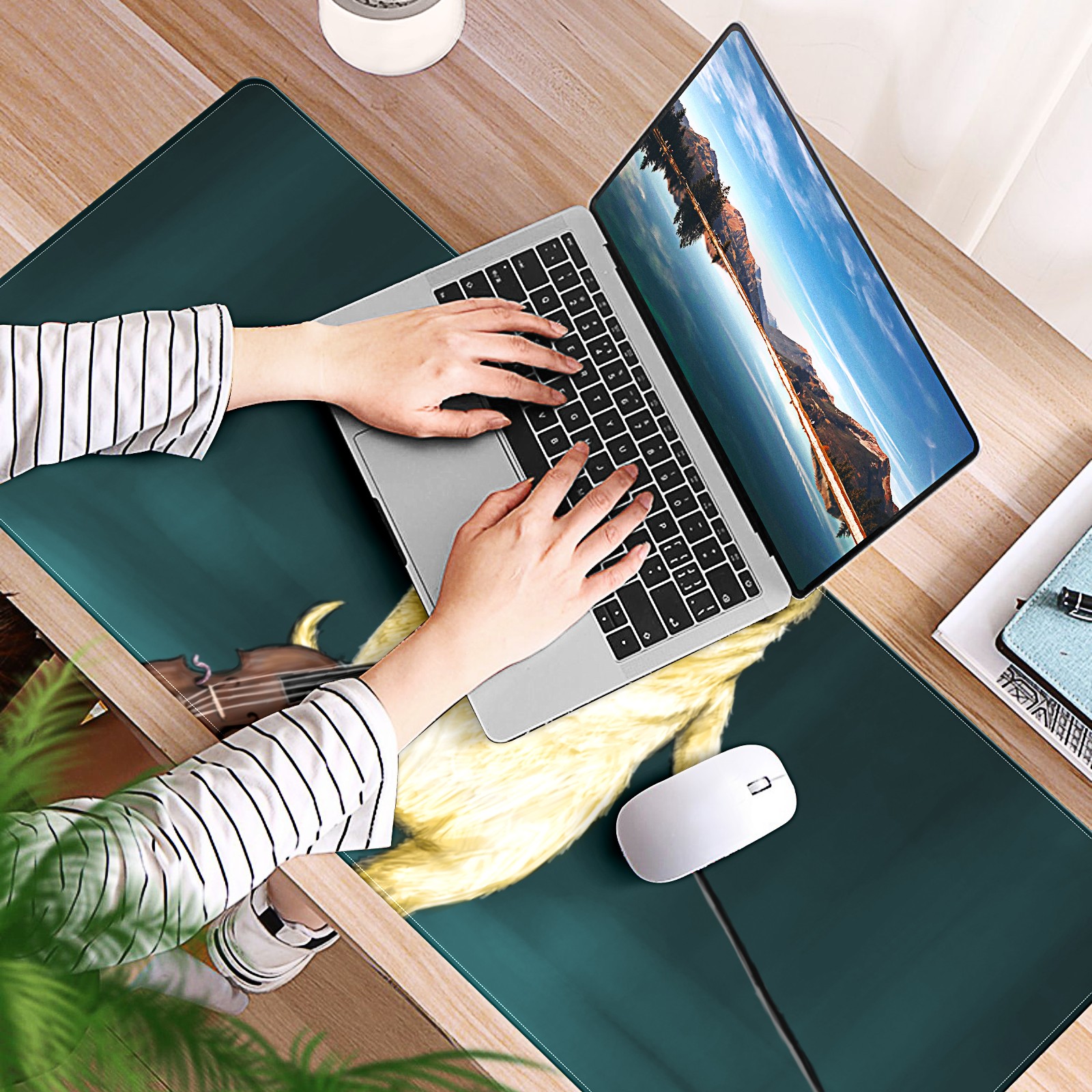 Large Mouse Pad for Desktop, Cute Desk Mat Pad Protector for Work & Gaming, Aesthetic Pretty Anti-Slip Laptop Blotter Cover for Office School Home Supplies, Pooch Solo , 35.4inx15.7in