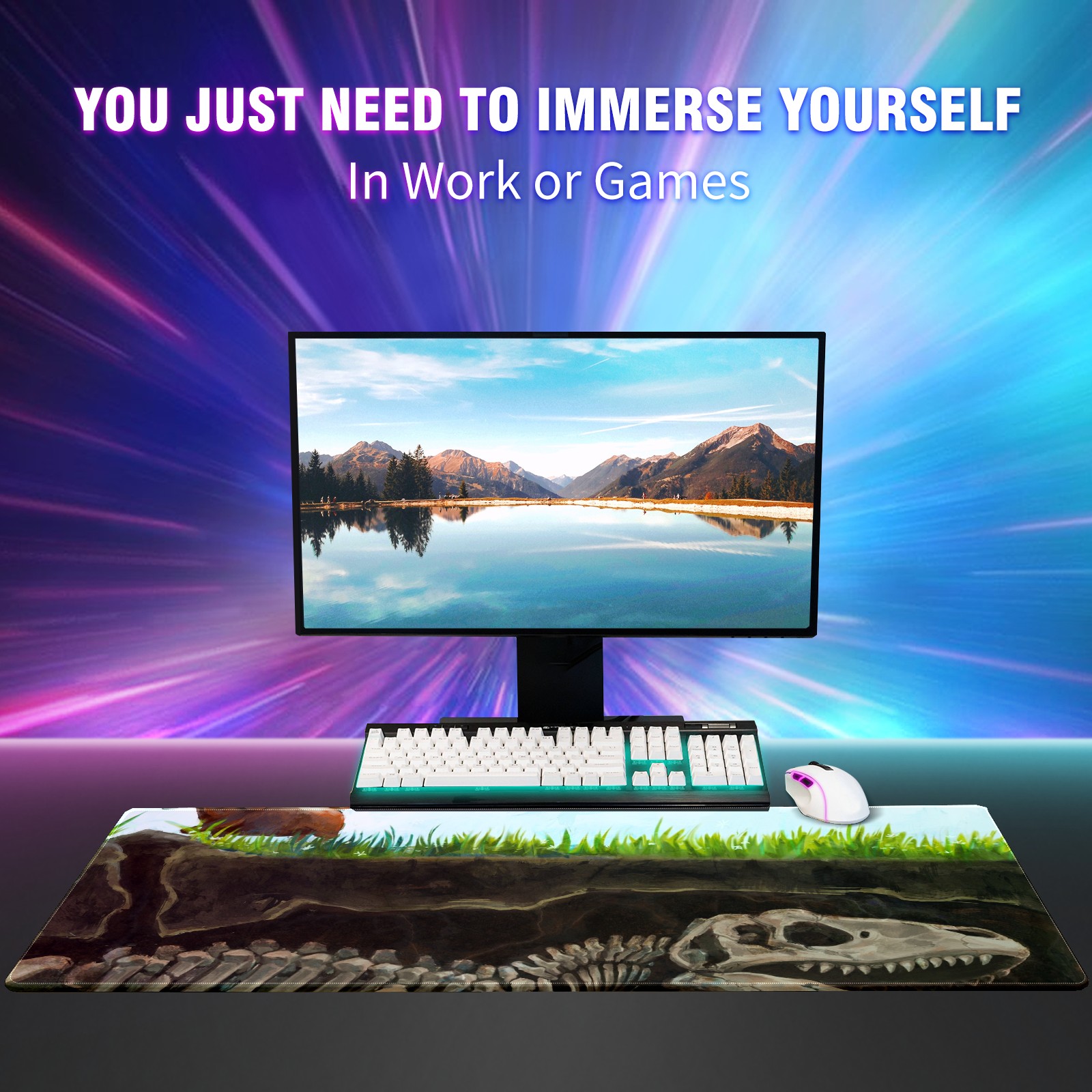 Large Mouse Pad for Desktop, Cute Desk Mat Pad Protector for Work & Gaming, Aesthetic Pretty Anti-Slip Laptop Blotter Cover for Office School Home Supplies, Dinosaur Bones , 35.4inx15.7in