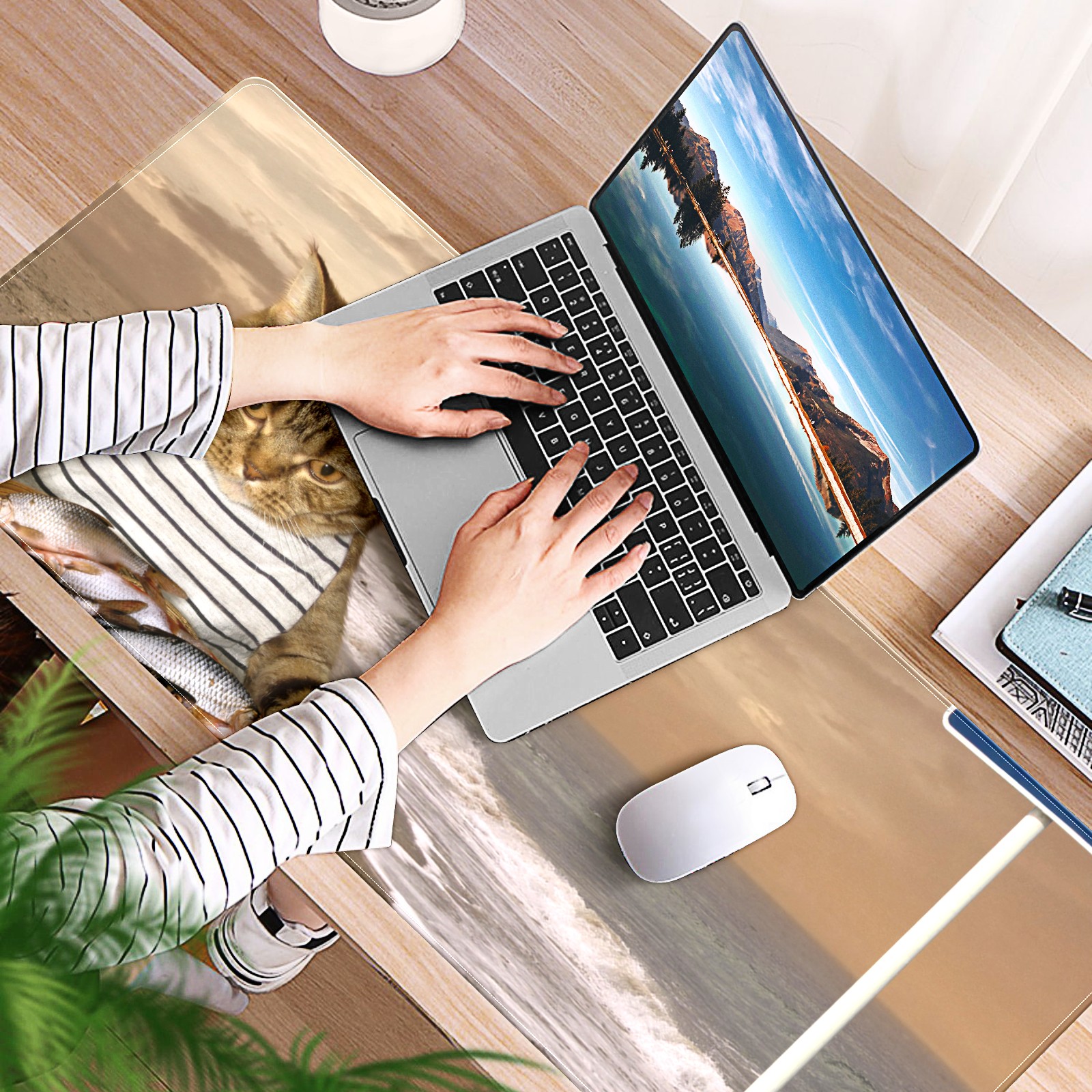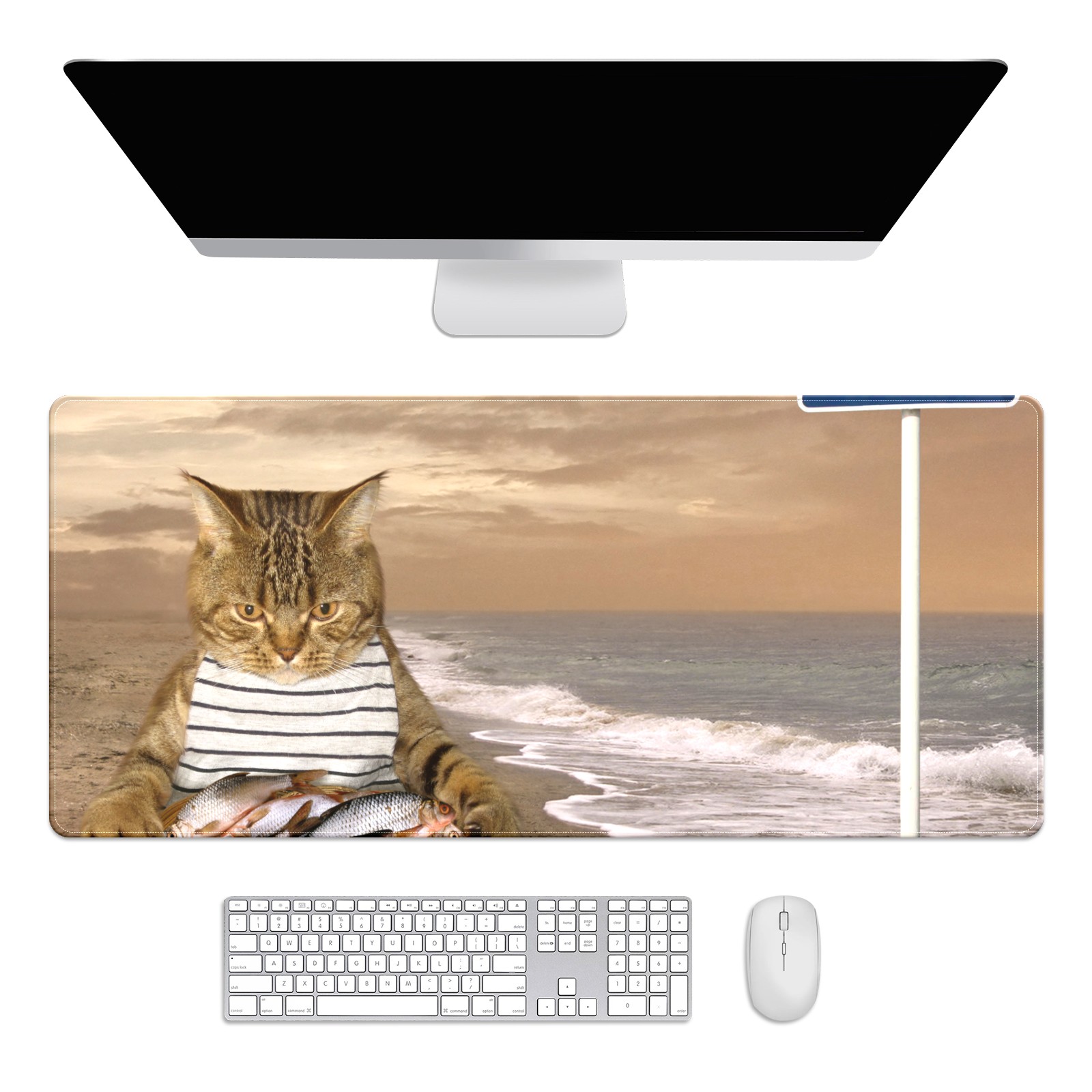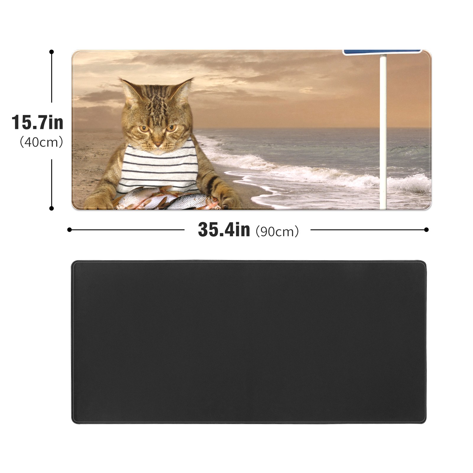 Large Mouse Pad for Desktop, Cute Desk Mat Pad Protector for Work & Gaming, Aesthetic Pretty Anti-Slip Laptop Blotter Cover for Office School Home Supplies, Eating Cat , 35.4inx15.7in