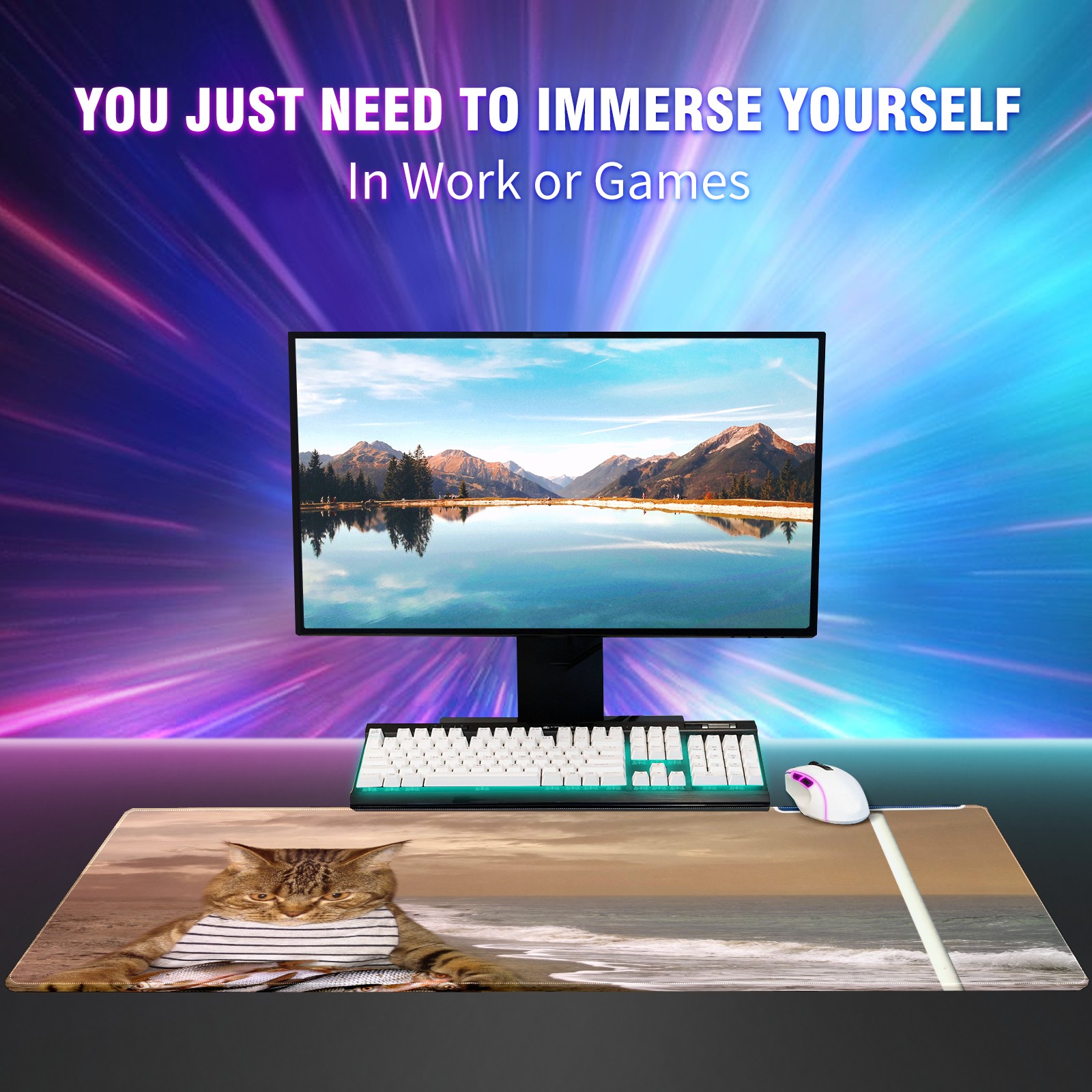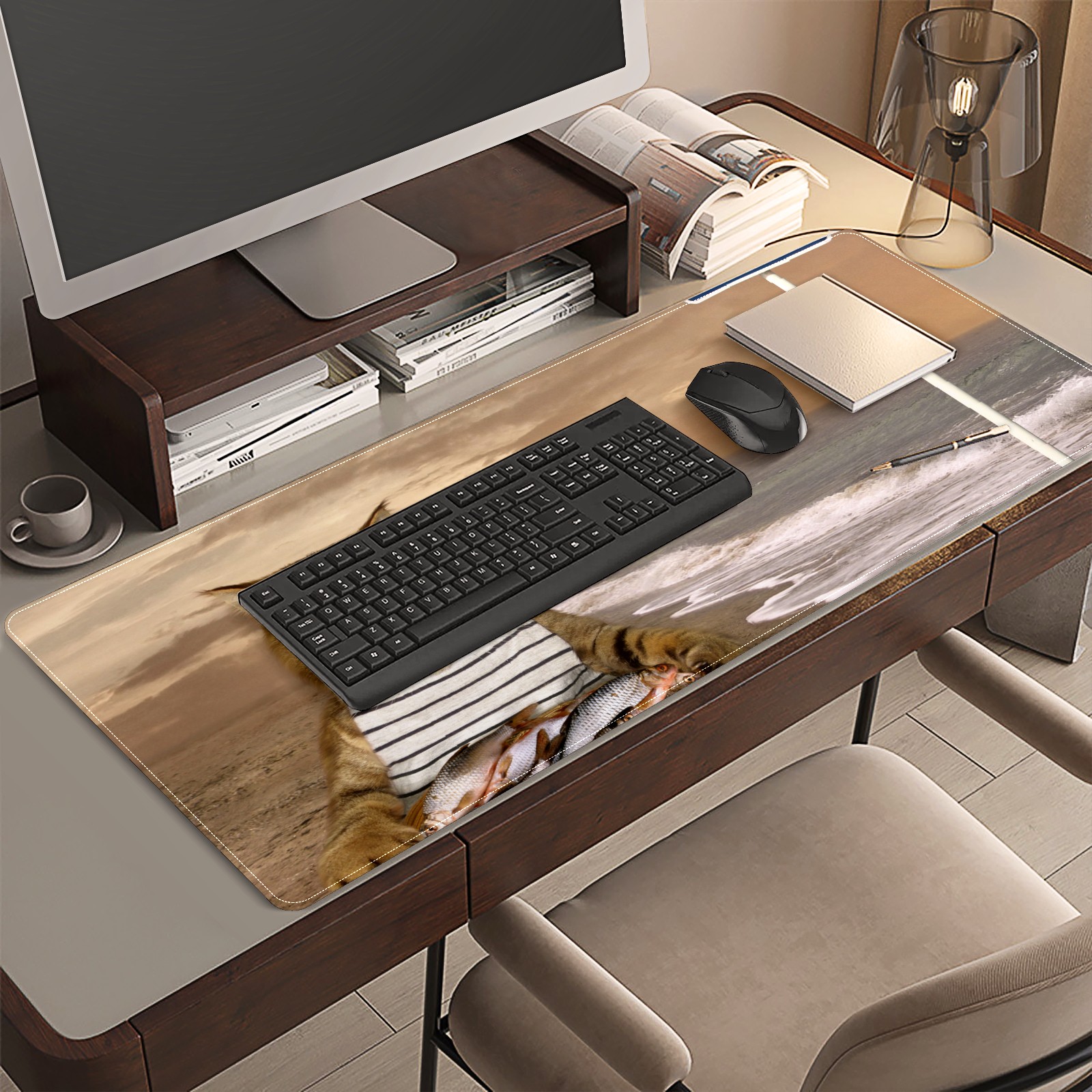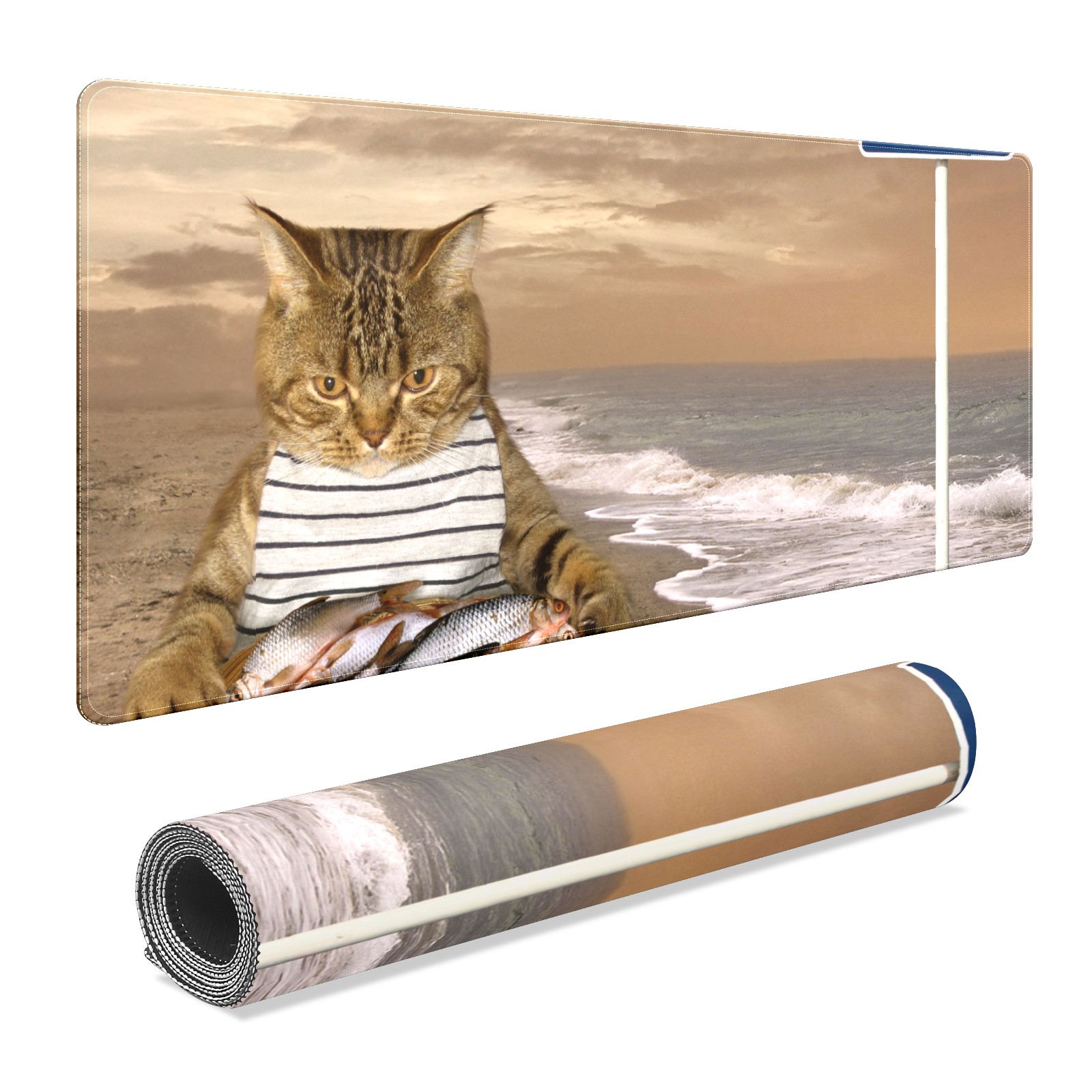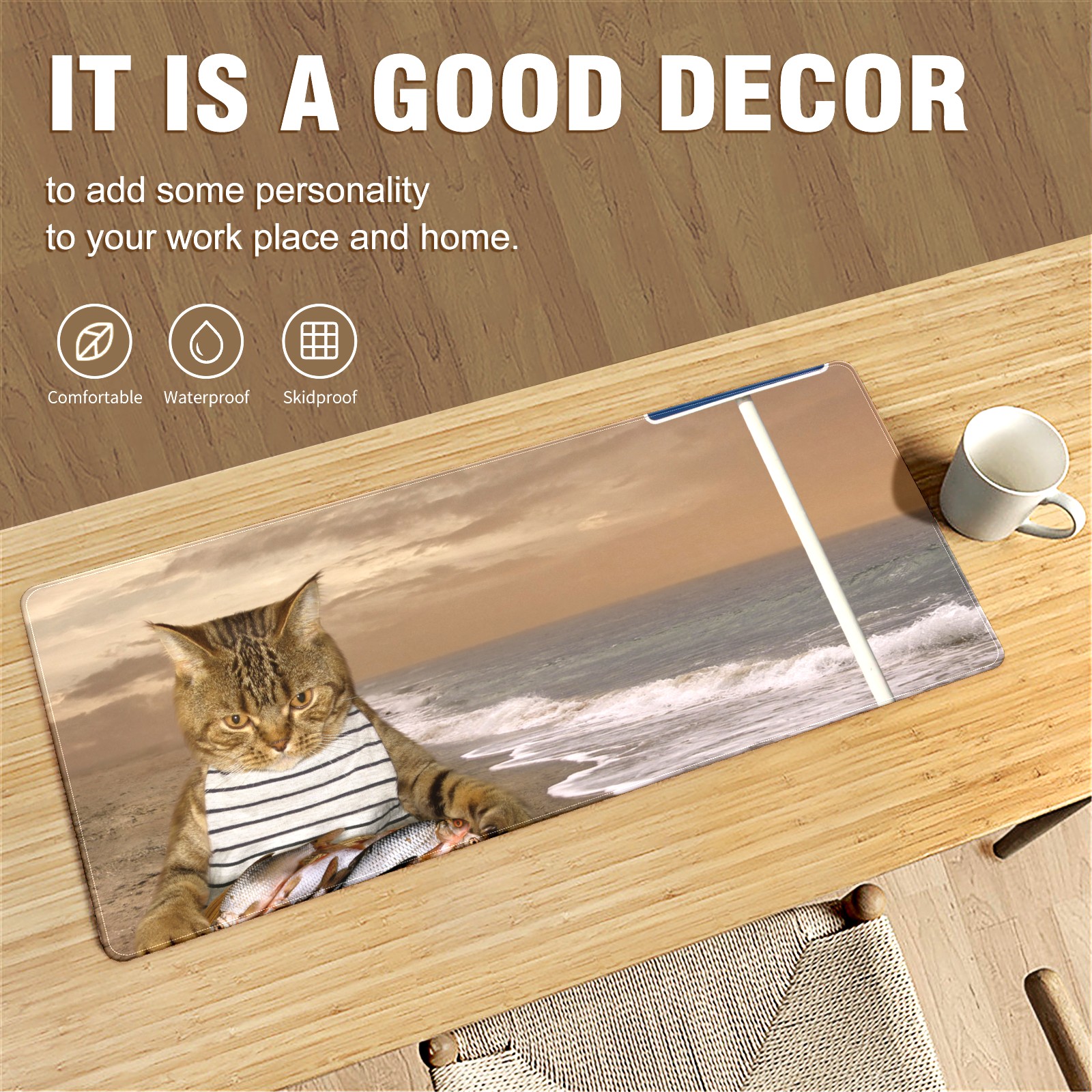 Large Mouse Pad for Desktop, Cute Desk Mat Pad Protector for Work & Gaming, Aesthetic Pretty Anti-Slip Laptop Blotter Cover for Office School Home Supplies, Eating Cat , 35.4inx15.7in