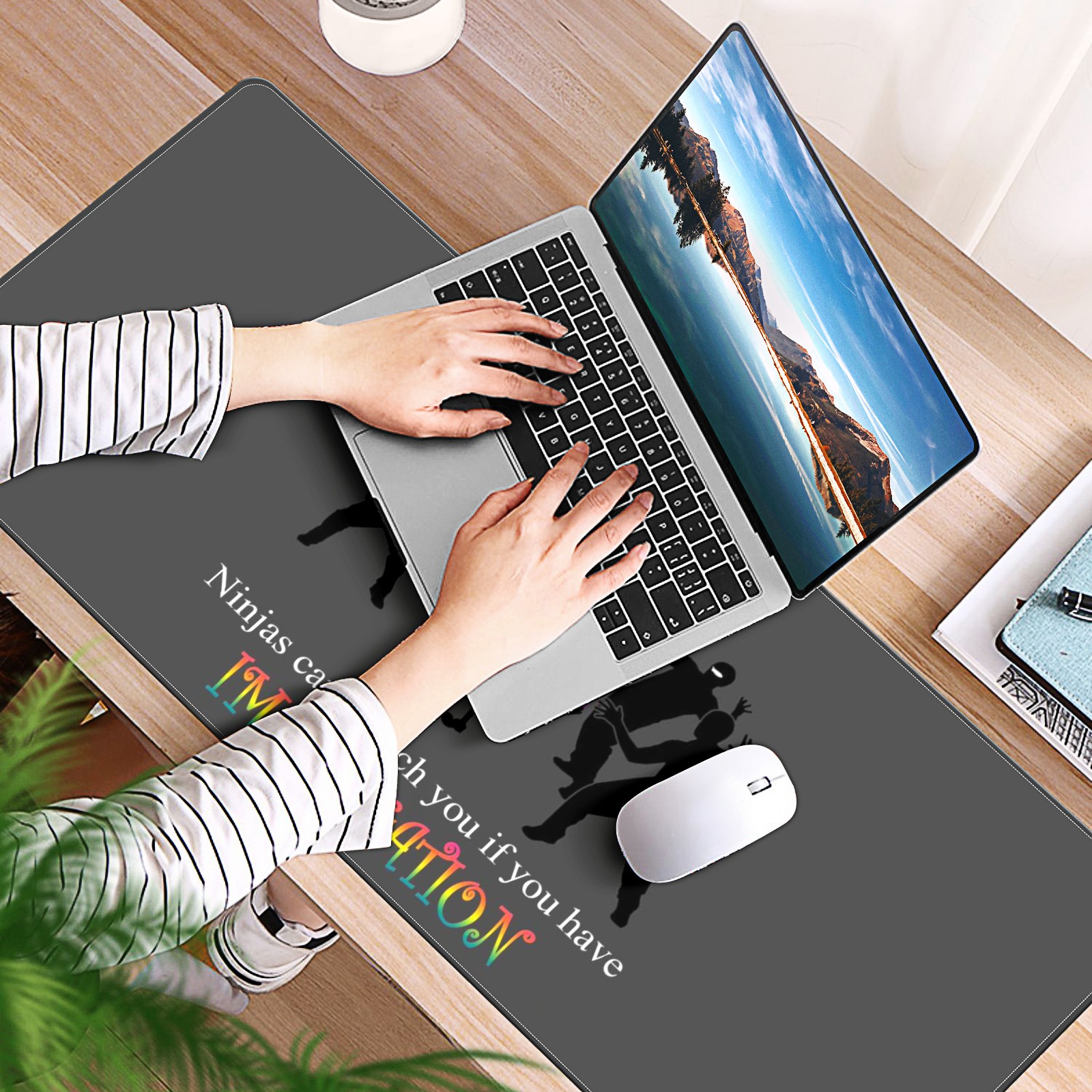 Large Mouse Pad for Desktop, Cute Desk Mat Pad Protector for Work & Gaming, Aesthetic Pretty Anti-Slip Laptop Blotter Cover for Office School Home Supplies, Fun People , 35.4inx15.7in