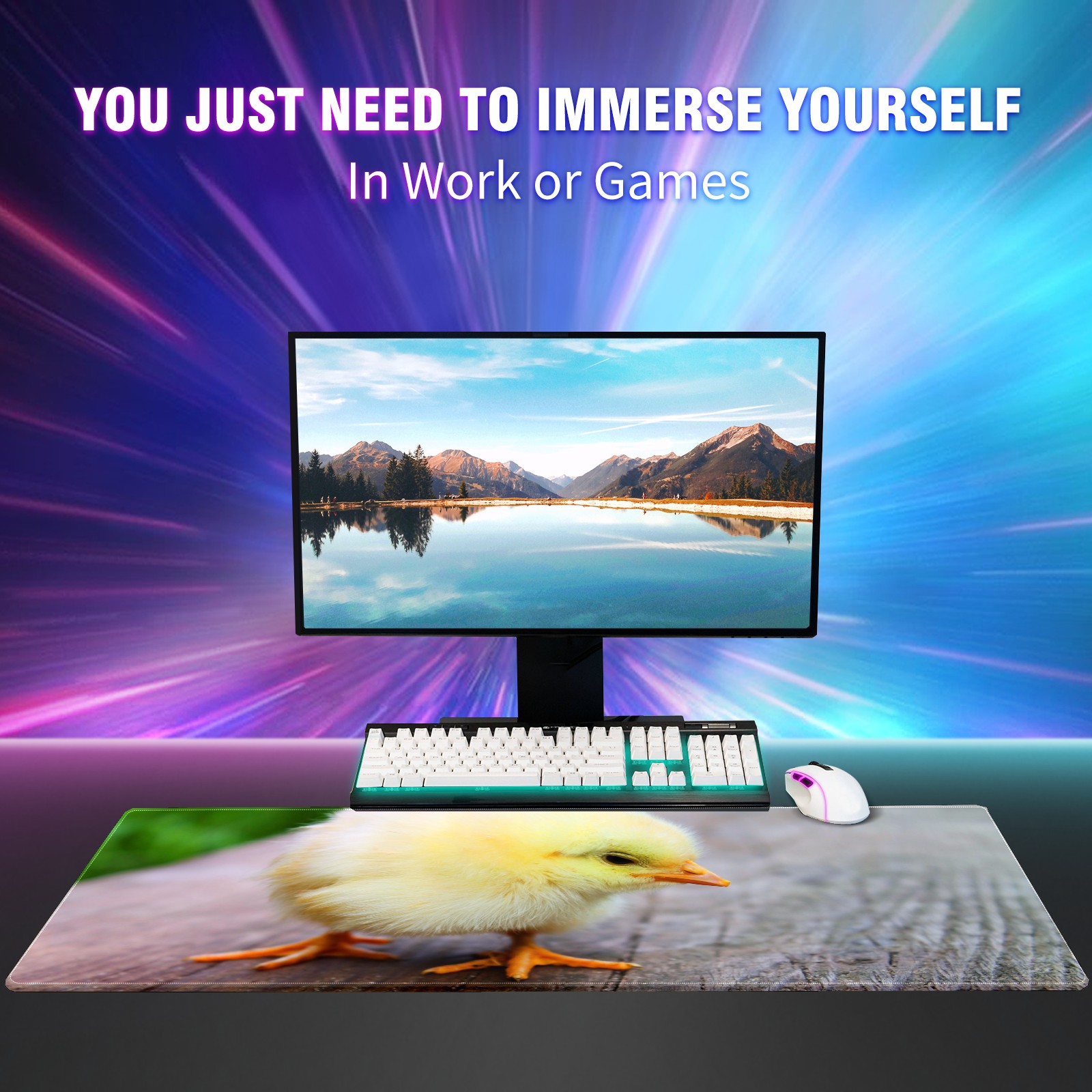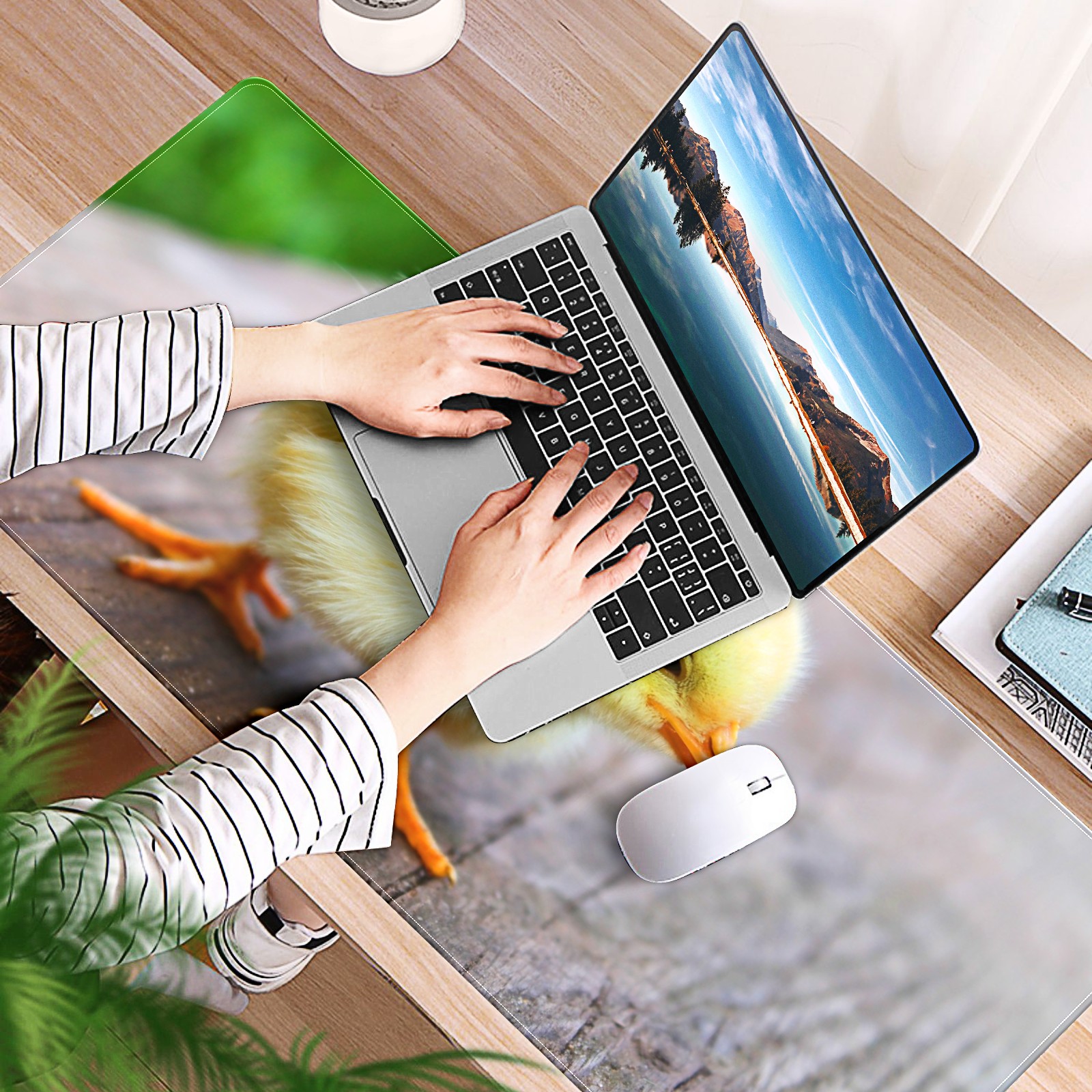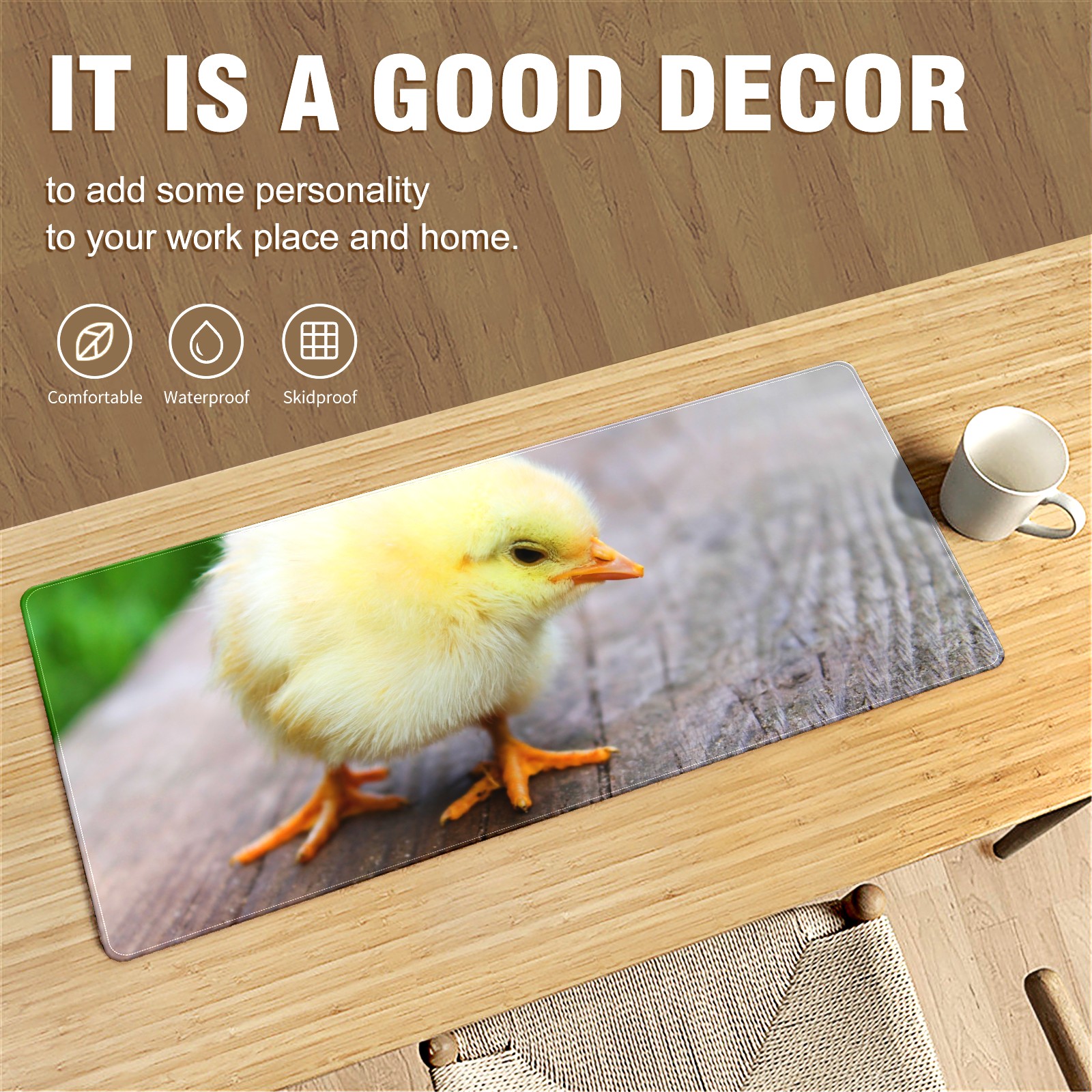 Large Mouse Pad for Desktop, Cute Desk Mat Pad Protector for Work & Gaming, Aesthetic Pretty Anti-Slip Laptop Blotter Cover for Office School Home Supplies, Yellow Chick , 35.4inx15.7in