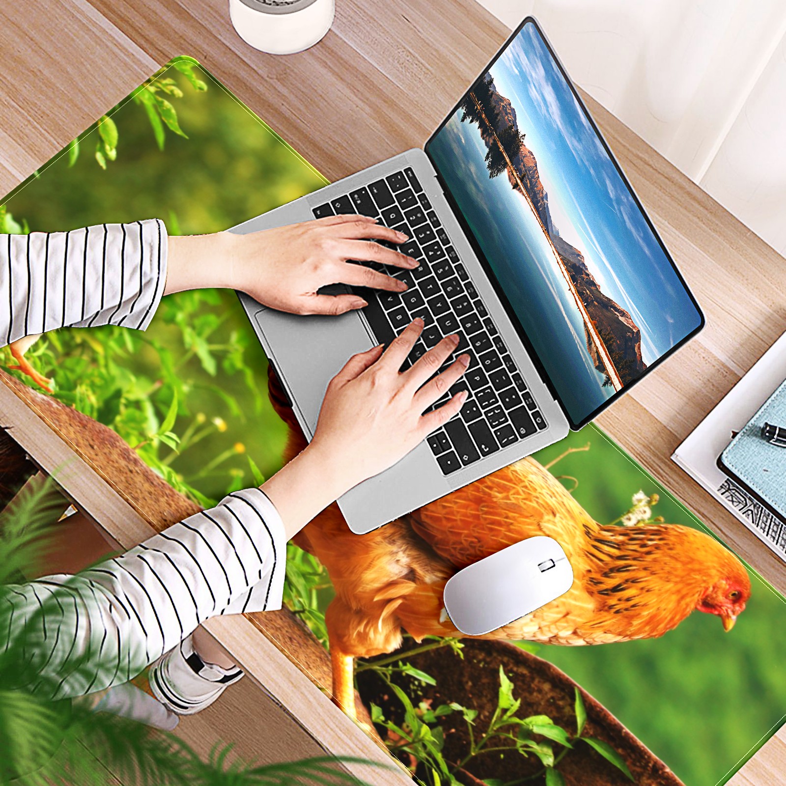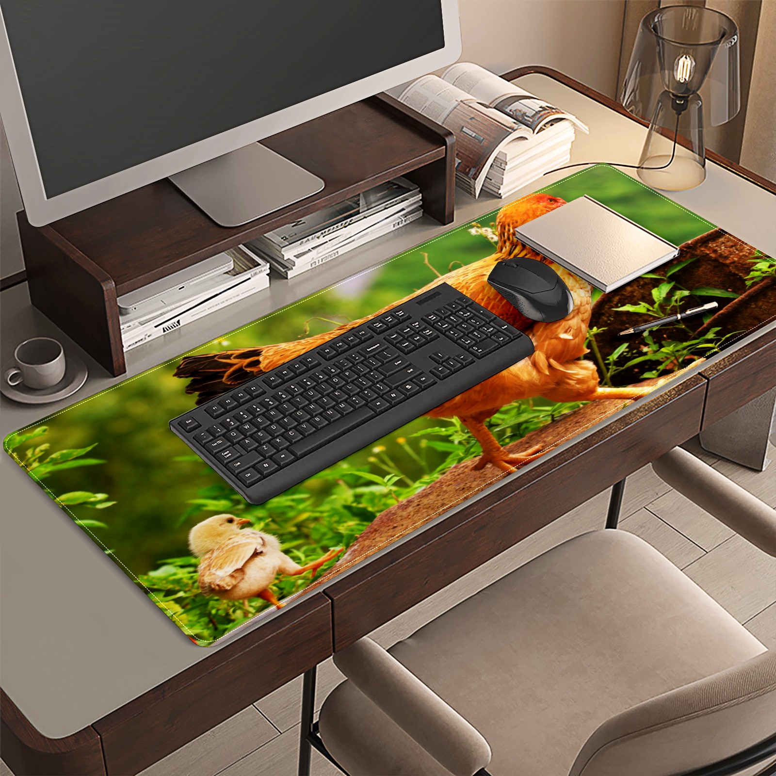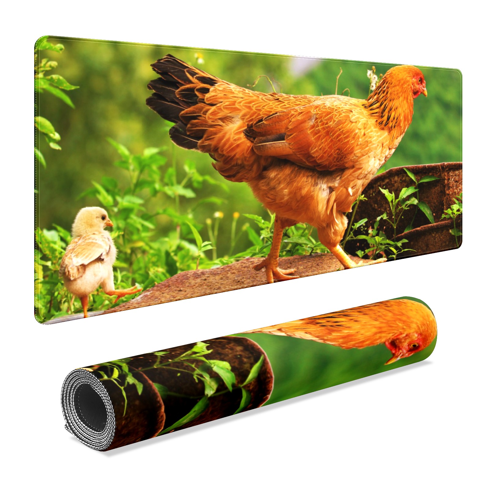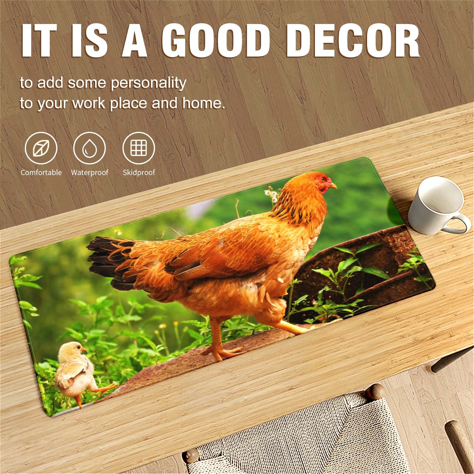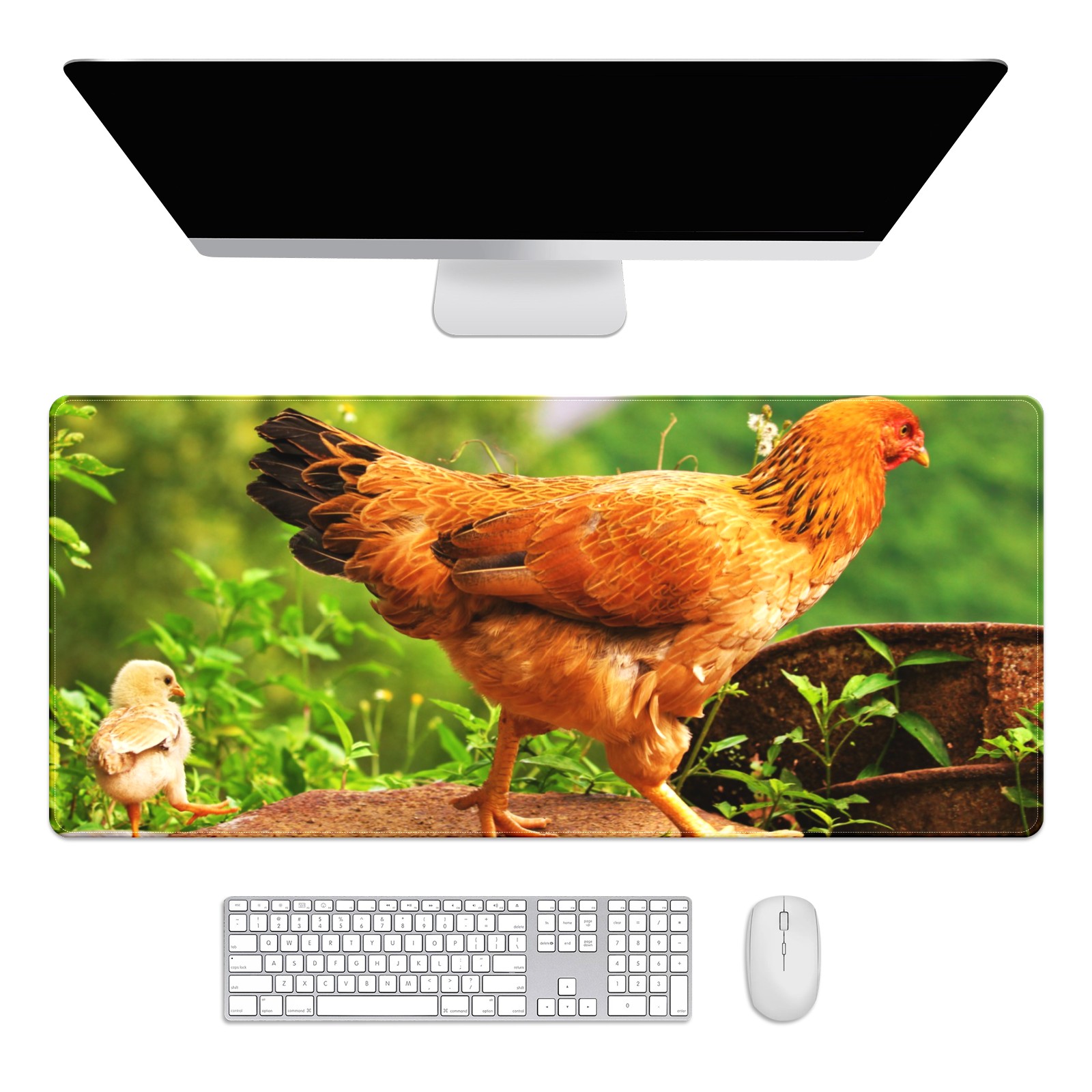 Large Mouse Pad for Desktop, Cute Desk Mat Pad Protector for Work & Gaming, Aesthetic Pretty Anti-Slip Laptop Blotter Cover for Office School Home Supplies, Hen Chick , 35.4inx15.7in
