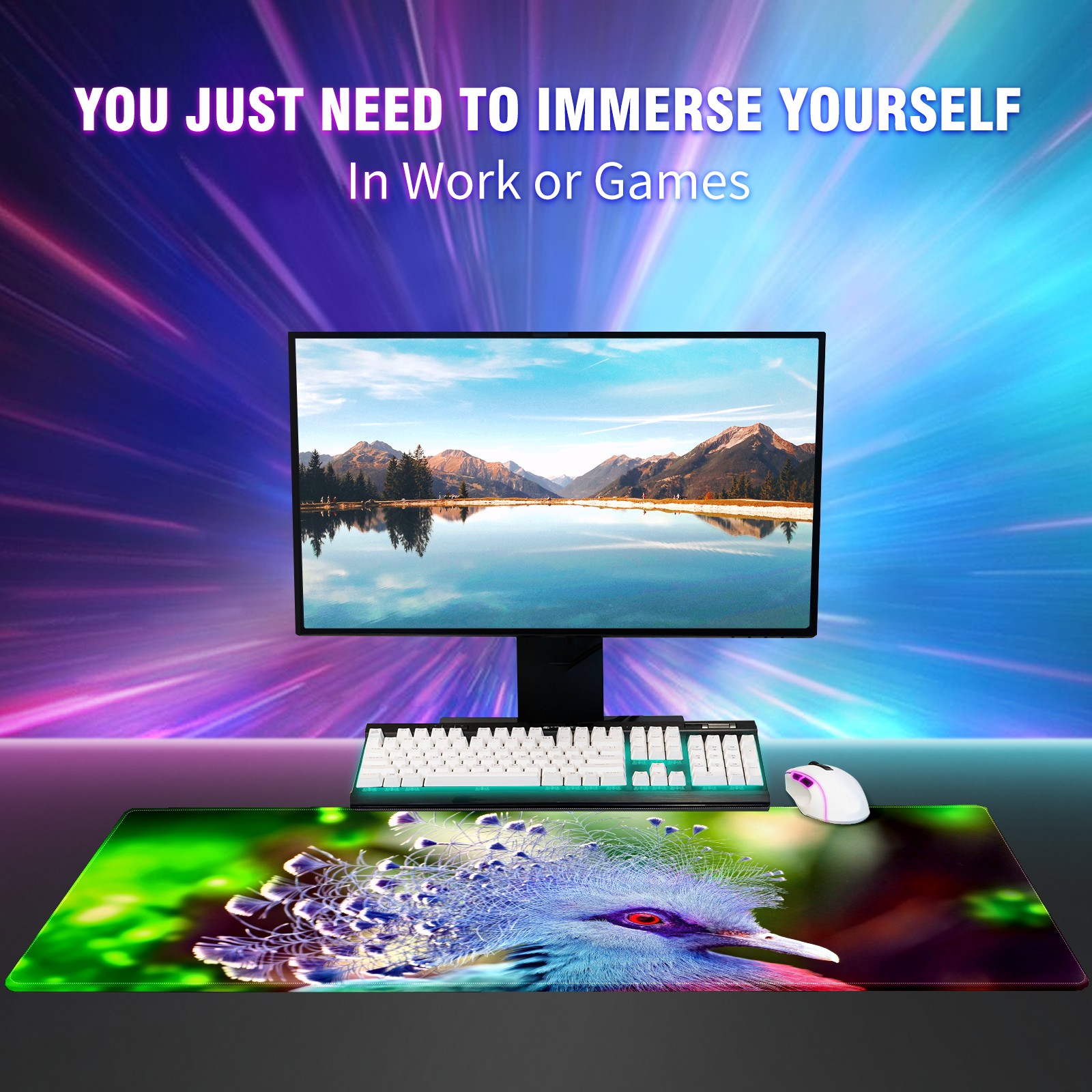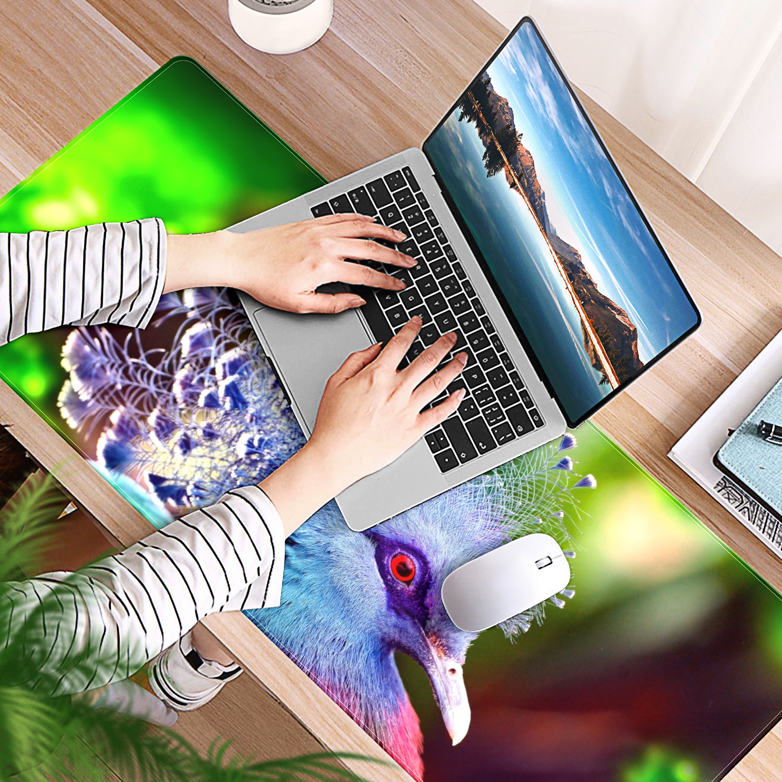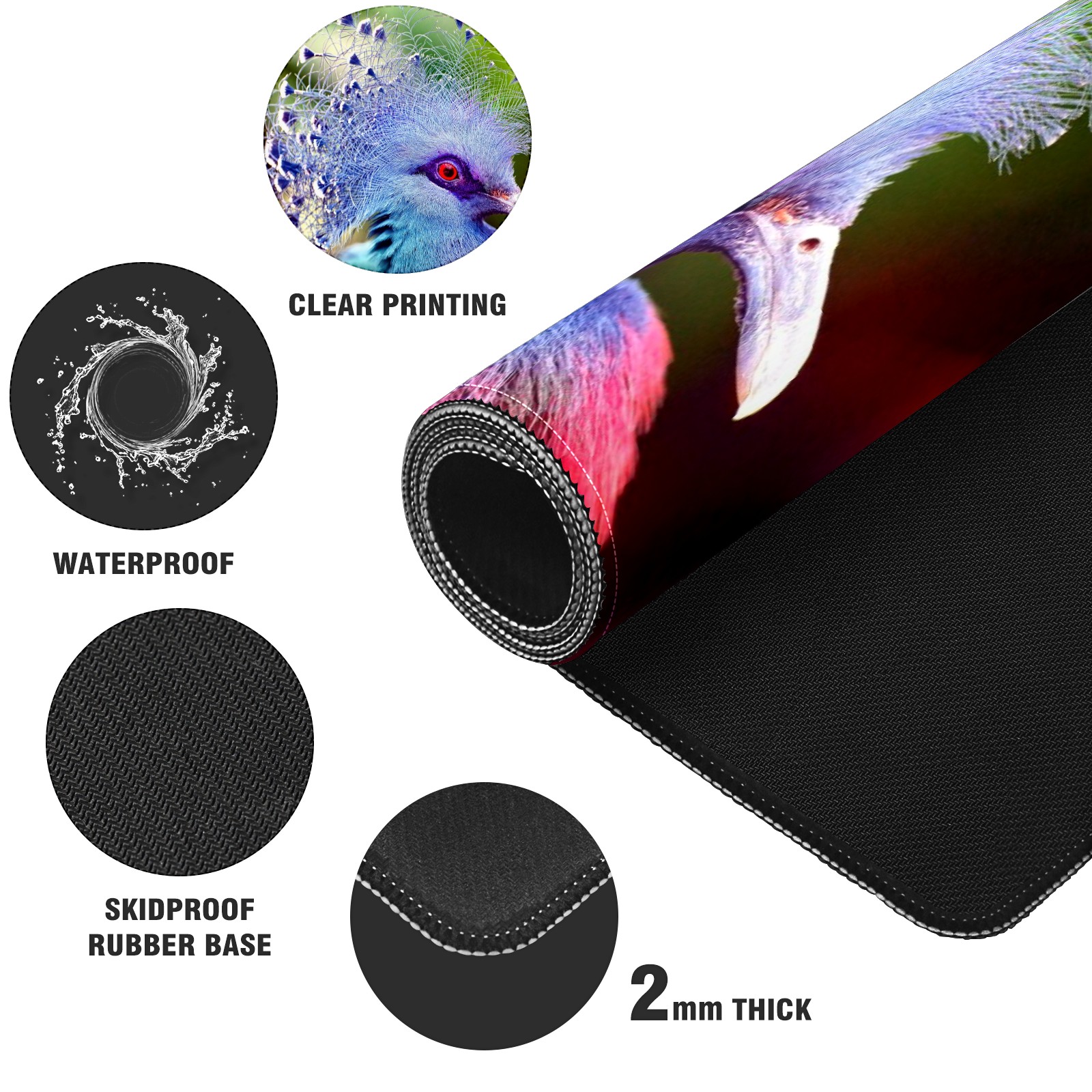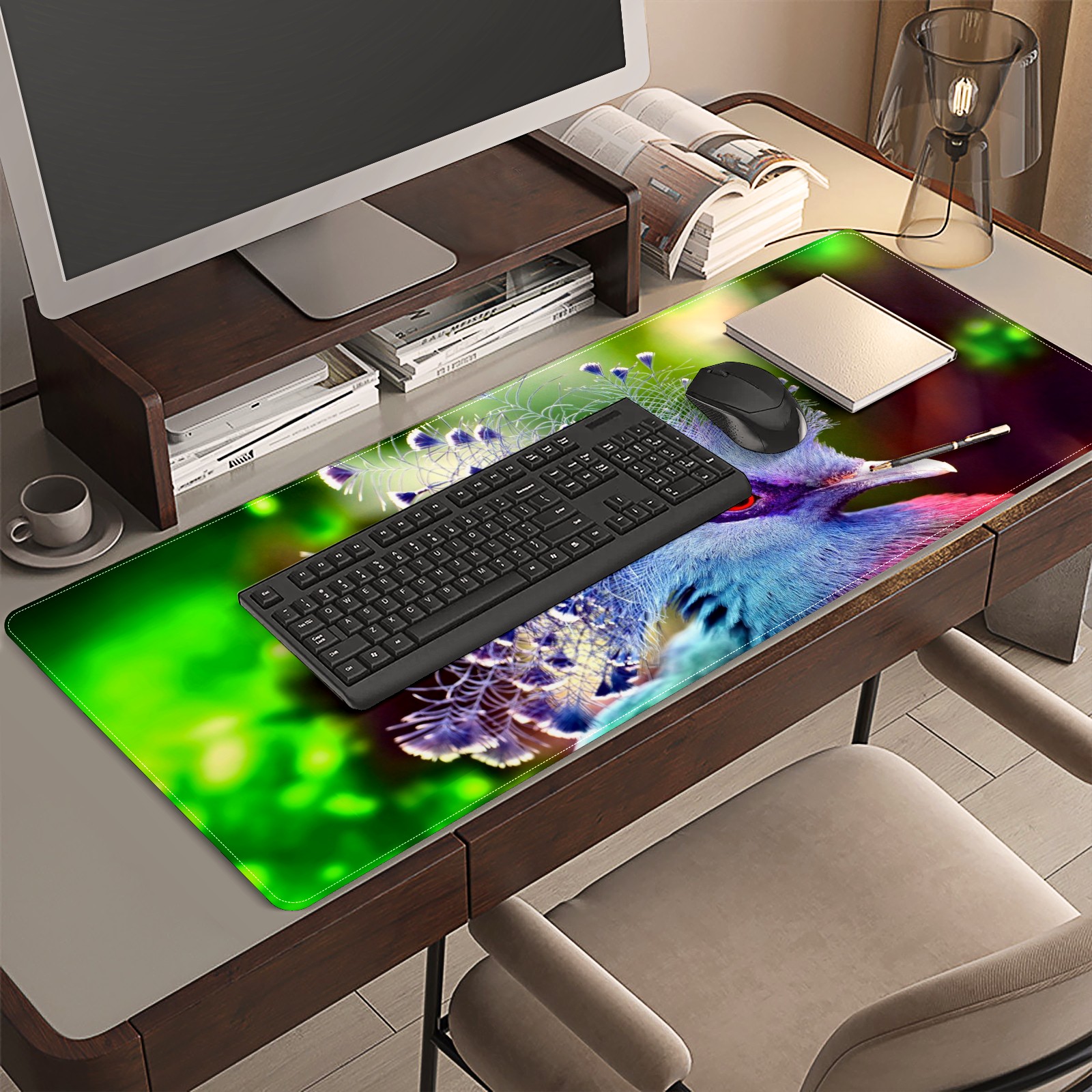 Large Mouse Pad for Desktop, Cute Desk Mat Pad Protector for Work & Gaming, Aesthetic Pretty Anti-Slip Laptop Blotter Cover for Office School Home Supplies, Color Bird , 35.4inx15.7in