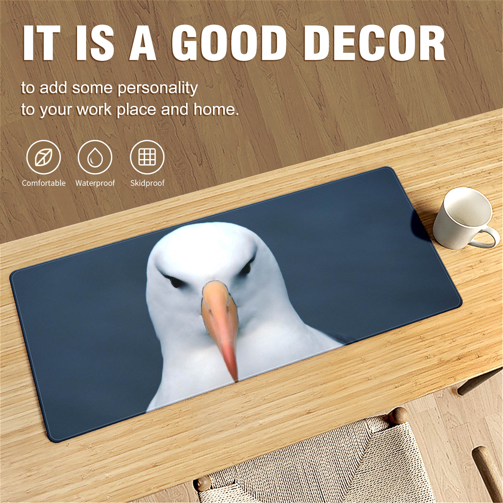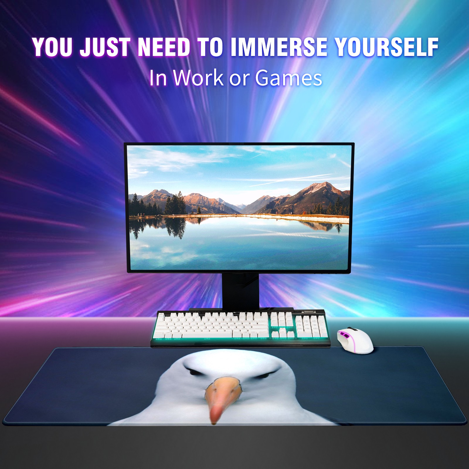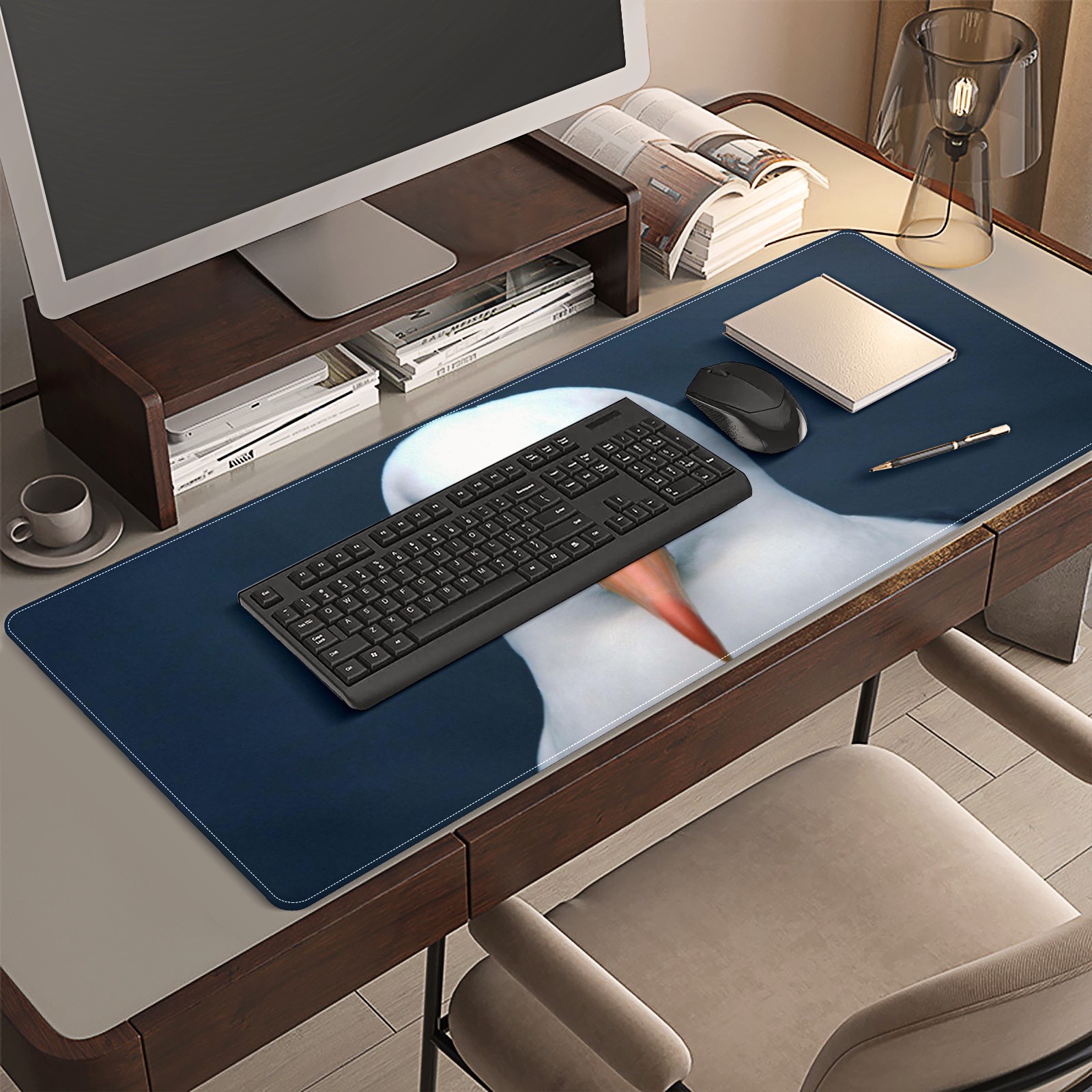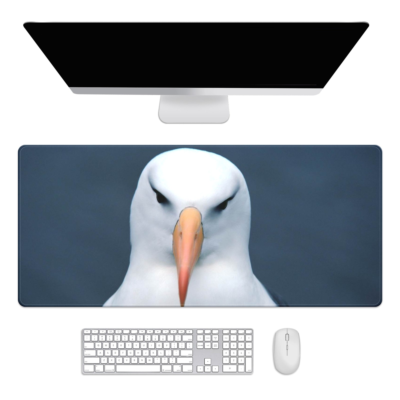 Large Mouse Pad for Desktop, Cute Desk Mat Pad Protector for Work & Gaming, Aesthetic Pretty Anti-Slip Laptop Blotter Cover for Office School Home Supplies, White Eagle , 35.4inx15.7in