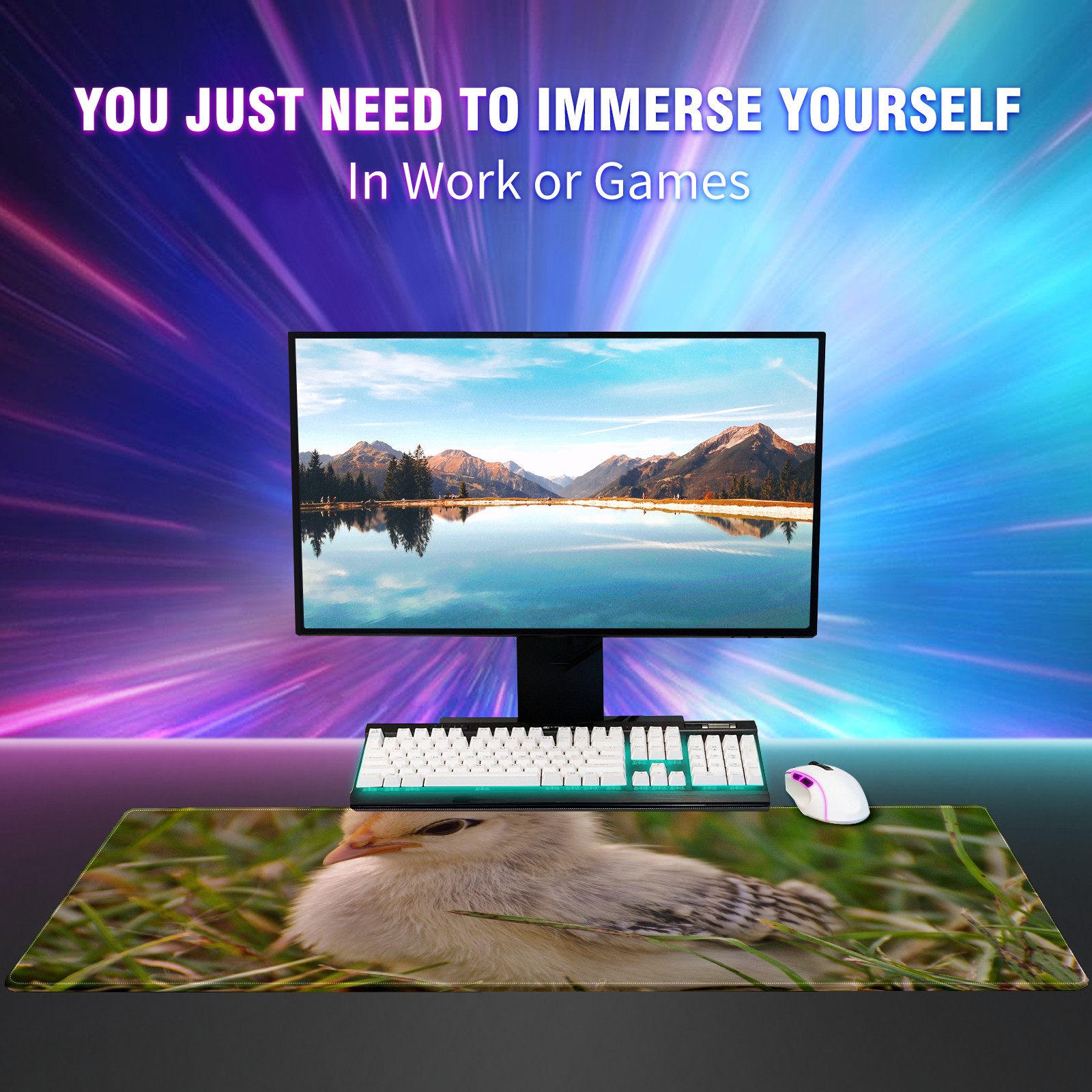 Large Mouse Pad for Desktop, Cute Desk Mat Pad Protector for Work & Gaming, Aesthetic Pretty Anti-Slip Laptop Blotter Cover for Office School Home Supplies, Chicken Baby , 35.4inx15.7in