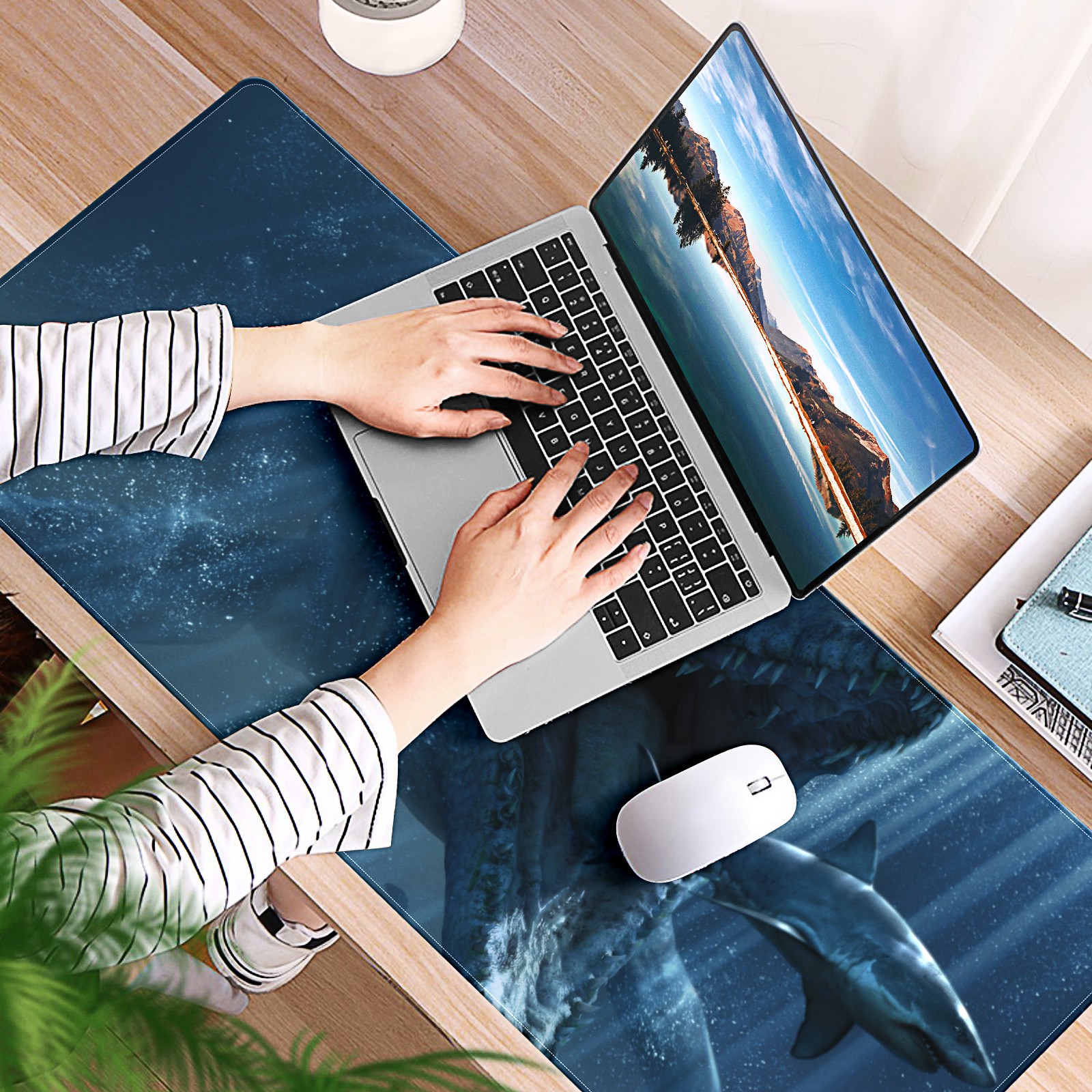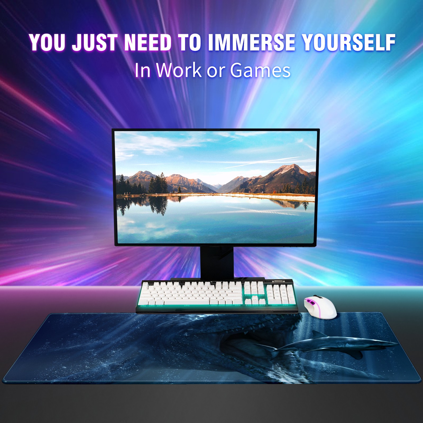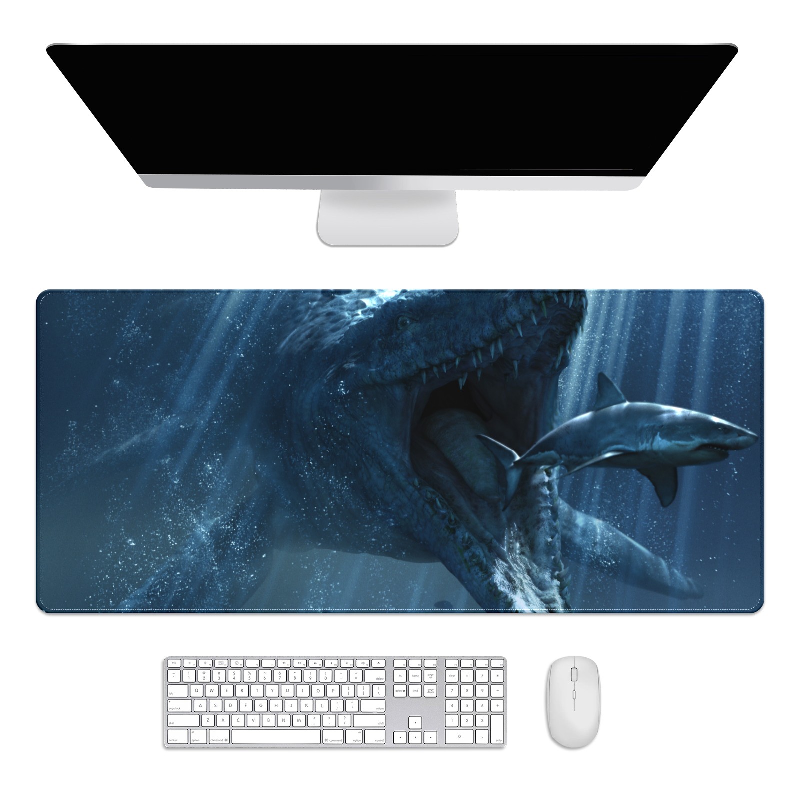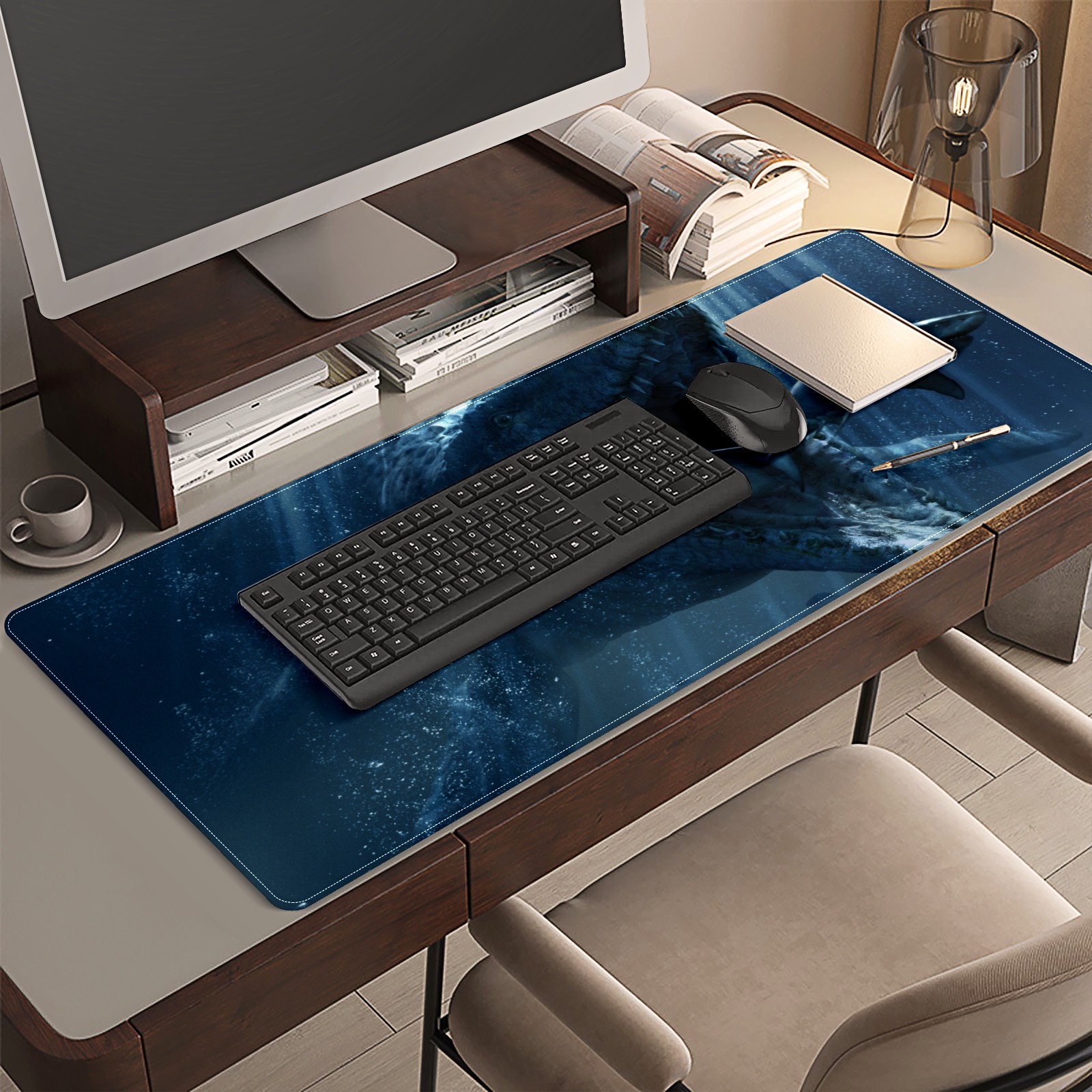 Large Mouse Pad for Desktop, Cute Desk Mat Pad Protector for Work & Gaming, Aesthetic Pretty Anti-Slip Laptop Blotter Cover for Office School Home Supplies, Eat Whale , 35.4inx15.7in