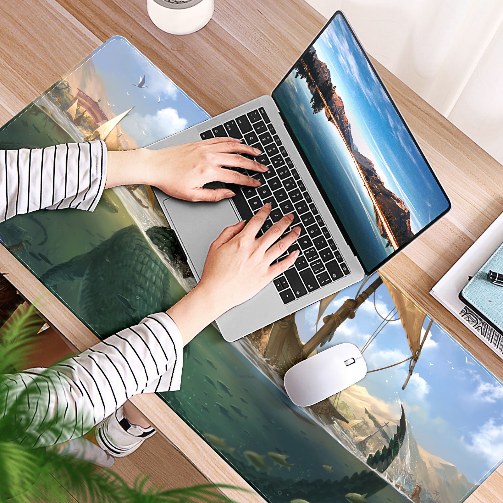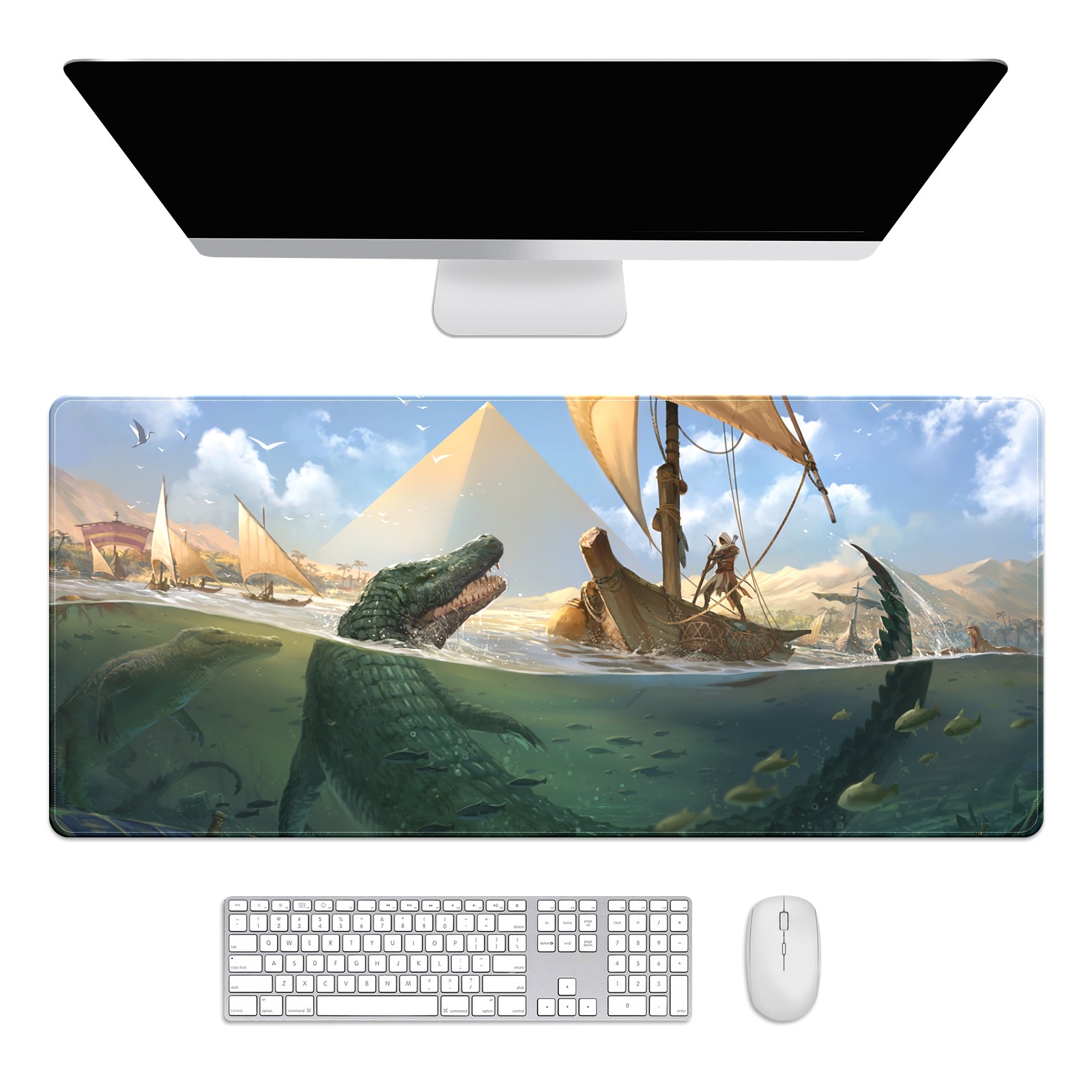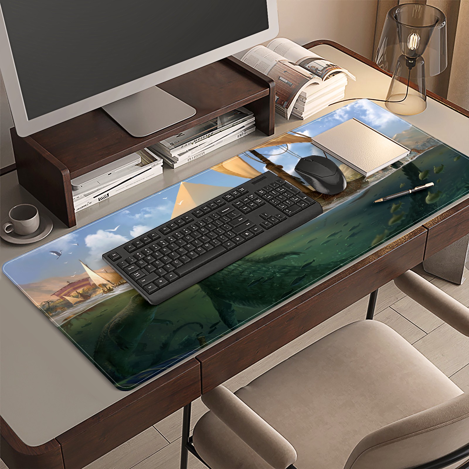 Large Mouse Pad for Desktop, Cute Desk Mat Pad Protector for Work & Gaming, Aesthetic Pretty Anti-Slip Laptop Blotter Cover for Office School Home Supplies, Crocodile , 35.4inx15.7in
