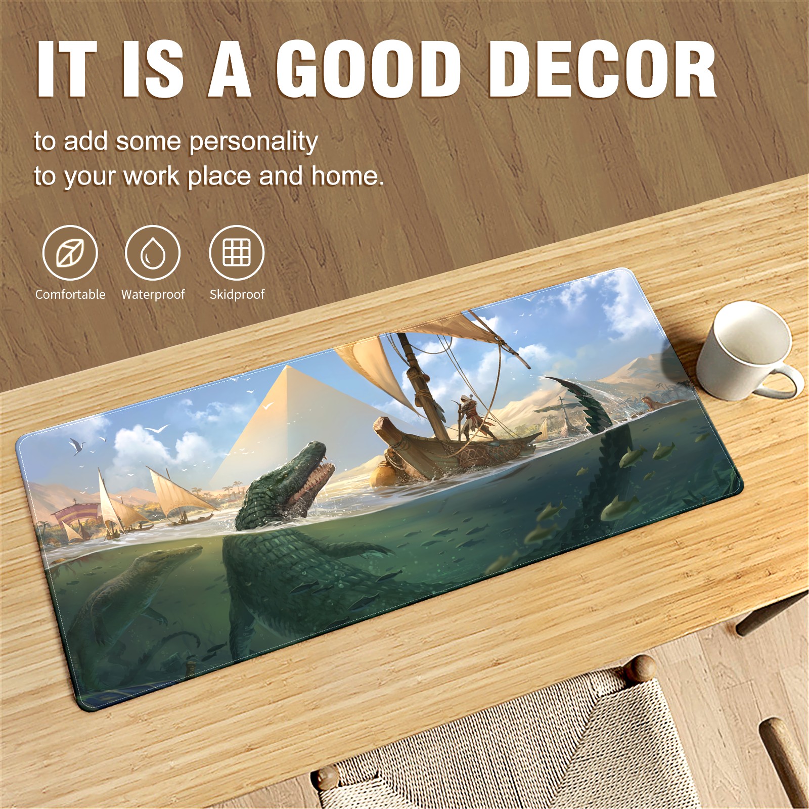 • <p>This 35.4” × 15.7” extended desk mat offers ample space for your keyboard, mouse and essentials, working as a smooth work/writing pad while protecting your desktop from scratches.</p><p>With stylish artistic patterns, it adds personality to your home office, study or gaming setup. The high-density woven surface ensures precise, smooth mouse tracking for work and gaming.</p><p>Featuring an anti-slip natural rubber base for firm grip and stability, the mat is soft, elastic and odorless. Reinforced stitched edges prevent fraying and curling for long-lasting durability.</p>