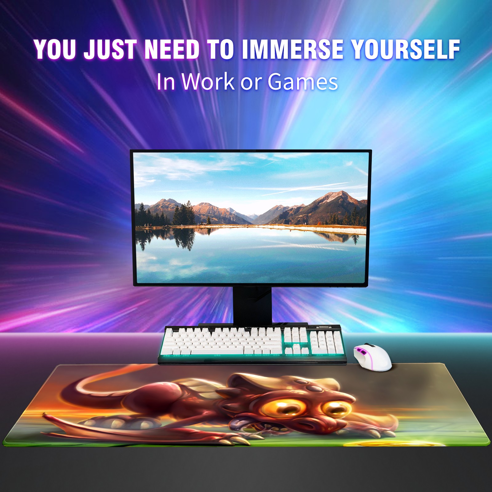 Large Mouse Pad for Desktop, Cute Desk Mat Pad Protector for Work & Gaming, Aesthetic Pretty Anti-Slip Laptop Blotter Cover for Office School Home Supplies, Dragon Baby , 35.4inx15.7in