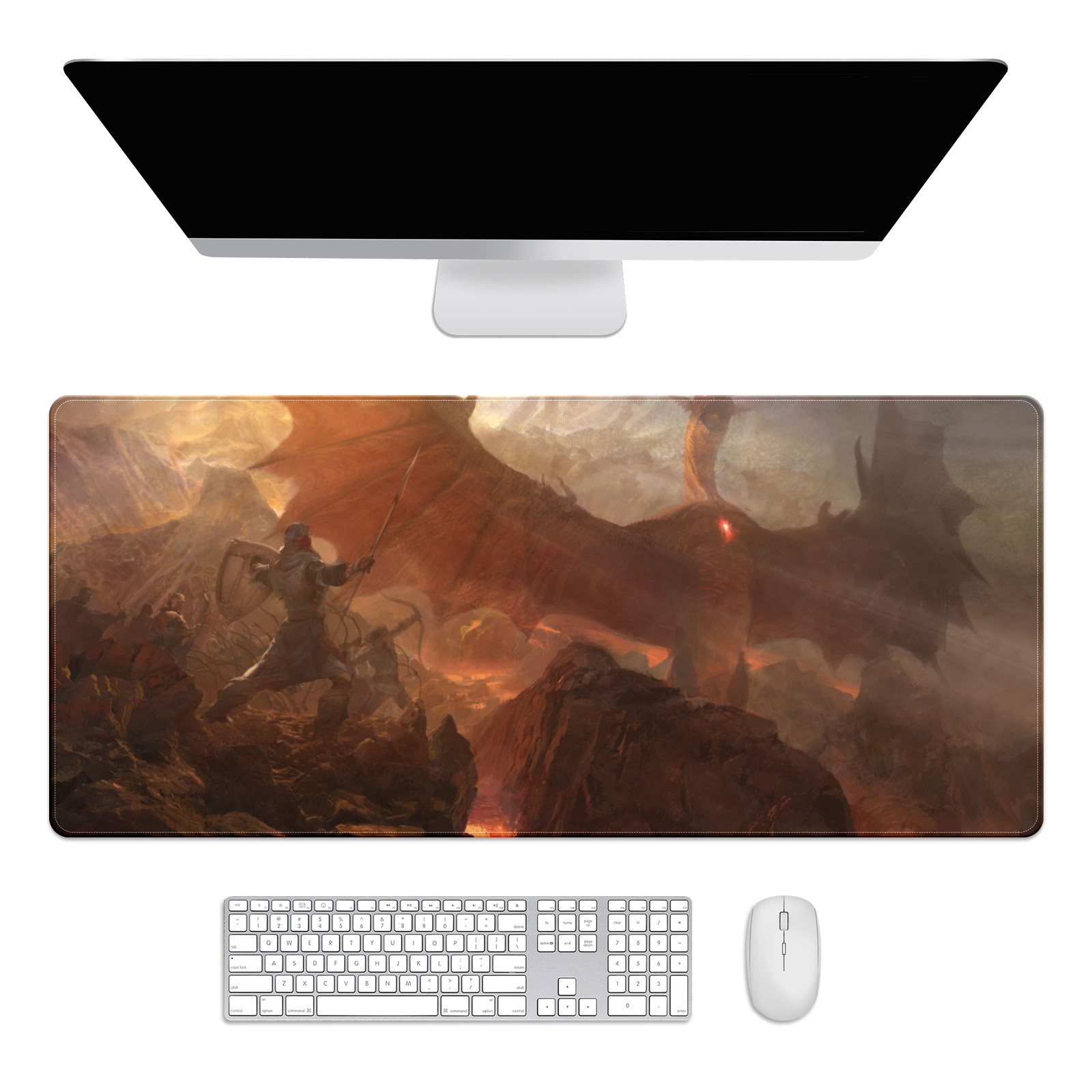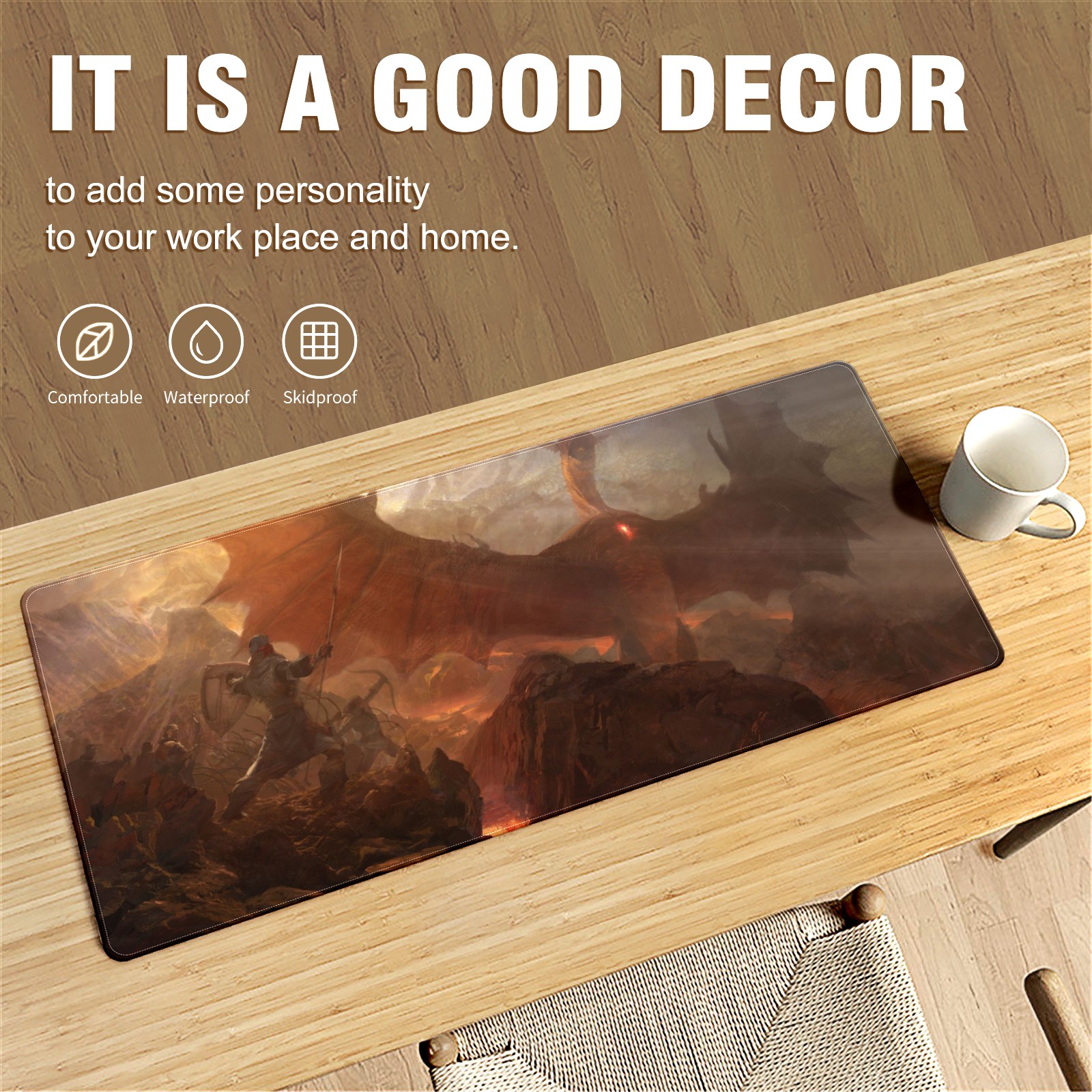 Large Mouse Pad for Desktop, Cute Desk Mat Pad Protector for Work & Gaming, Aesthetic Pretty Anti-Slip Laptop Blotter Cover for Office School Home Supplies, Fly Dragon , 35.4inx15.7in