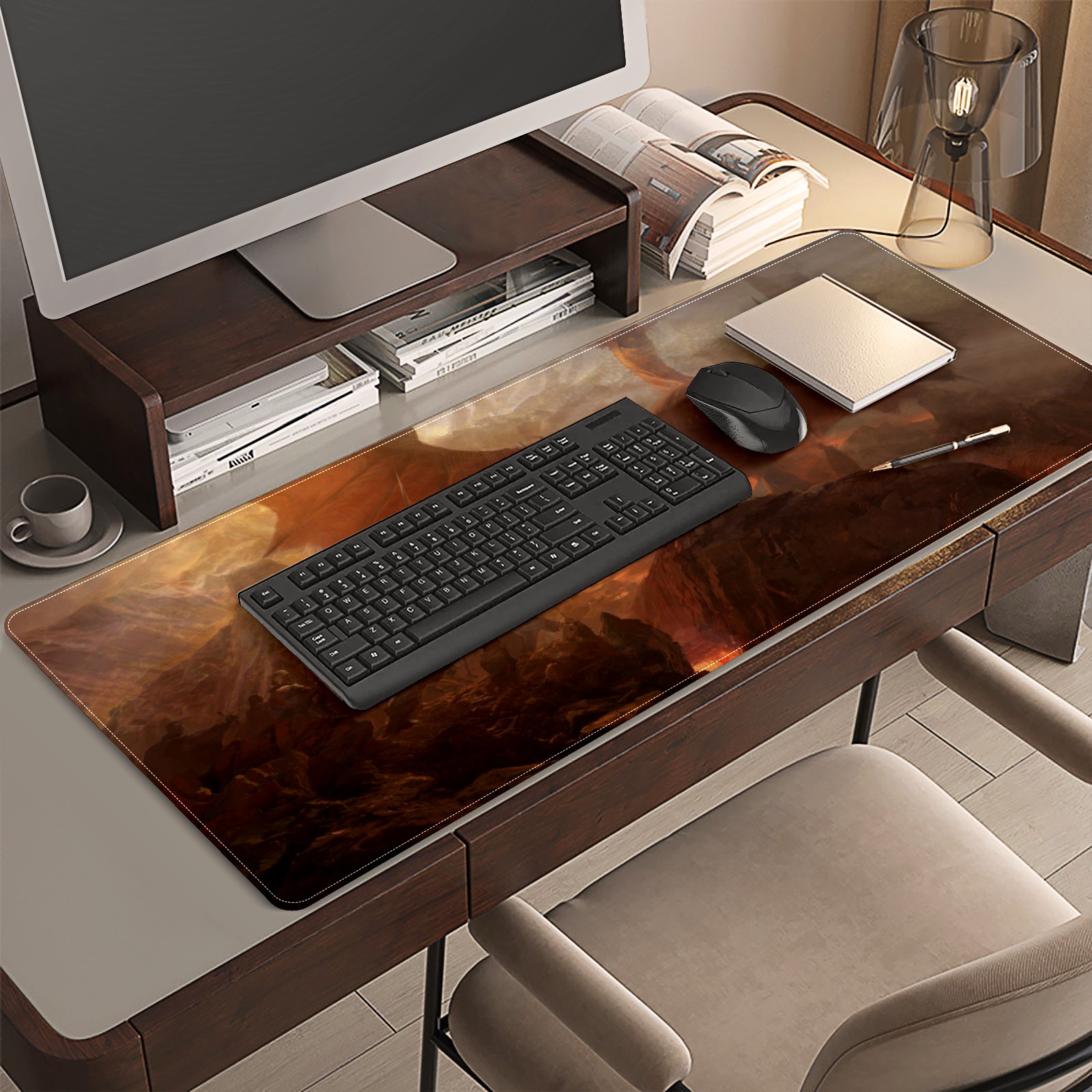 <p>This 35.4” × 15.7” extended desk mat offers ample space for your keyboard, mouse and essentials, working as a smooth work/writing pad while protecting your desktop from scratches.</p><p>With stylish artistic patterns, it adds personality to your home office, study or gaming setup. The high-density woven surface ensures precise, smooth mouse tracking for work and gaming.</p><p>Featuring an anti-slip natural rubber base for firm grip and stability, the mat is soft, elastic and odorless. Reinforced stitched edges prevent fraying and curling for long-lasting durability.</p>