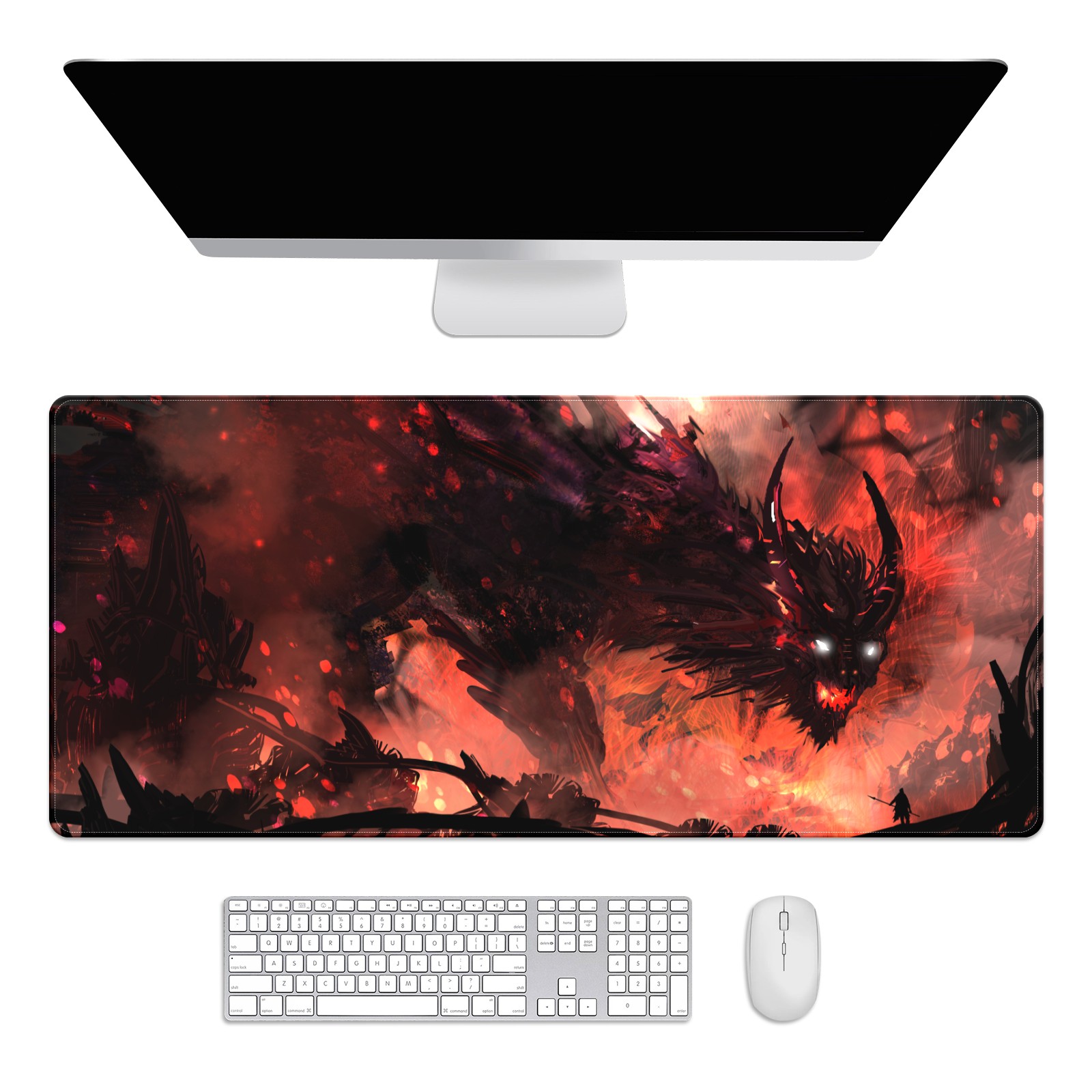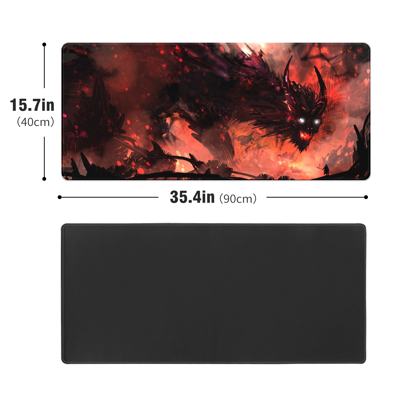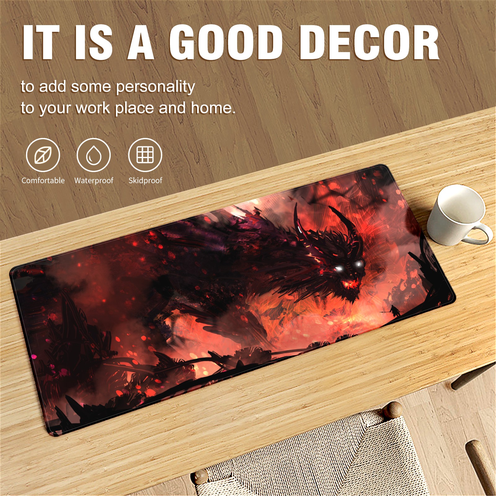 Large Mouse Pad for Desktop, Cute Desk Mat Pad Protector for Work & Gaming, Aesthetic Pretty Anti-Slip Laptop Blotter Cover for Office School Home Supplies, Fire Dragon , 35.4inx15.7in