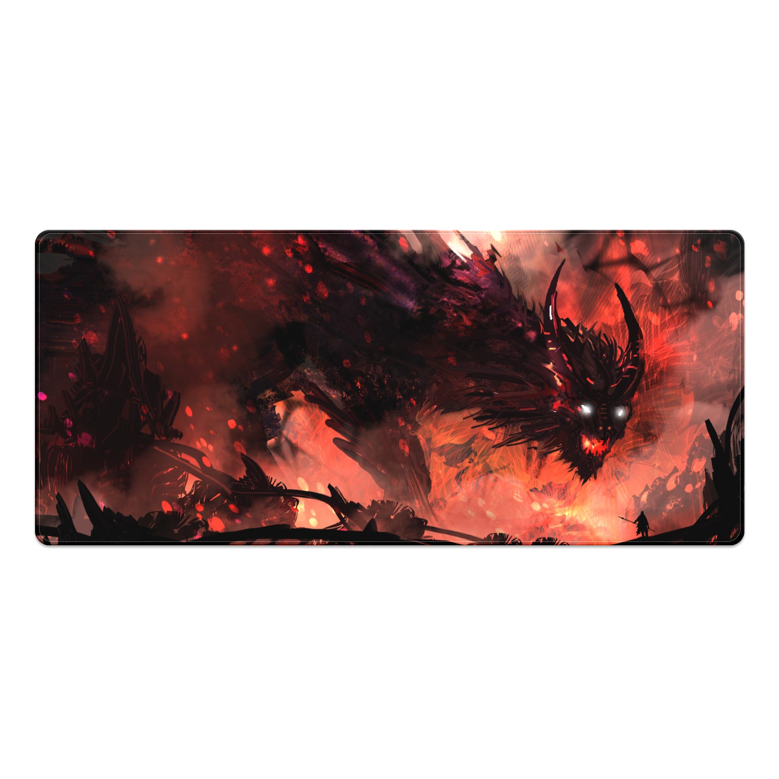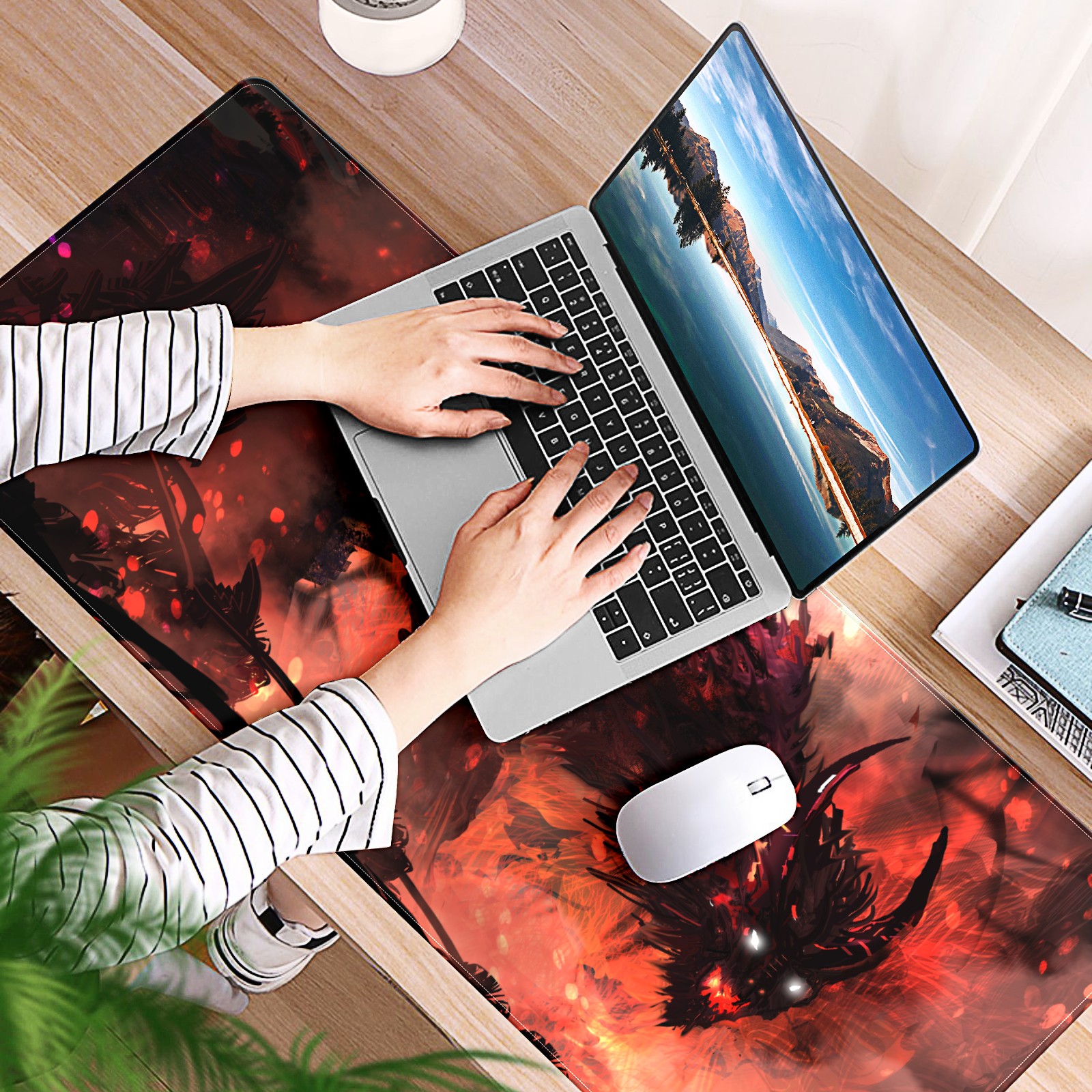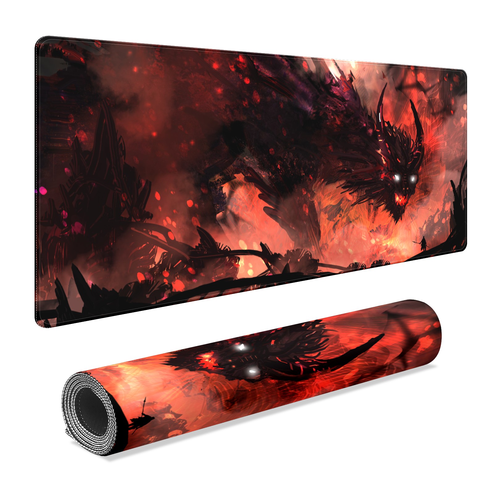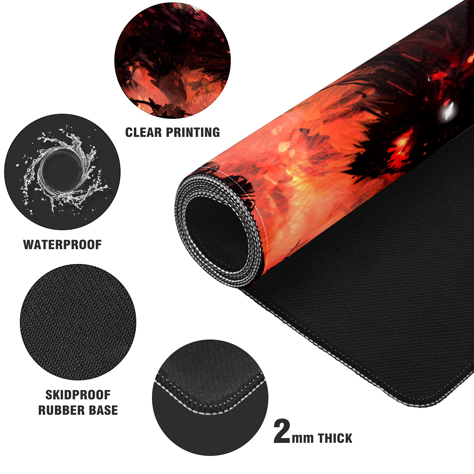 Large Mouse Pad for Desktop, Cute Desk Mat Pad Protector for Work & Gaming, Aesthetic Pretty Anti-Slip Laptop Blotter Cover for Office School Home Supplies, Fire Dragon , 35.4inx15.7in